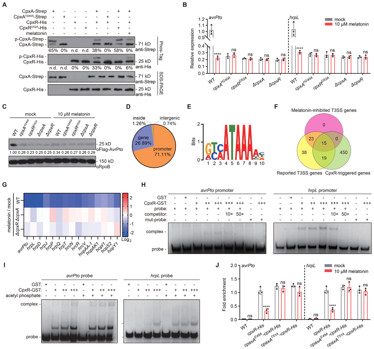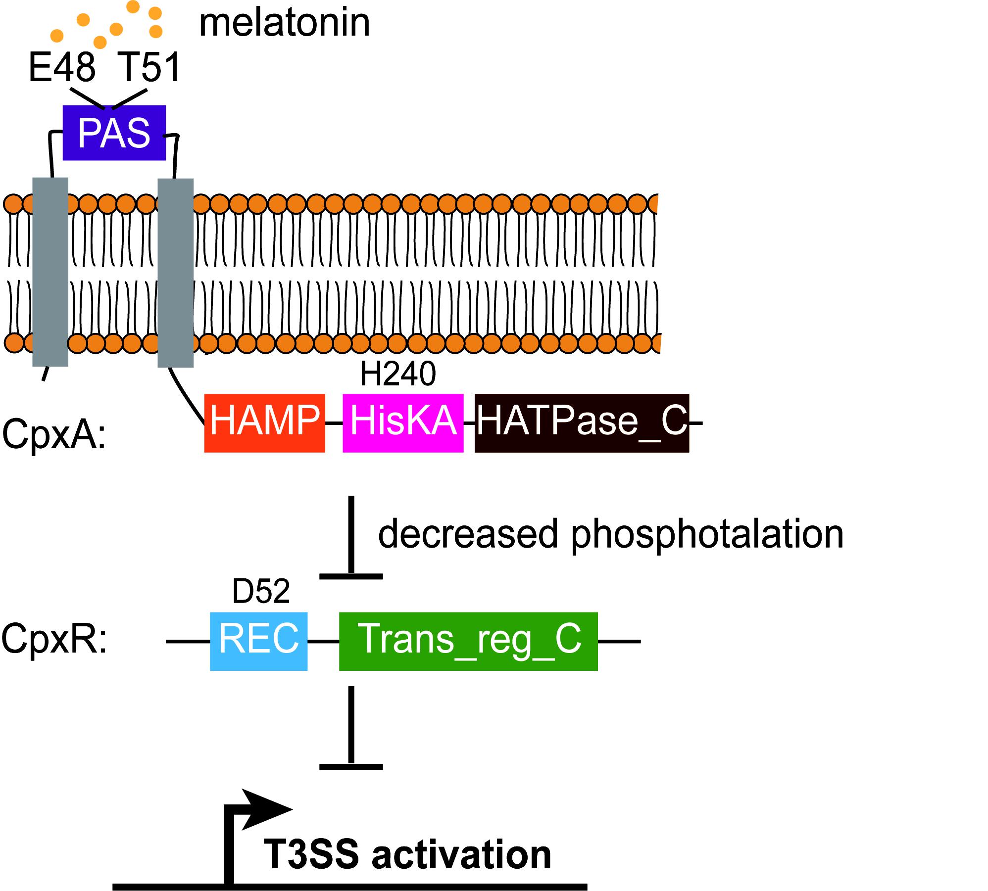 图1 褪黑素通过抑制CpxA/R磷酸化级联反应来驱动III型分泌系统转录重编程