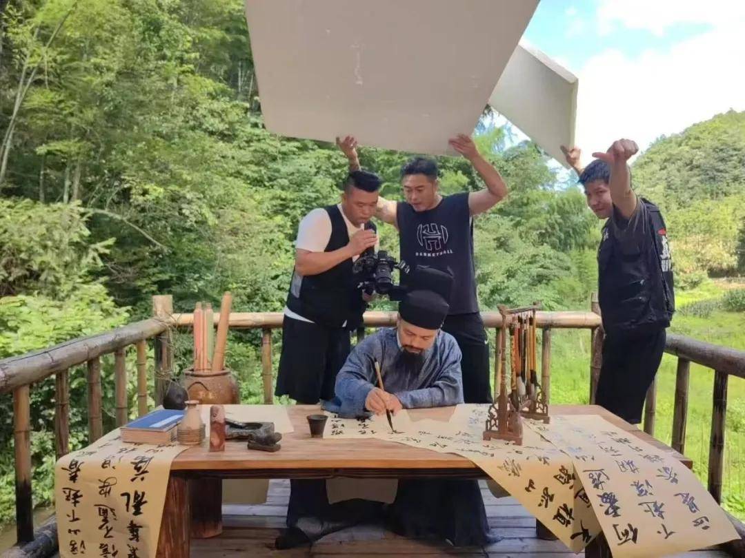 过继祥客串中国某部古装文人书法短剧(图中书写者为过继祥)