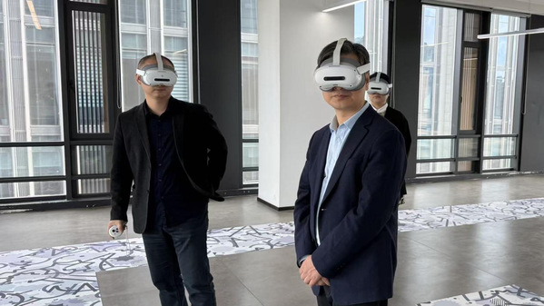 考察过程中,吕伟刚一行深入体验了研究院核心产品,包括元宇宙展厅、XR大空间沉浸式体验项目、万向体感平台和自研VR游戏。通过现场互动和实际操作,详细了解了公司概况、相关文旅产品的应用场景和市场前景,并对山外大杭州元宇宙研究院做出的科研成果给予了充分肯定。