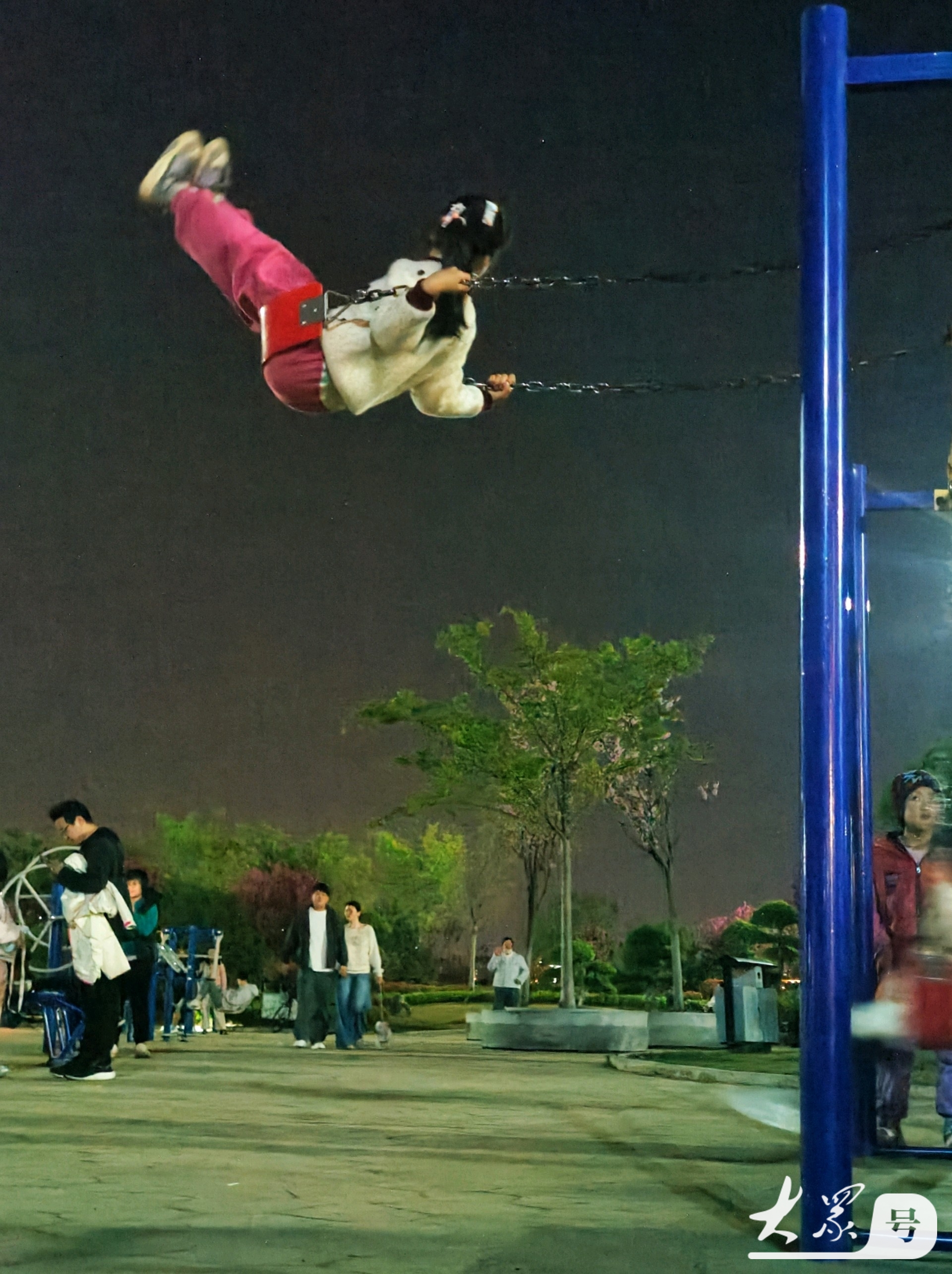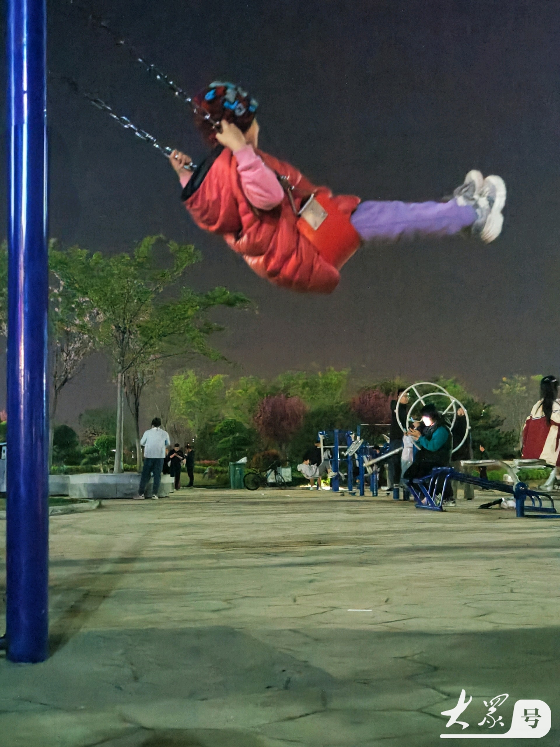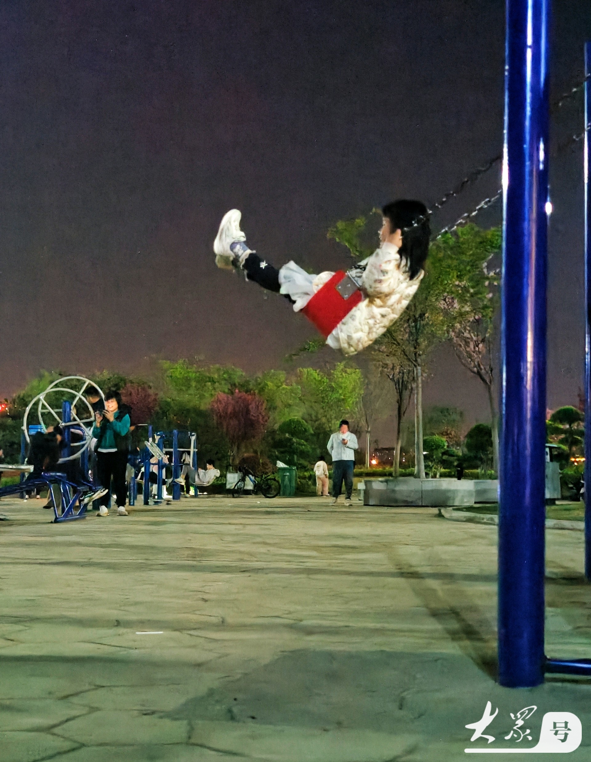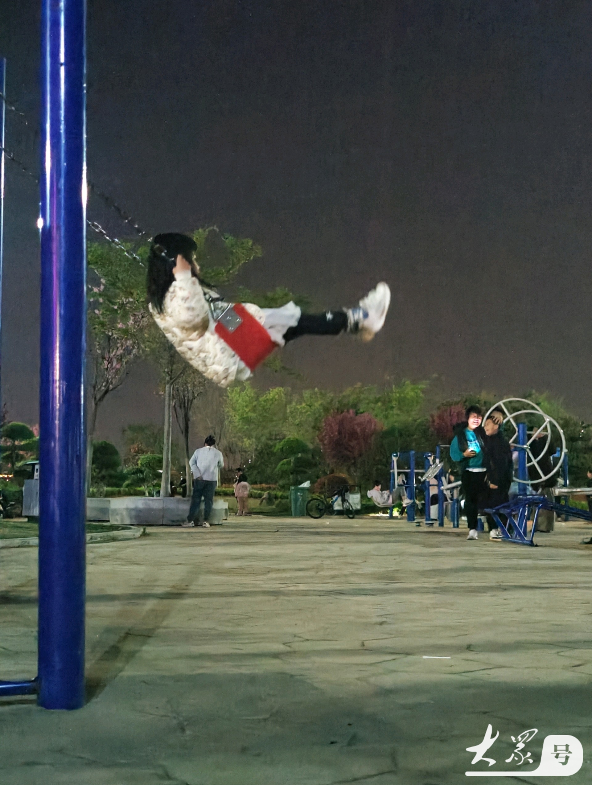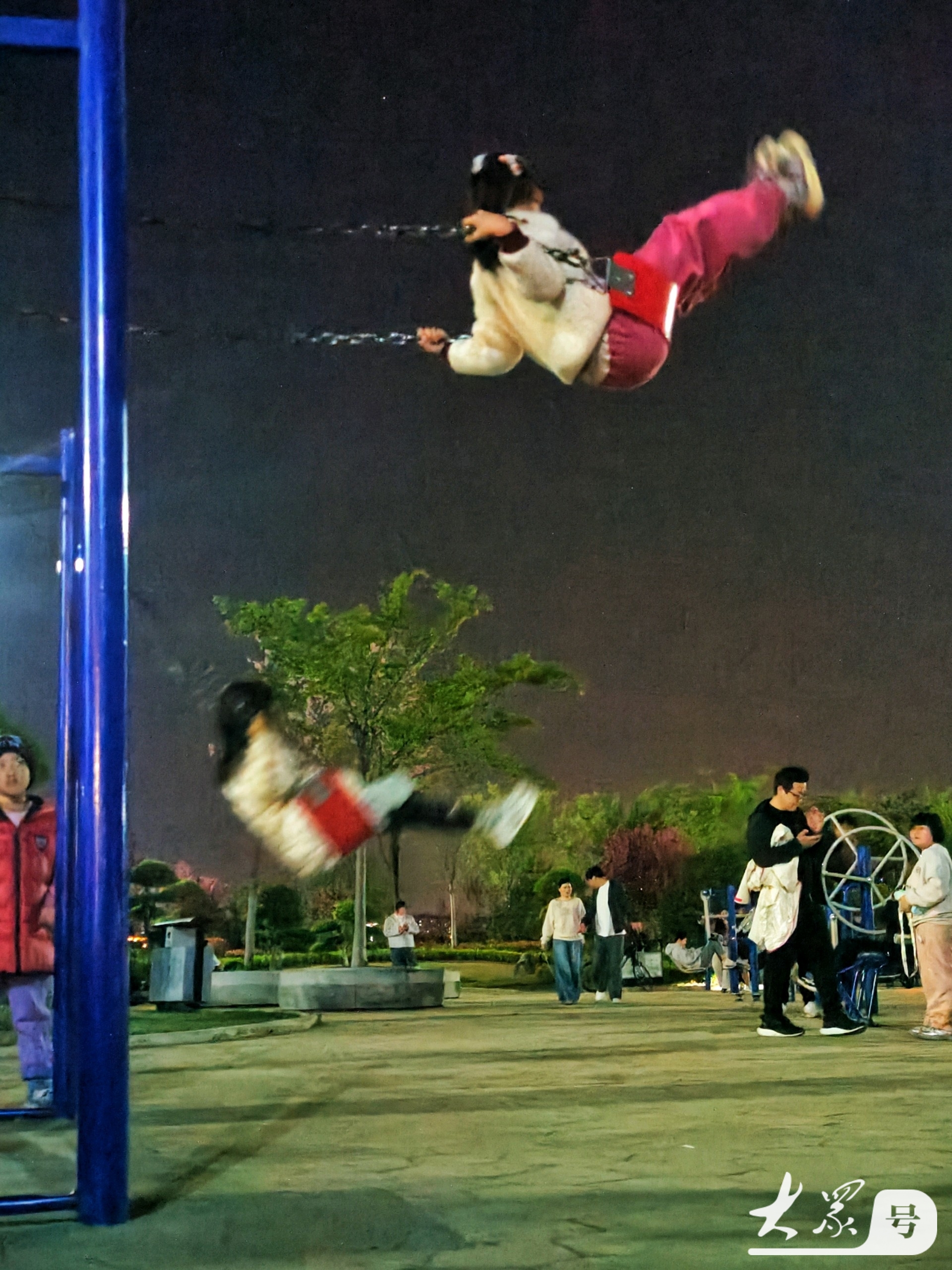 4月4日傍晚,临沂沂河岸边的滨河生态公园健身广场上,那些荡秋千技艺娴熟的小女孩格外引人注目。瞧,她们身姿轻盈,随着秋千高高荡起,真有“欲与天公试比高”的气势。