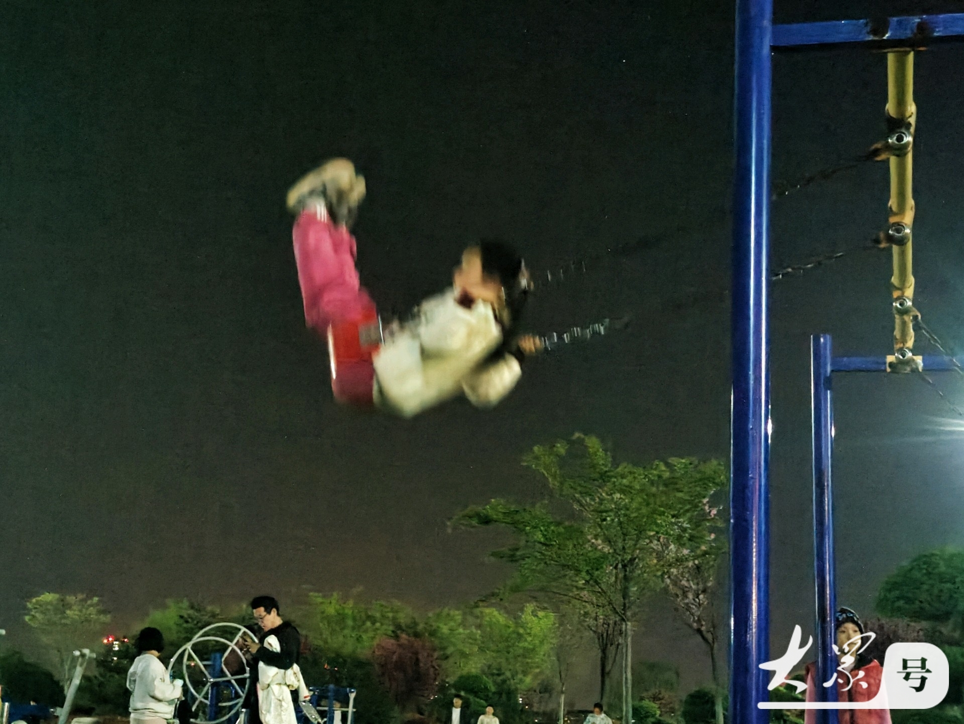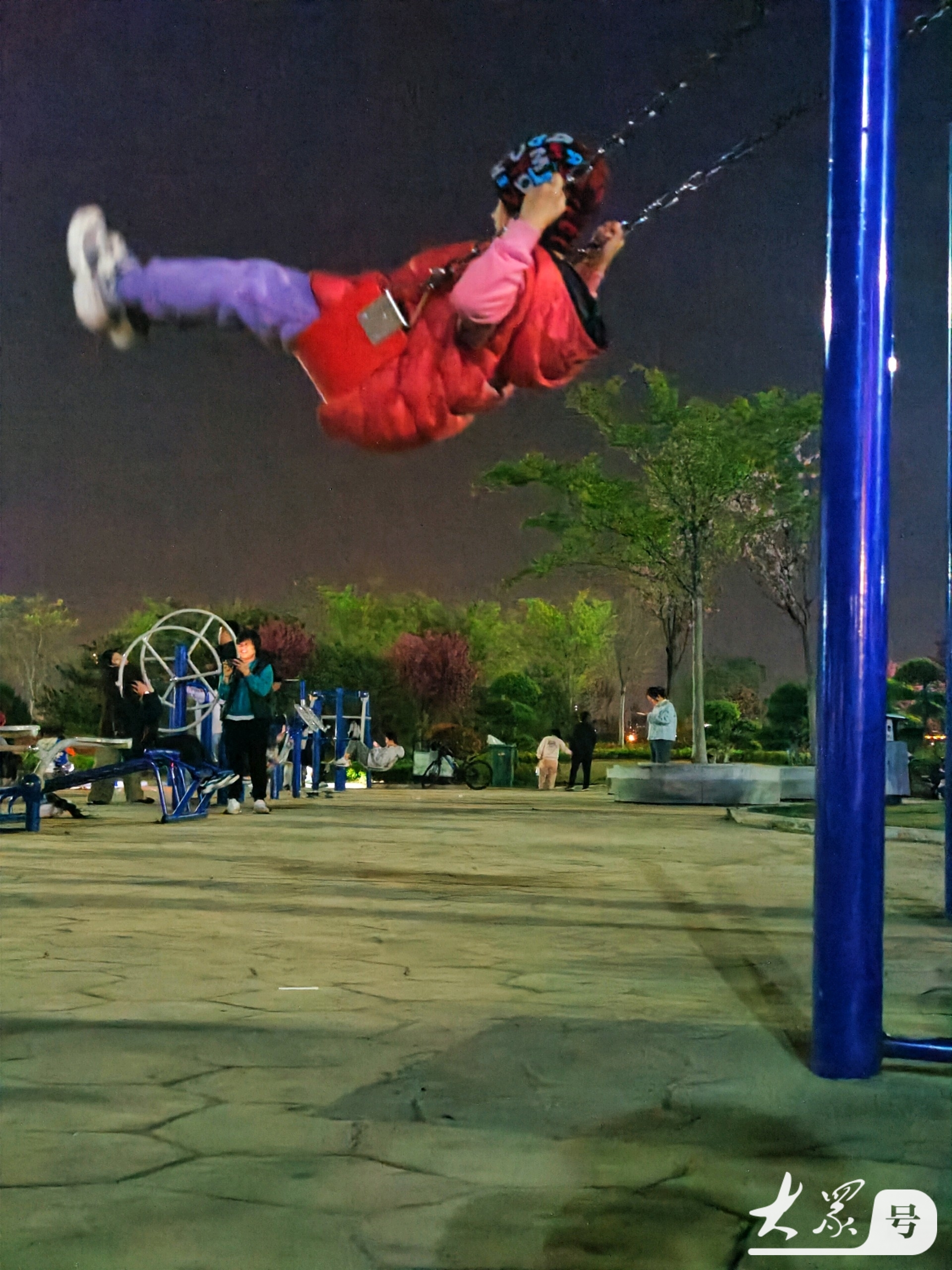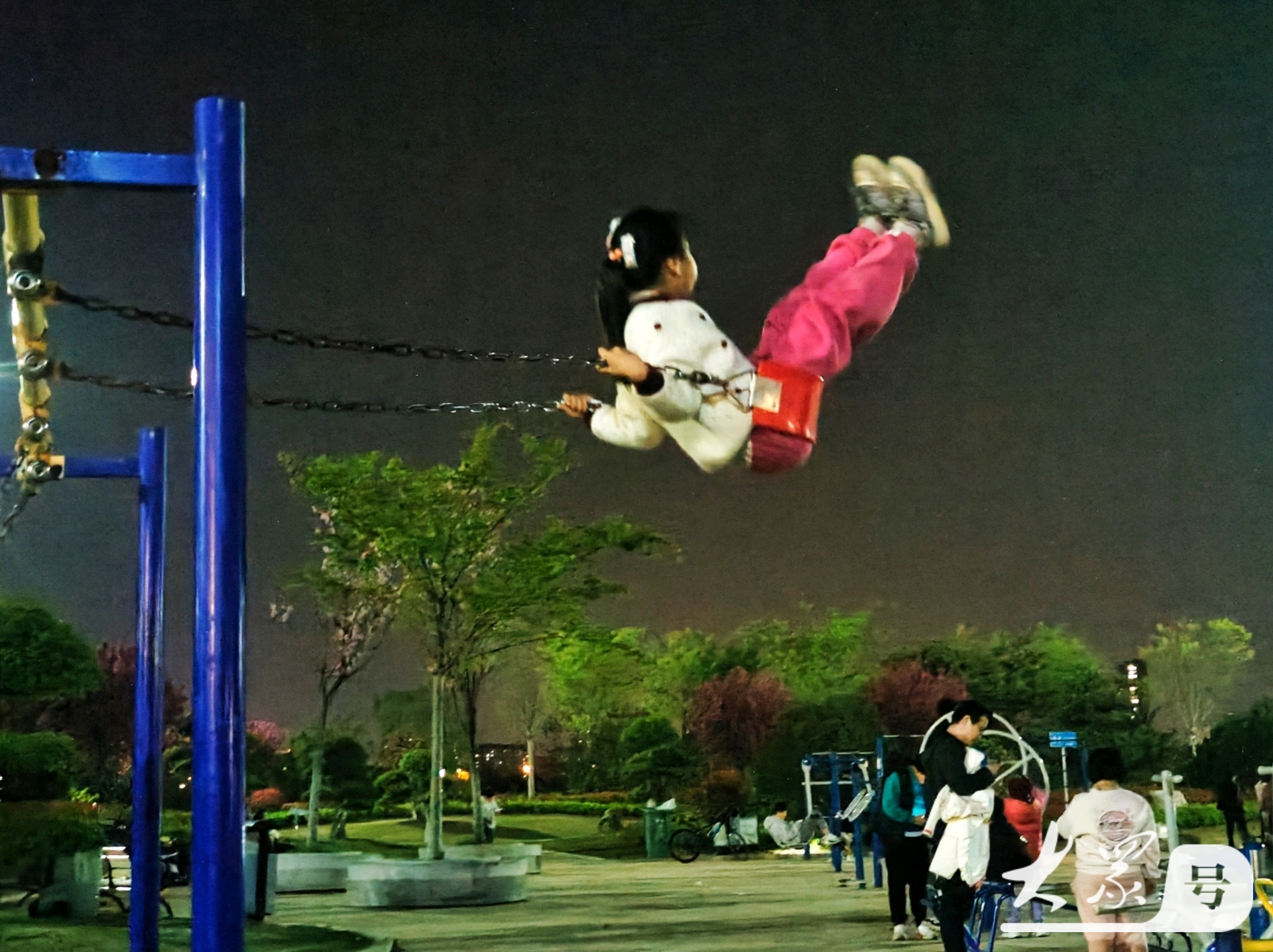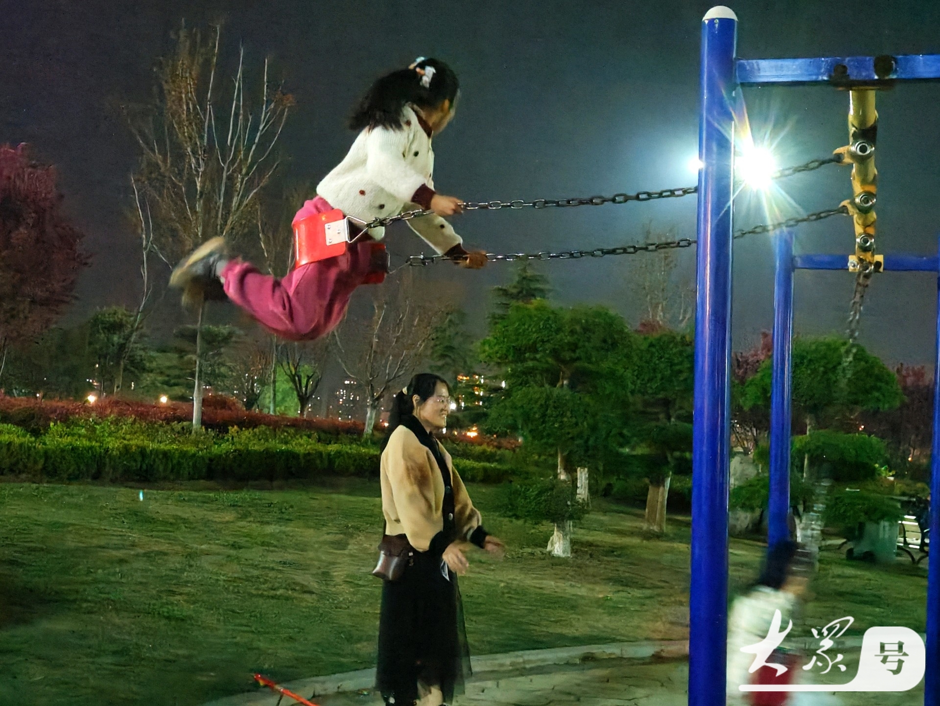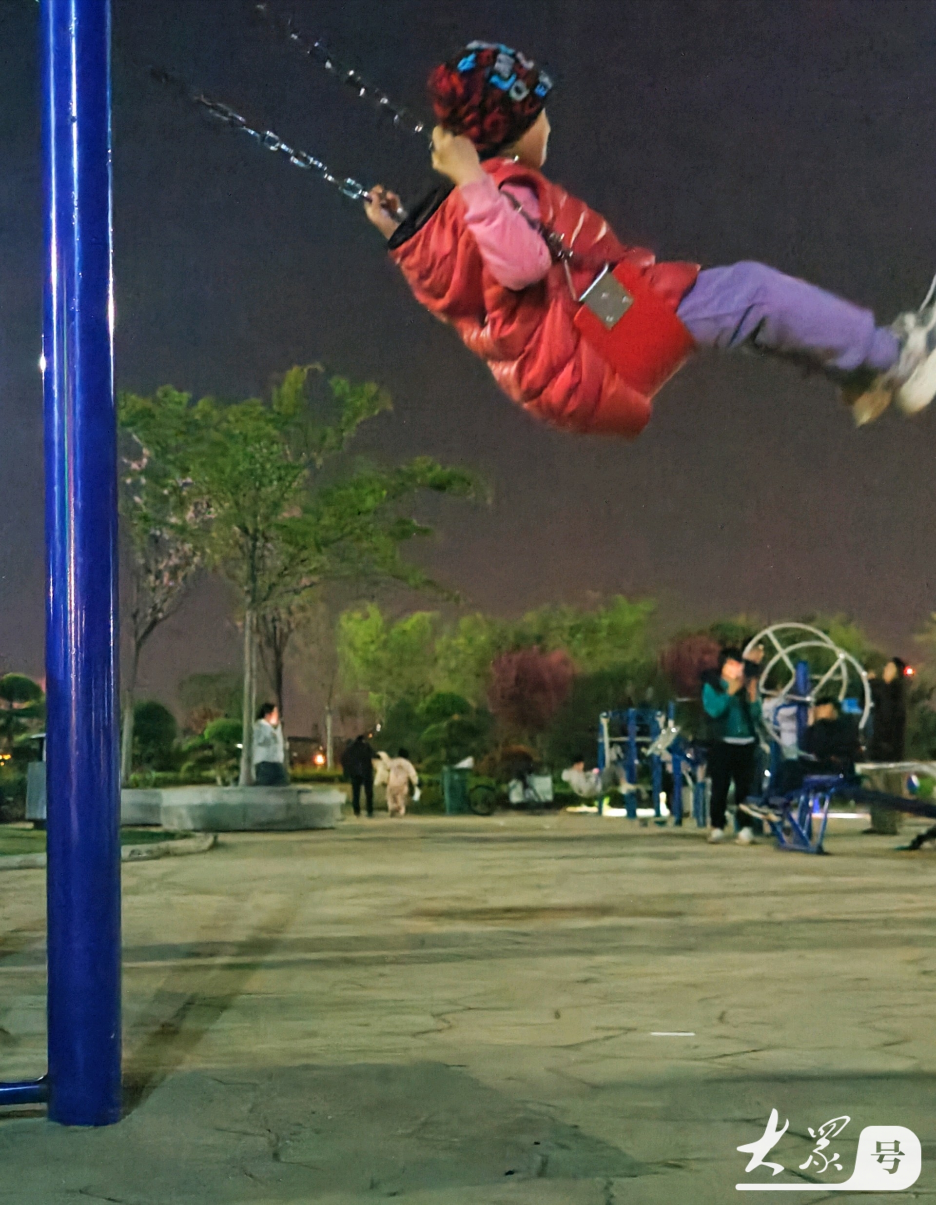 4月4日傍晚,临沂沂河岸边的滨河生态公园健身广场上,那些荡秋千技艺娴熟的小女孩格外引人注目。瞧,她们身姿轻盈,随着秋千高高荡起,真有“欲与天公试比高”的气势。