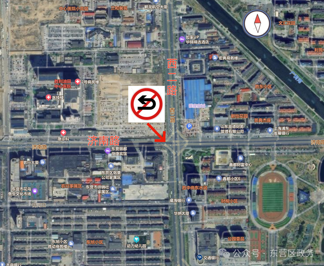 为规范道路交通秩序,提高通行效率,方便群众出行和道路畅通有序,根据《中华人民共和国道路交通安全法》及其实施条例等法律法规规定,自即日起,东营市公安局交通管理支队决定对东营市东营区济南路与西二路口西侧(由西向东方向)实施禁止掉头管理。现通告如下: