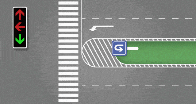 此时一定要观察红绿灯进行掉头!红灯状态下,不可越过停止线。