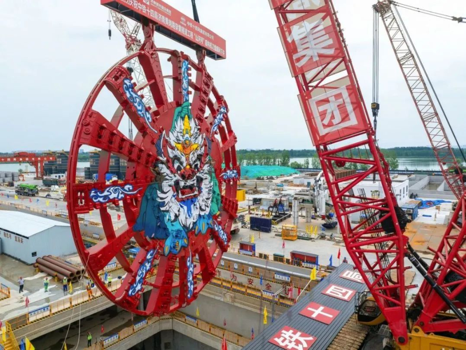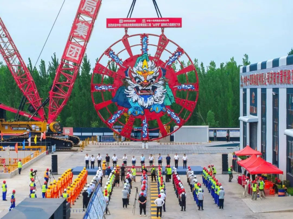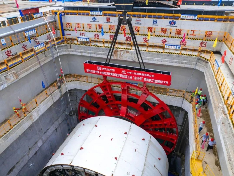 盾构始发进入“倒计时”!济南市黄岗路穿黄隧道“山河号”盾构机刀盘吊装下井