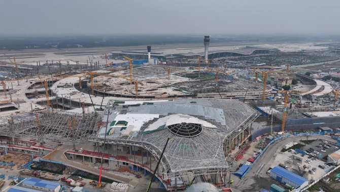 济南机场二期改扩建工程T2航站楼混凝土主体结构完工