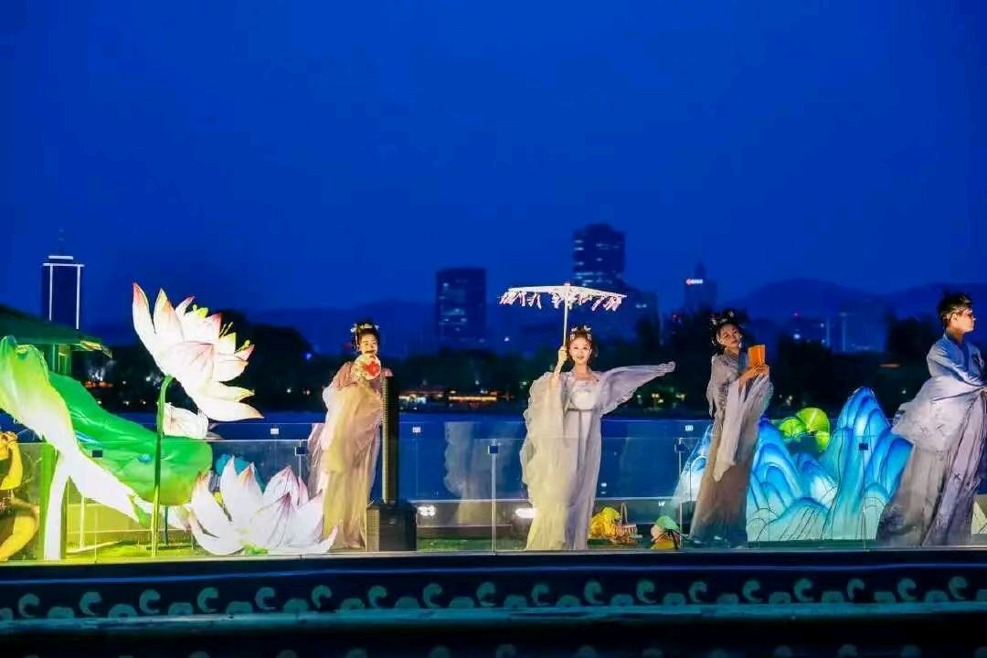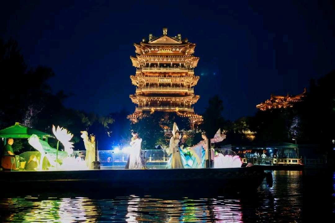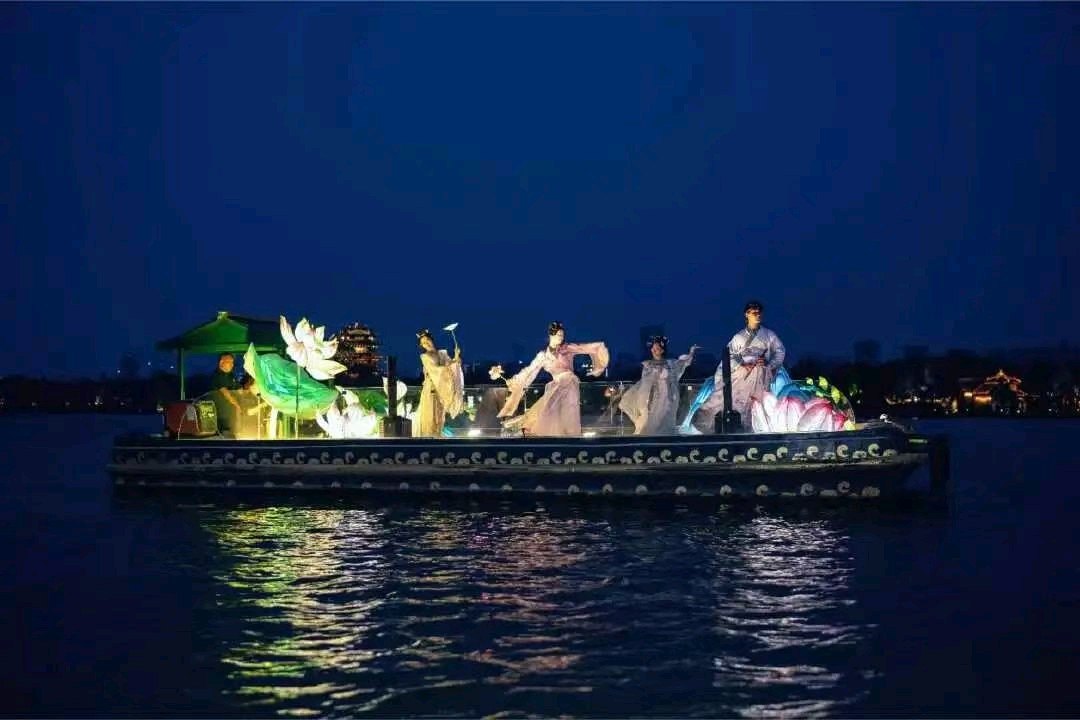 波映月,荷风送爽。全新升级的画船演艺《明湖夜梦·画中游》浪漫归来,盛装启航。