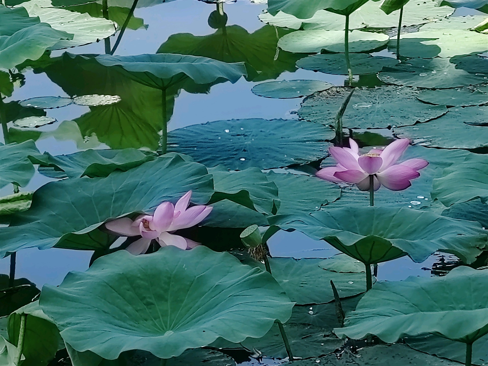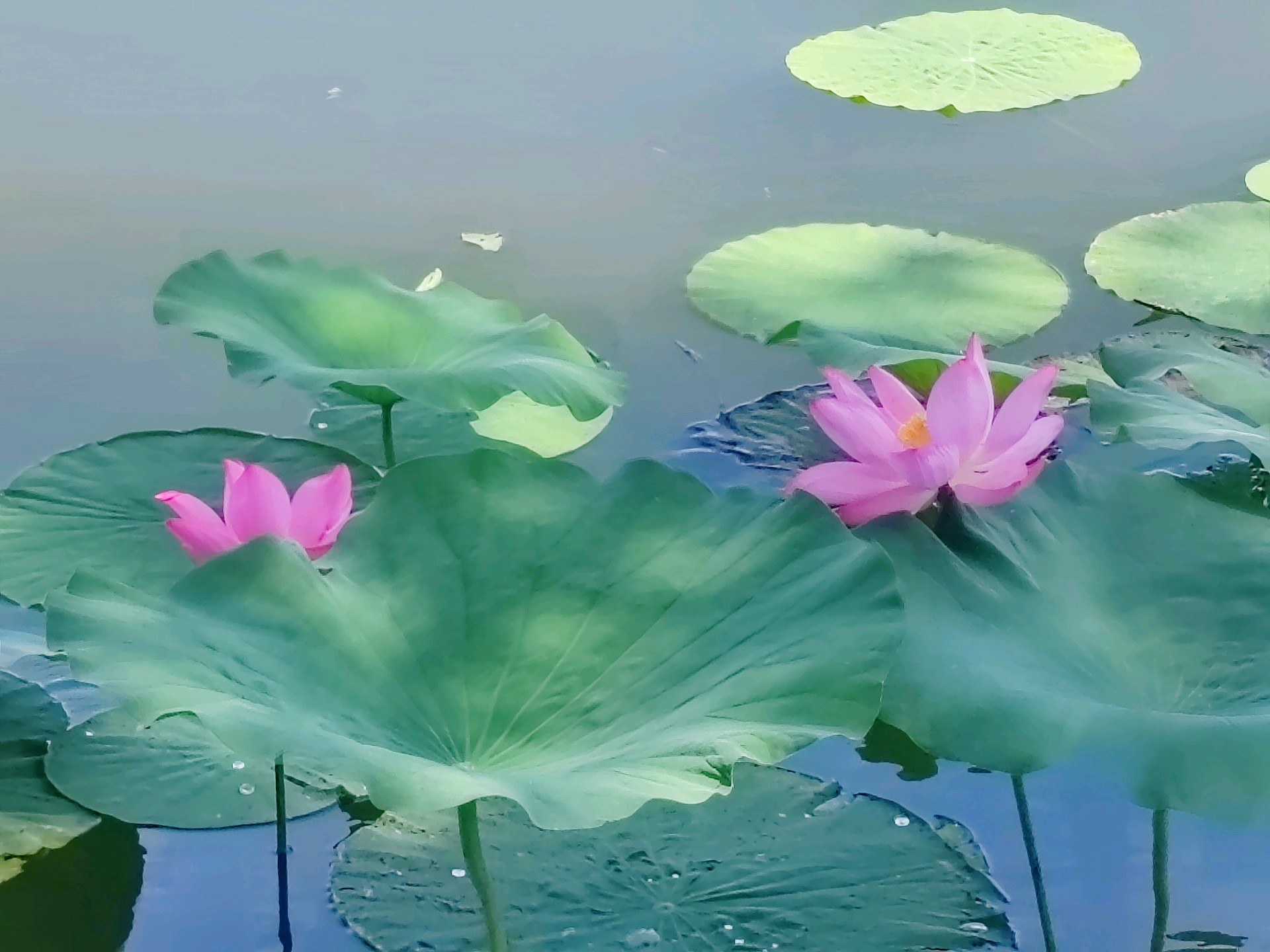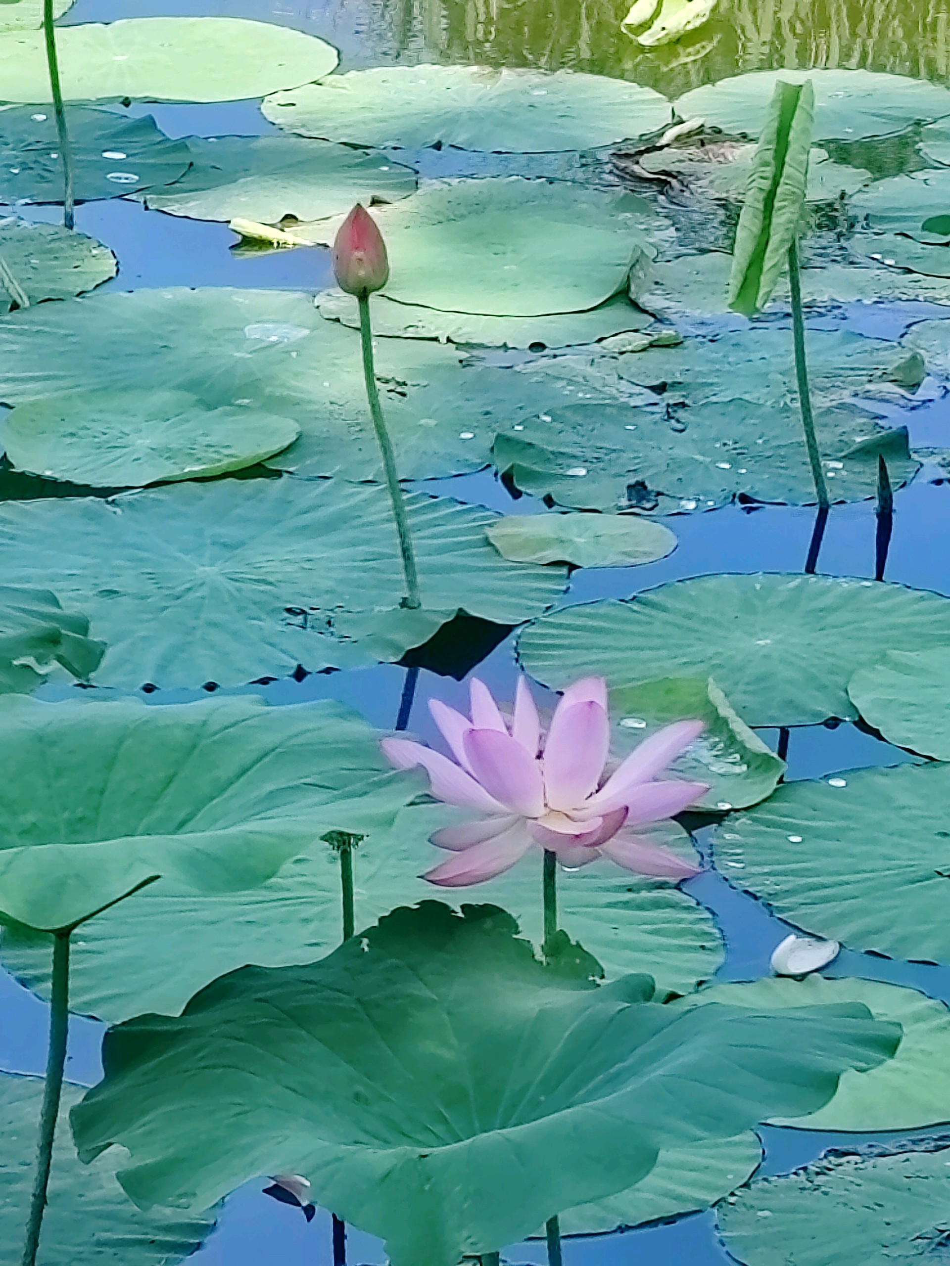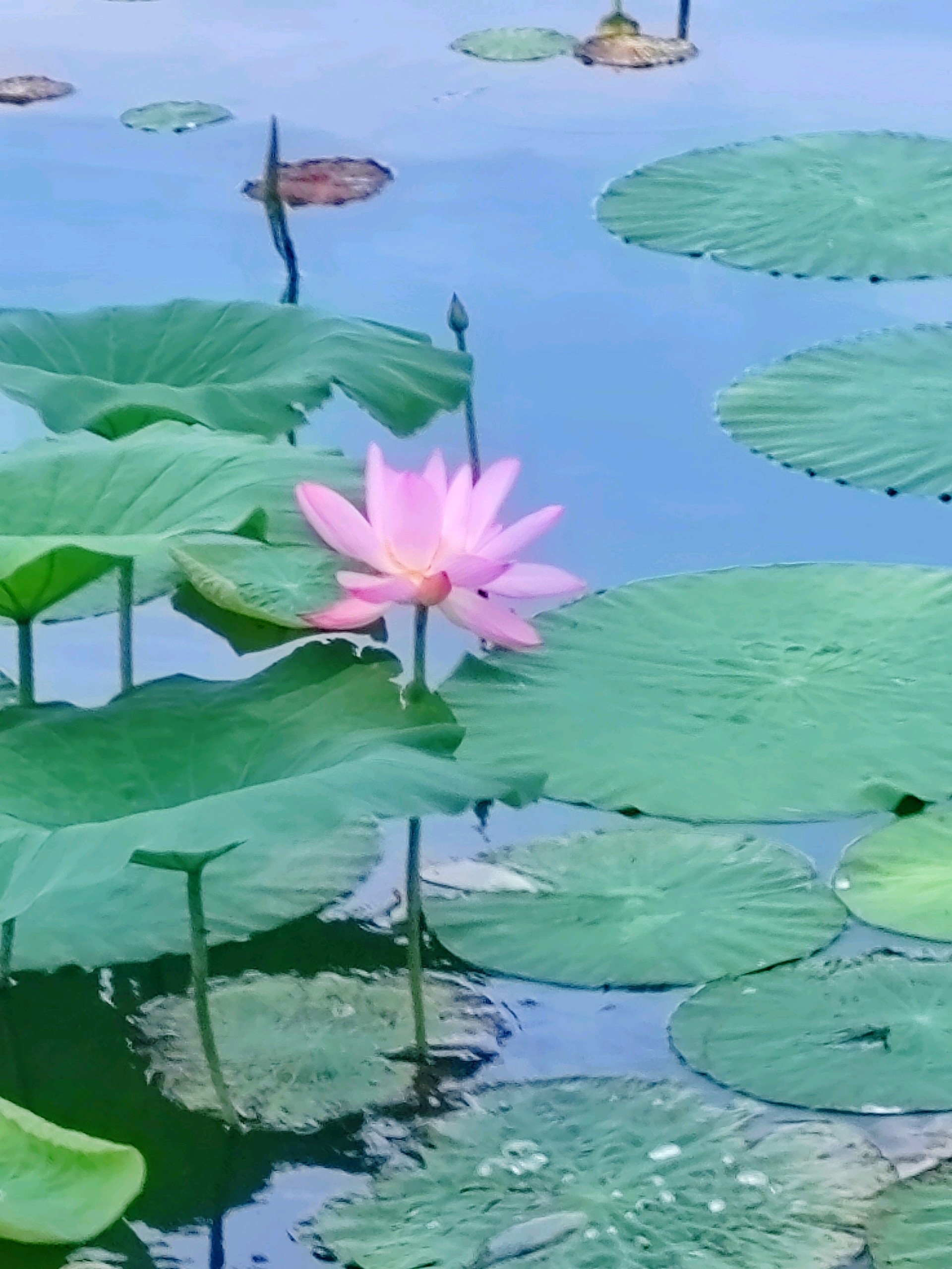 “夏日的荷花,从浪漫开始”,泉城公园荷花盛开季,片片绿叶与点缀的粉色荷花遥相呼应,就如一幅幅夏日浪漫的水粉画。