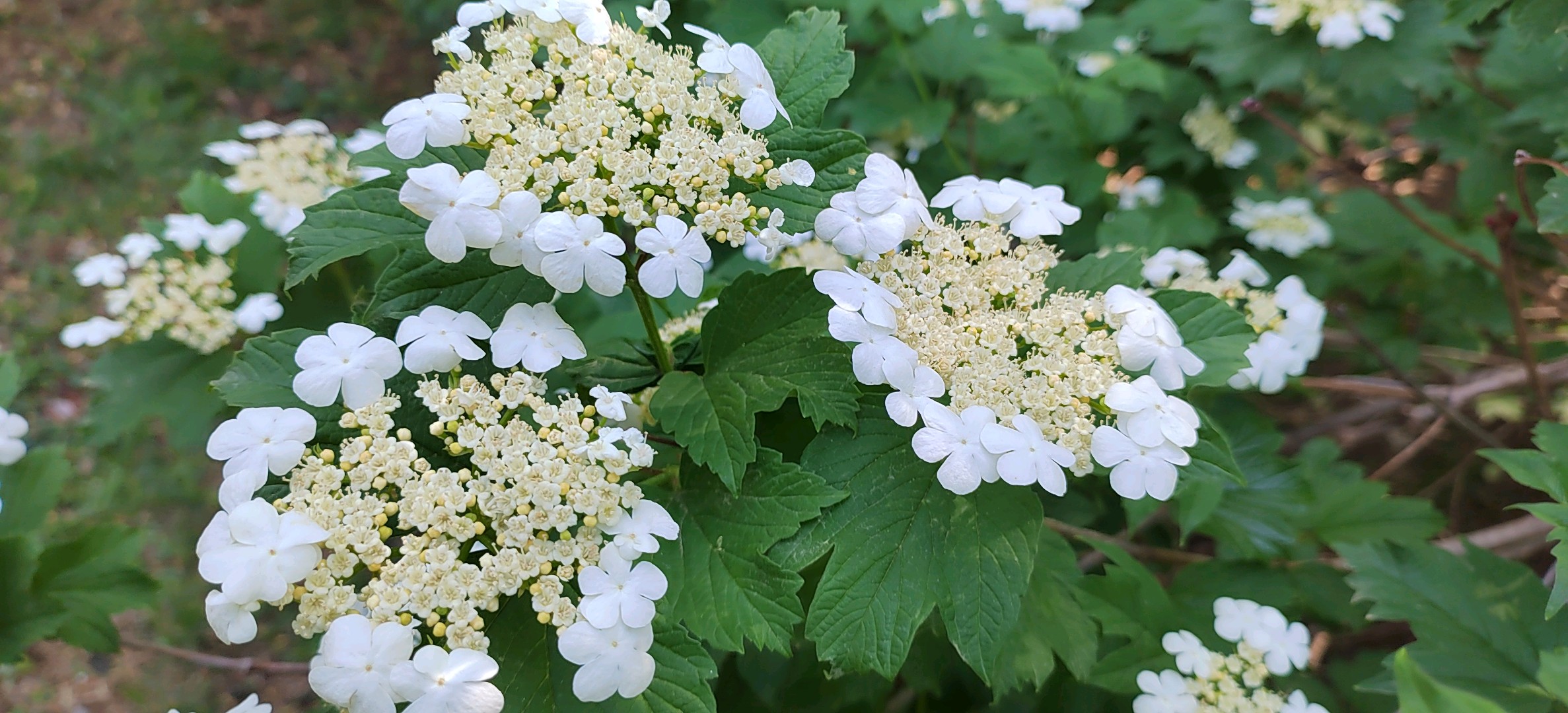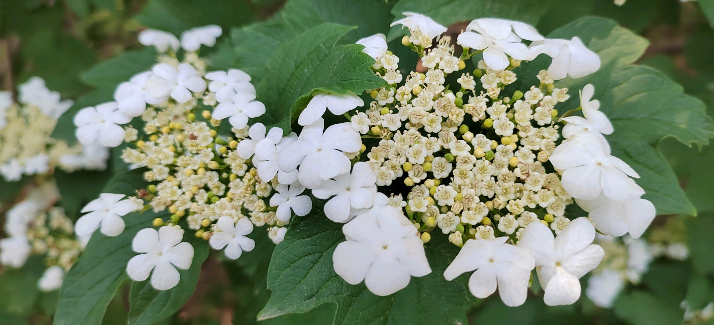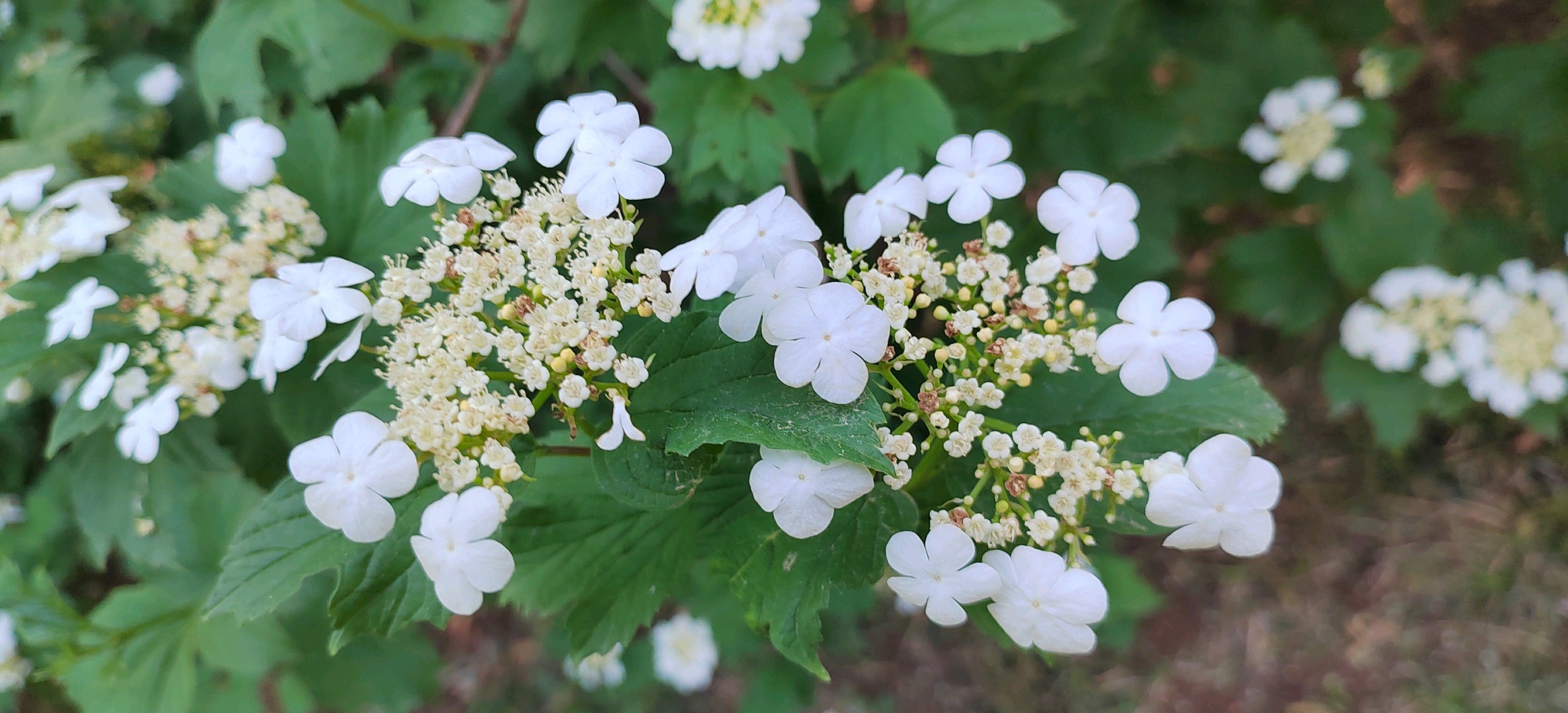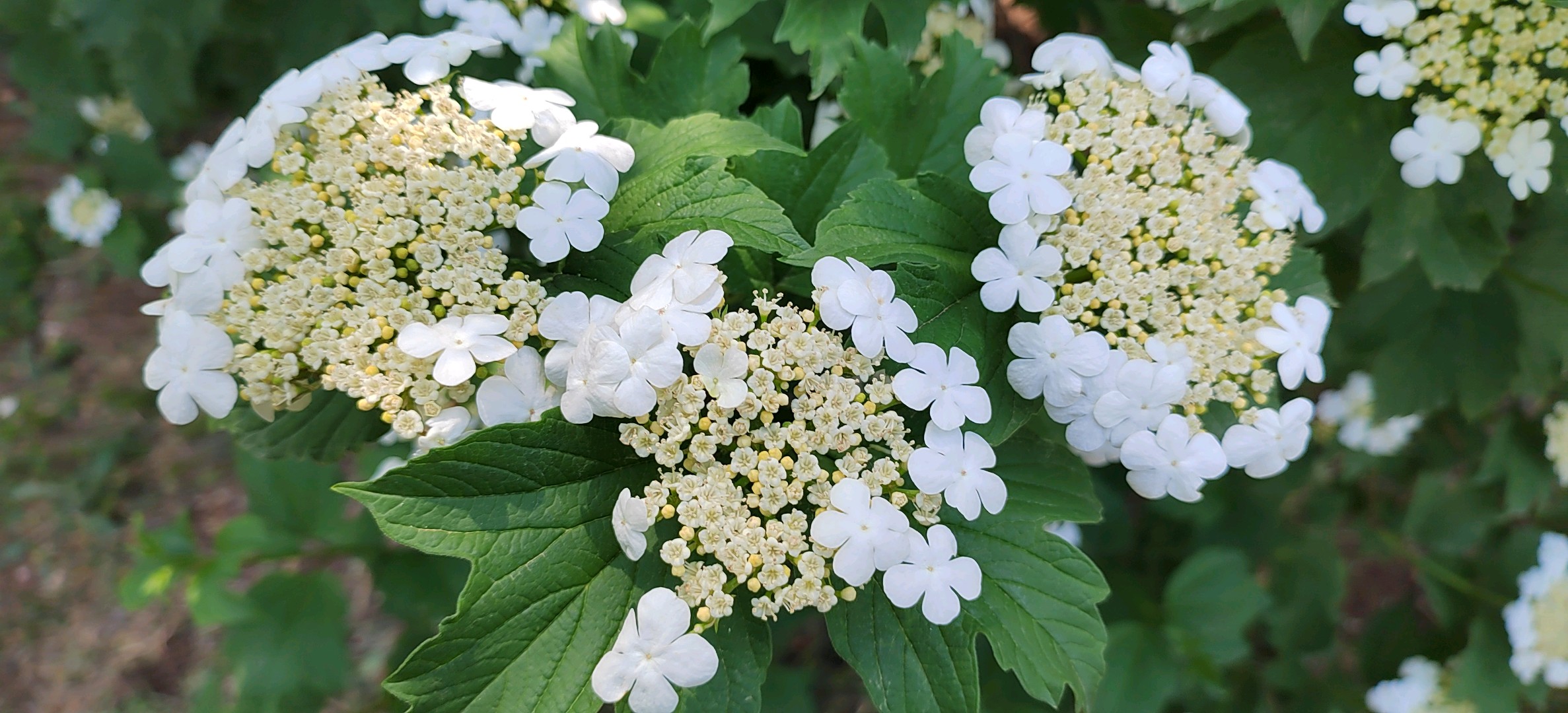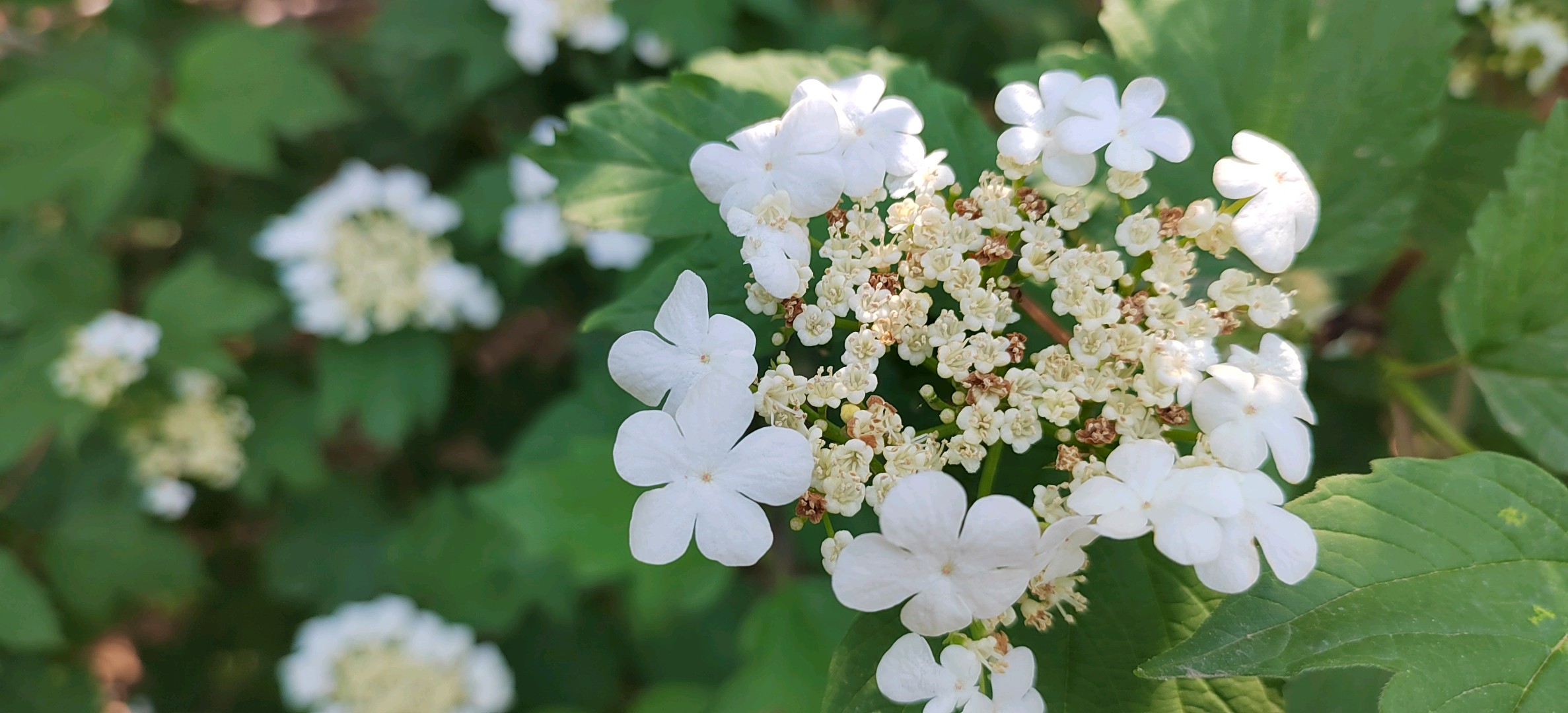 泉城公园——欧洲荚蒾欧洲荚蒾是荚蒾科荚蒾属落叶灌木。树皮和老枝灰褐色,纵裂,枝条常具棱;单叶对生,小枝上部叶片狭长而不分裂,叶柄粗壮,有明显的长盘状腺体;复伞形聚伞花序,白色;核果近圆形,成熟时红色;花期5-6月;果熟期9-10月。