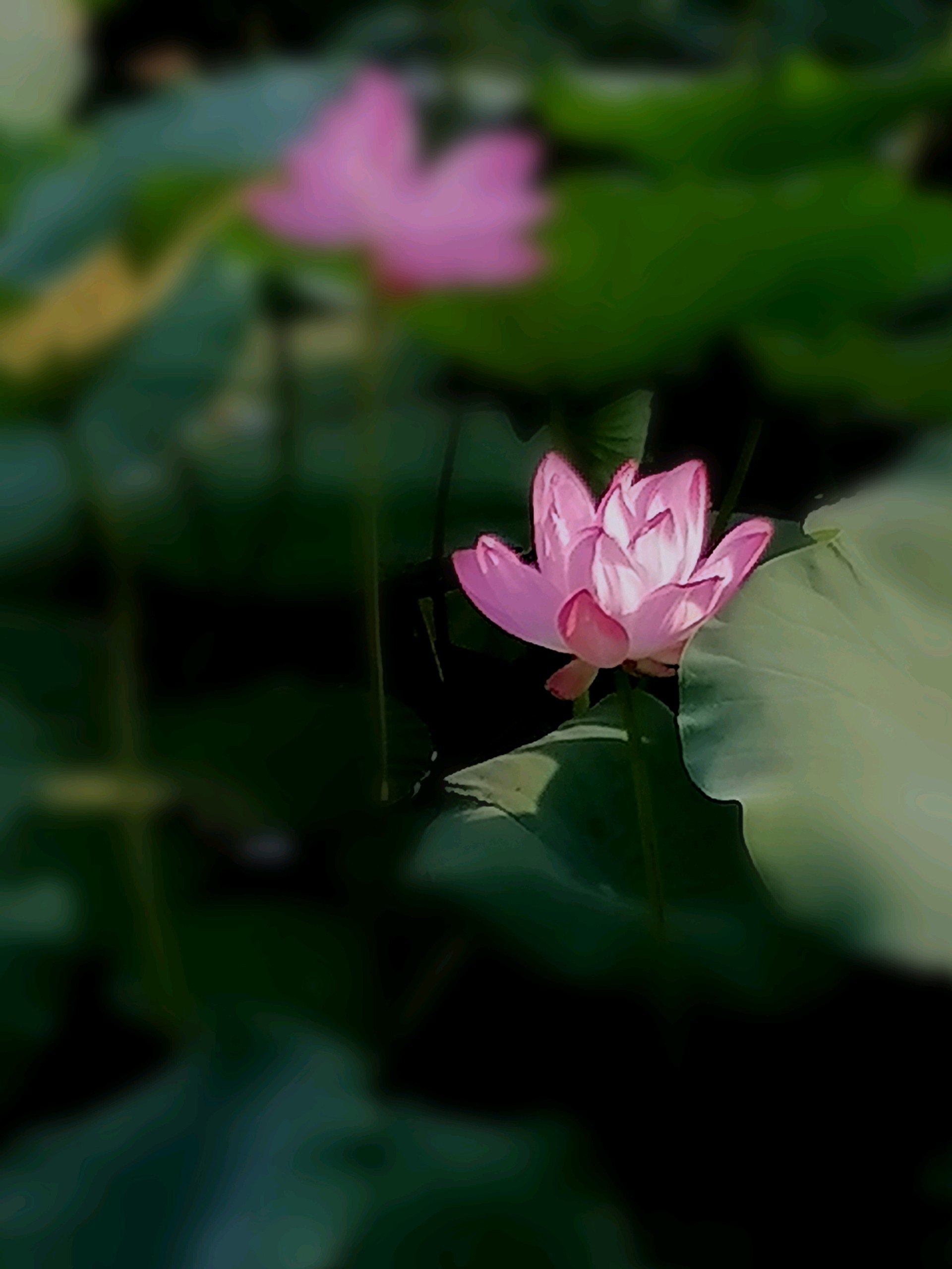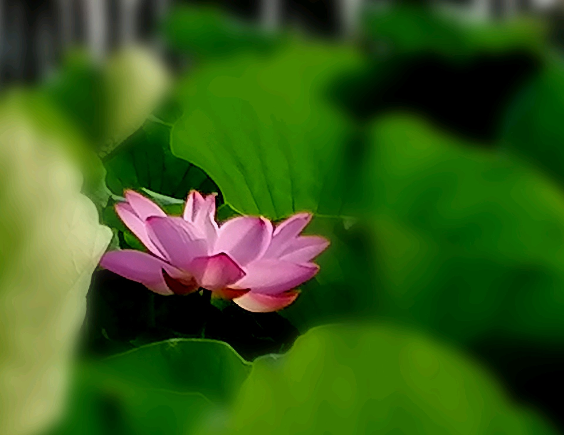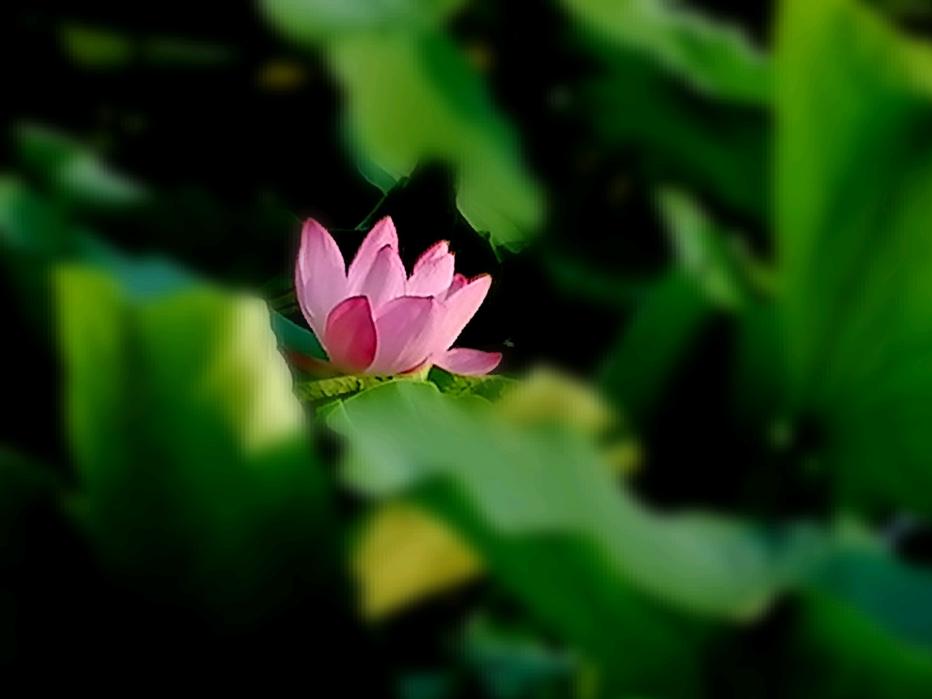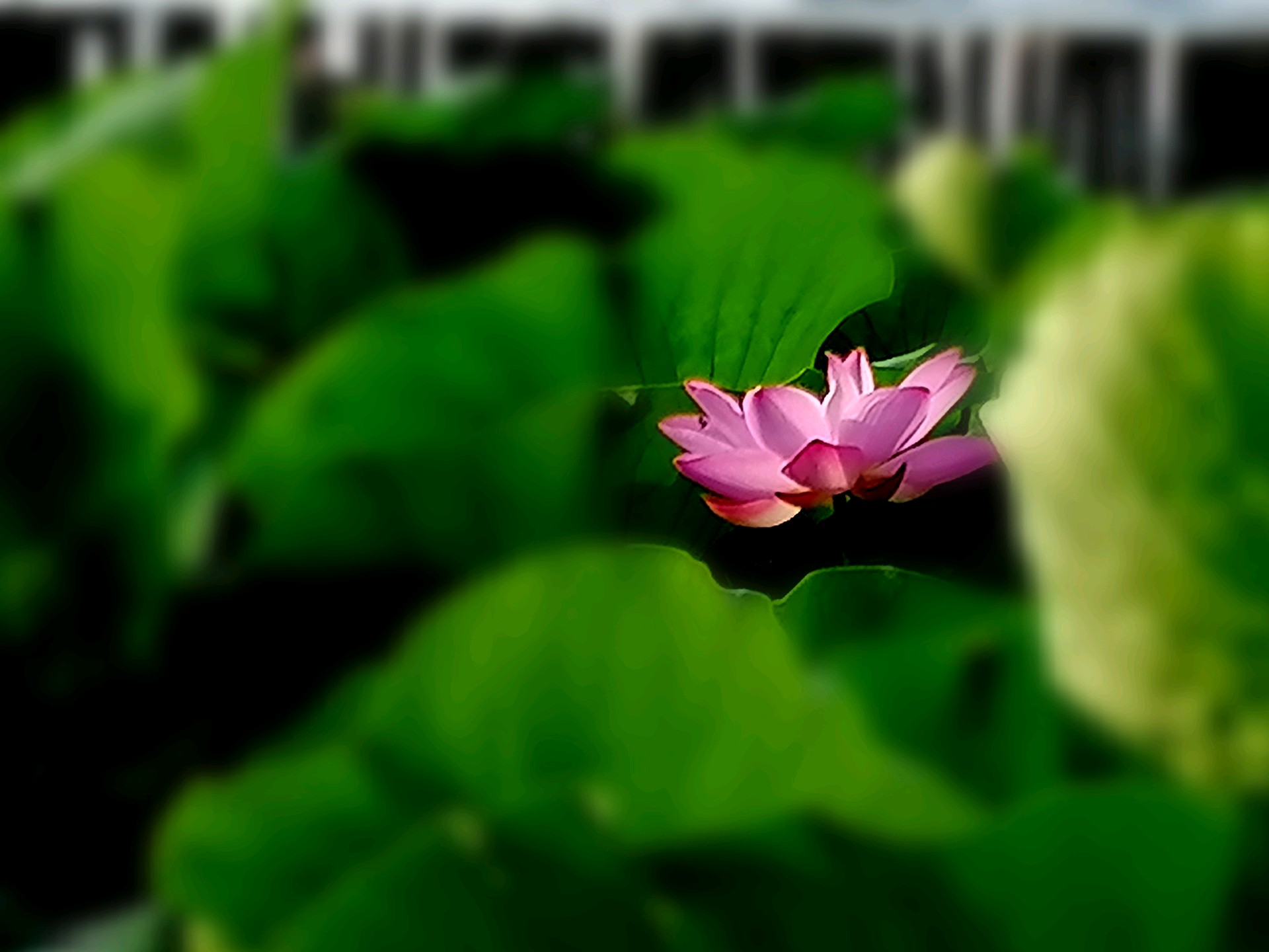 荷花绽放,粉嫩的花瓣在阳光下显得格外娇艳。绿意盎然的荷叶围绕着它,仿佛在为这美丽的花朵献礼。