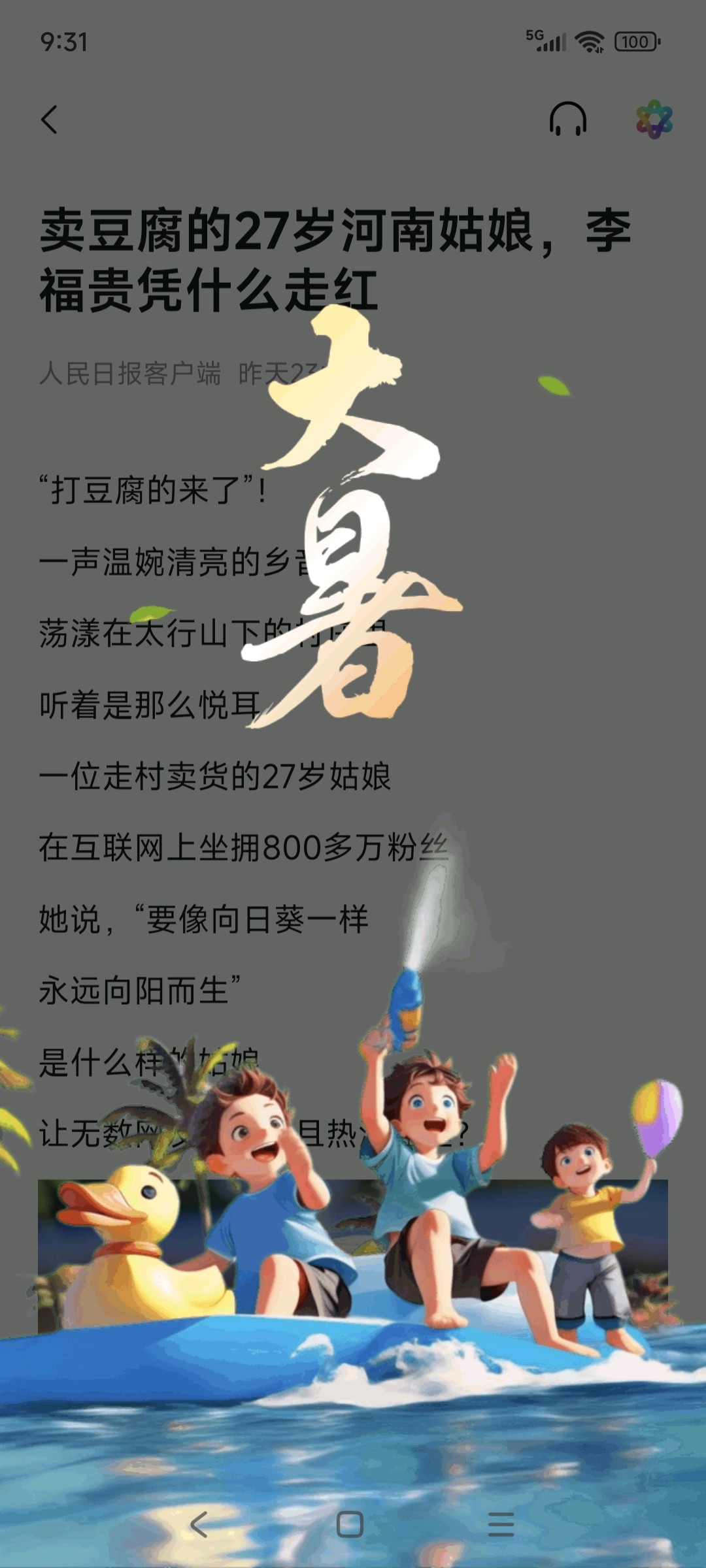 满屏的仪式感,为壹点大暑的点赞特效而点赞!卡通孩童玩水画面活泼又有夏日氛围,和大暑节气适配度拉满,季节专属的鲜活感一下子就传递出来啦!