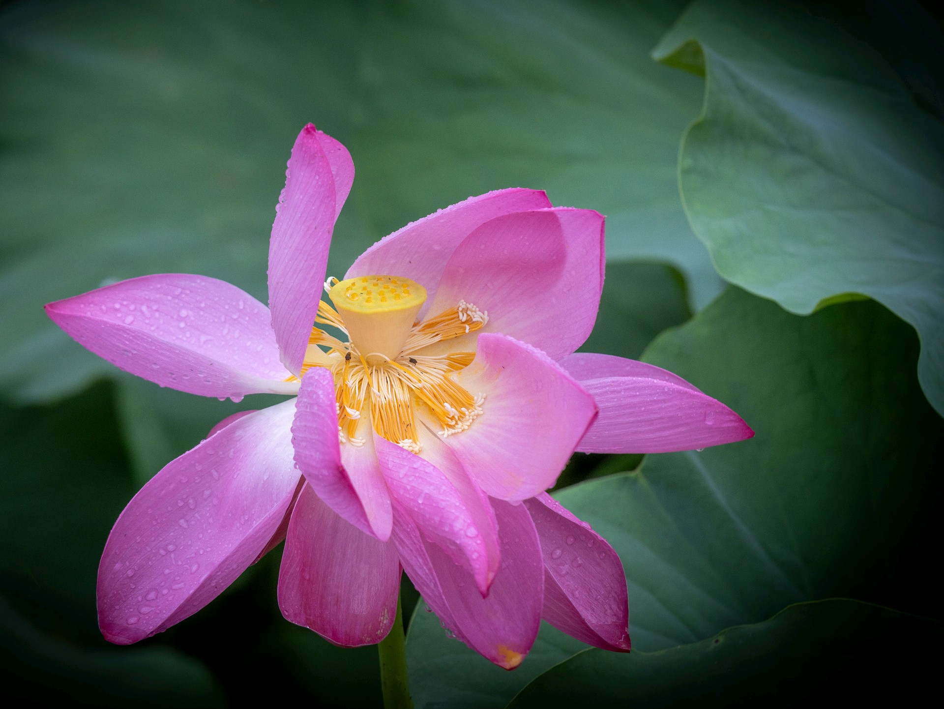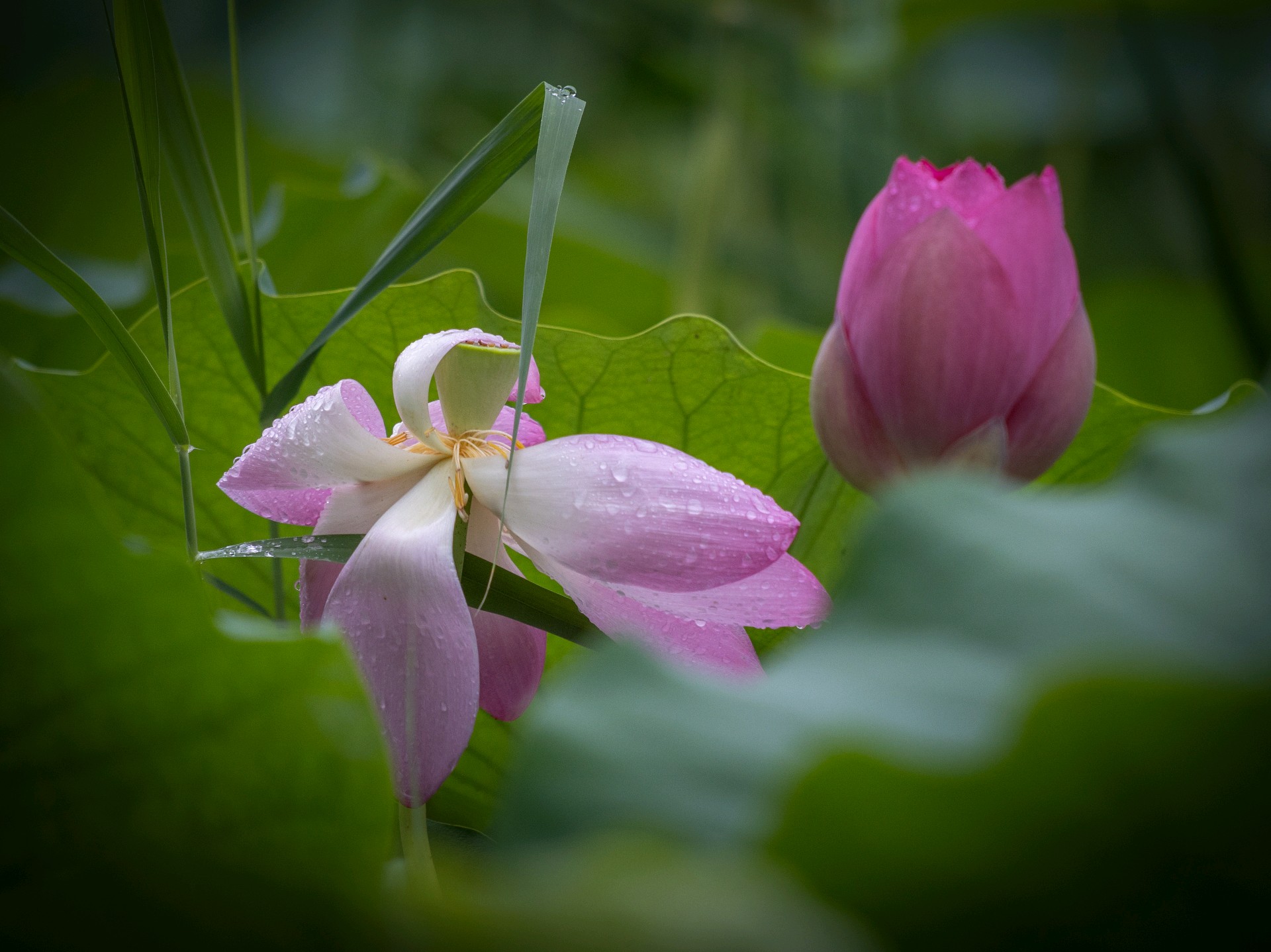 #打卡齐鲁好风光,共赴夏日盛景#连日降雨,使森林公园的荷花开的更娇艳了,荷花花瓣也舒展开,旋转着跳起舞来。荷叶中心聚集了一汪水,亮晶晶的,荷叶的脉络放射出好看的样子,趁着下雨,把荷花最美好的时刻记录下来,以后什么时候看,都是那么美。