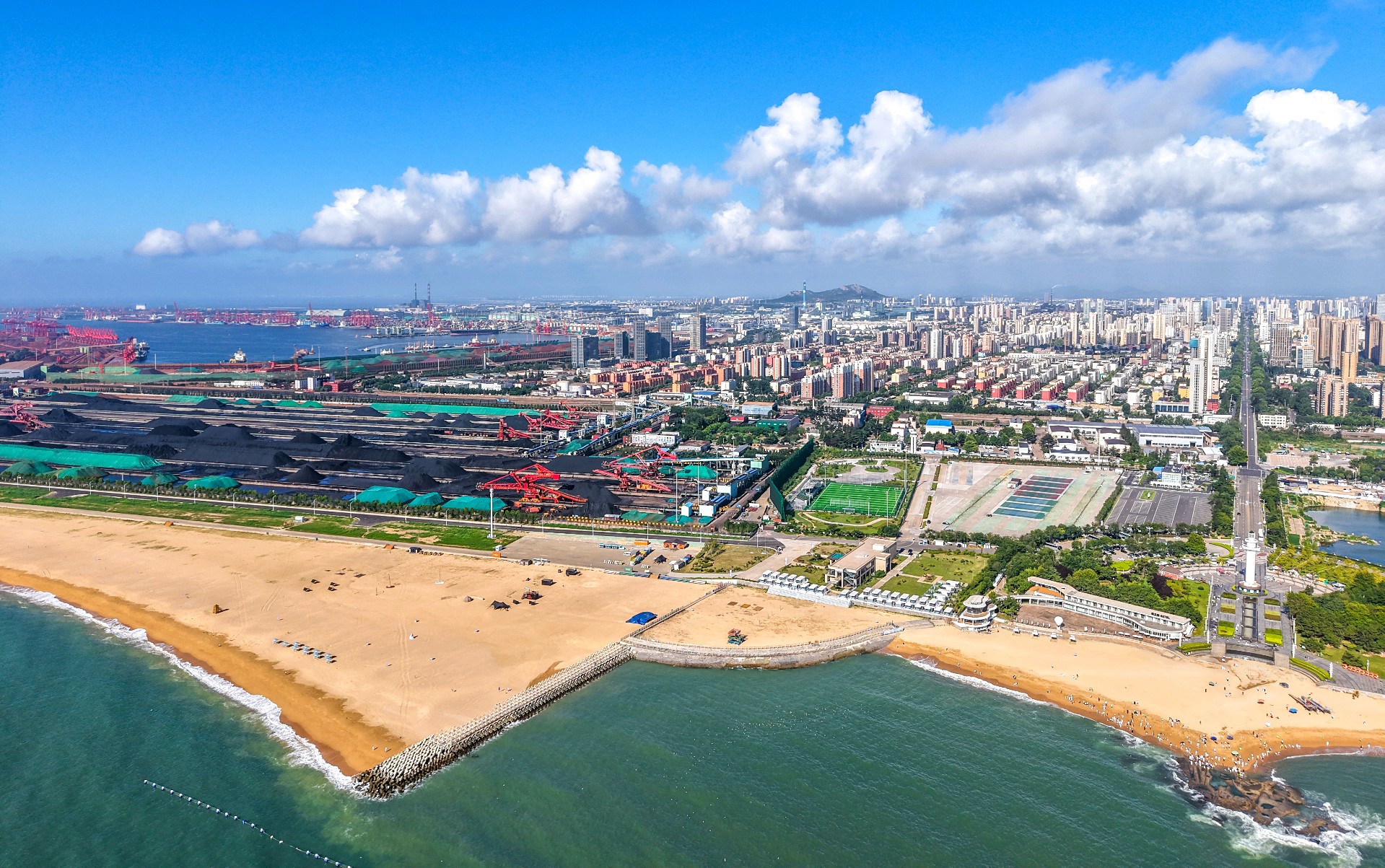 7月25日,情报员“挑战者-叶连俊”向齐鲁晚报官方客户端齐鲁壹点情报站发来情报,夏日里,日照市区及港口在蓝天白云的映衬下格外壮观靓丽!天空如碧,白云如浪,高空俯瞰,天海一色,高楼林立,整个城市像被加了滤镜一样。