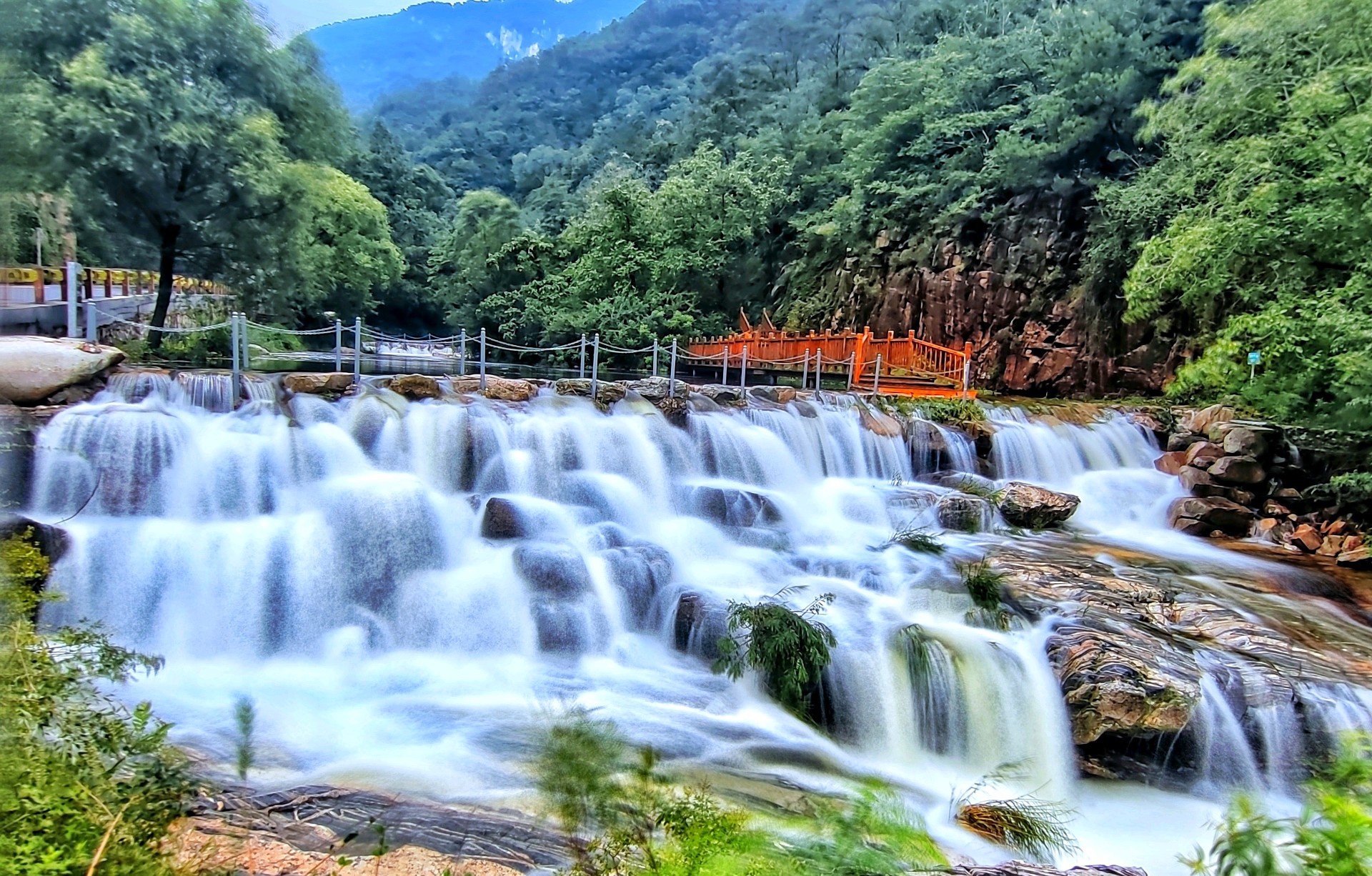 7月25日,情报员“阳光霞客”向齐鲁晚报官方客户端齐鲁壹点情报站发来情报,盛夏的济南黄巢水库,由于连续的降雨,使得水位大涨,到处瀑布飞歌,景象蔚为壮观。在大坝上向下游望去,山谷中崖壁峭立,瀑布声在山谷中回荡,气势堪比黄果树大瀑布。