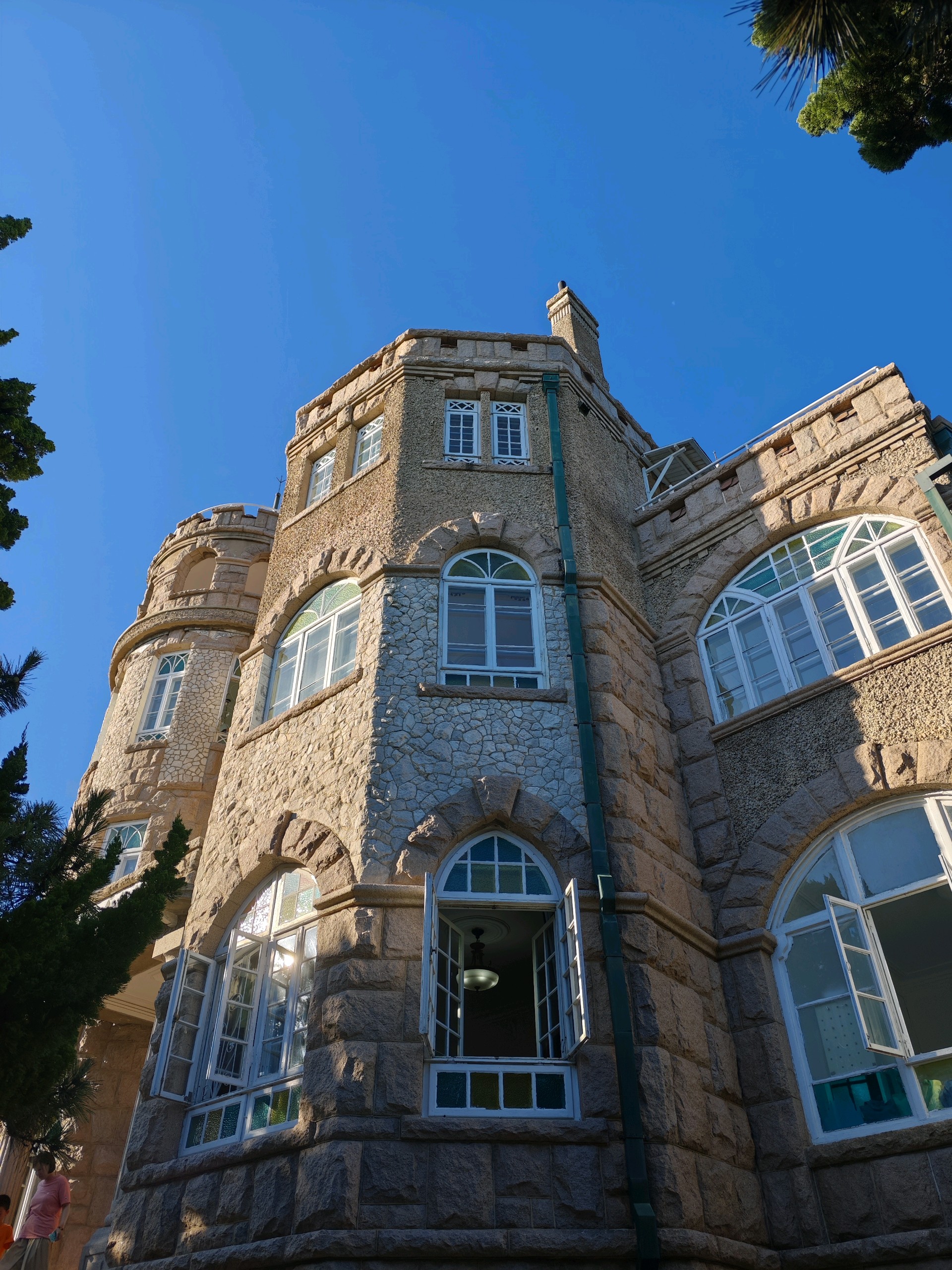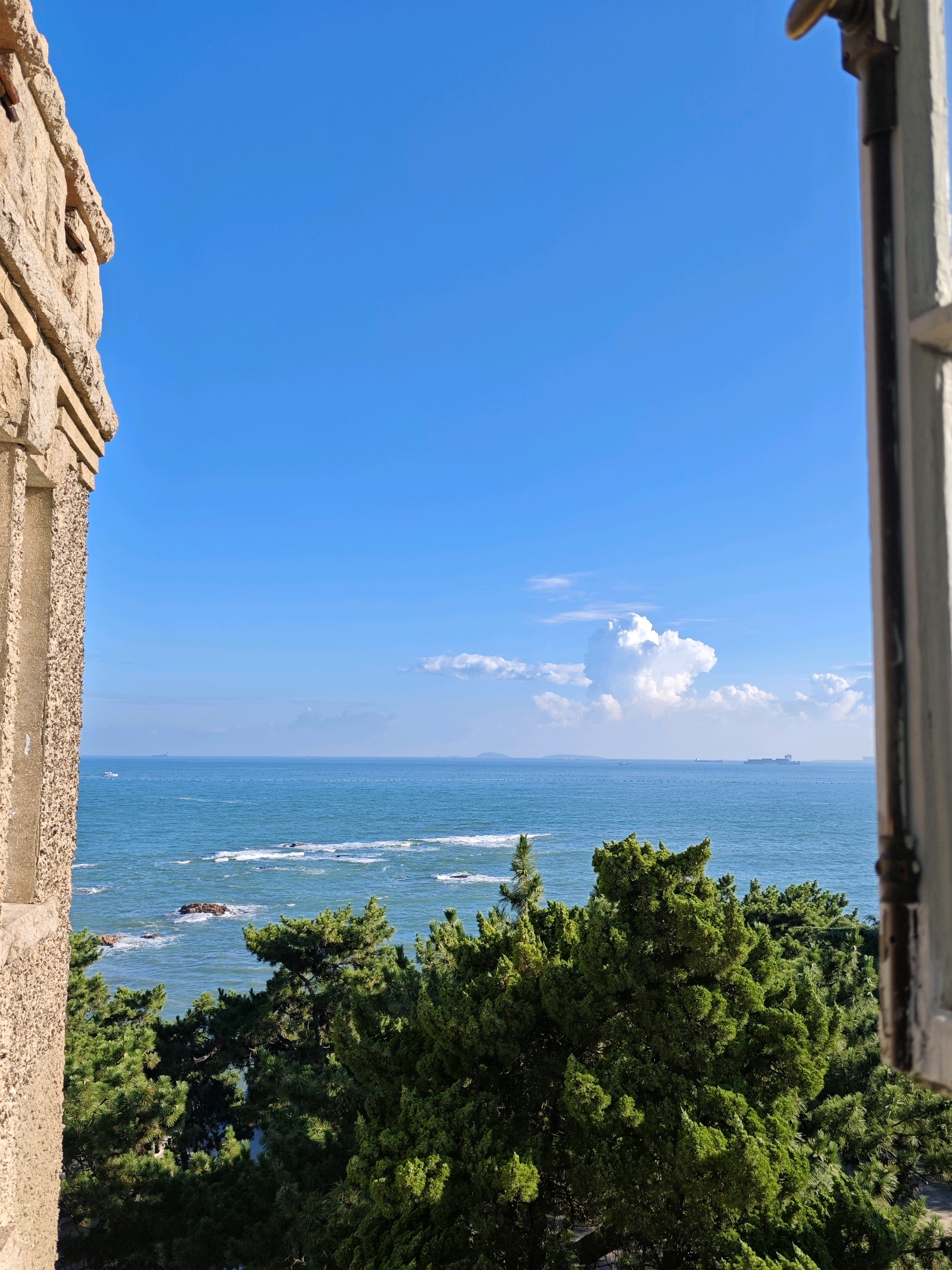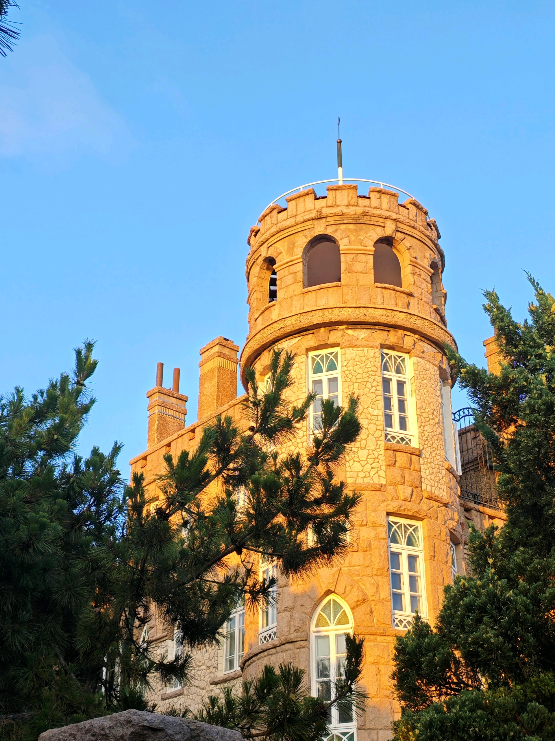 青岛八大关景区的花石楼,欧洲古堡的样子,静静伫立在海滨,窗外就是第二海水浴场,天水一色,游人如织,景色宜人。