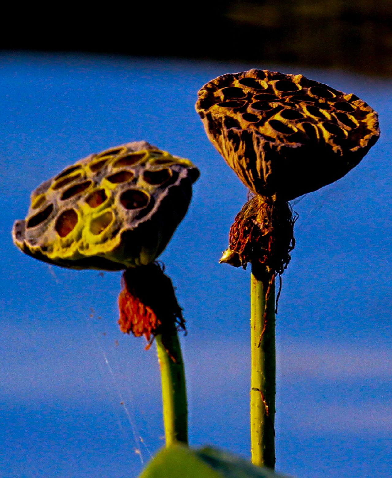 拍摄于泉城公园荷塘,本是长莲蓬恰又开出了花,枯萎的莲蓬在蓝天下绽放,岁月的痕迹清晰可见。