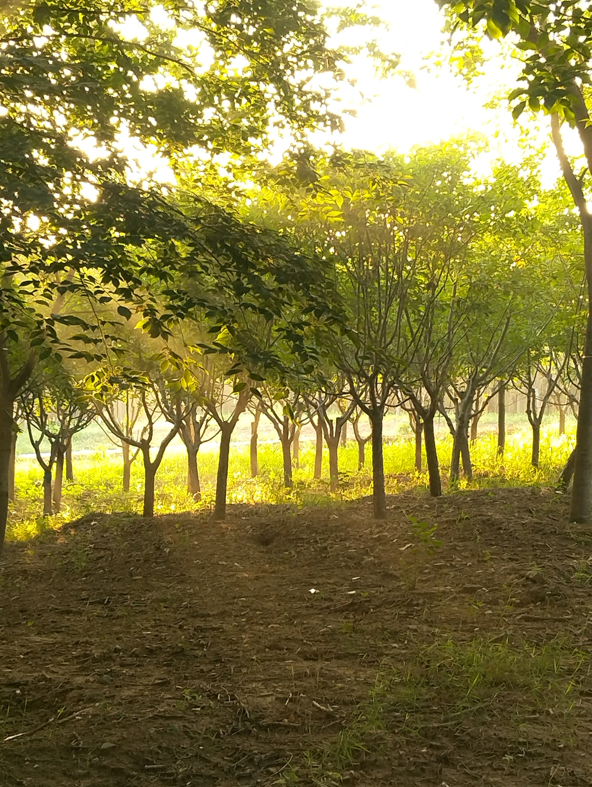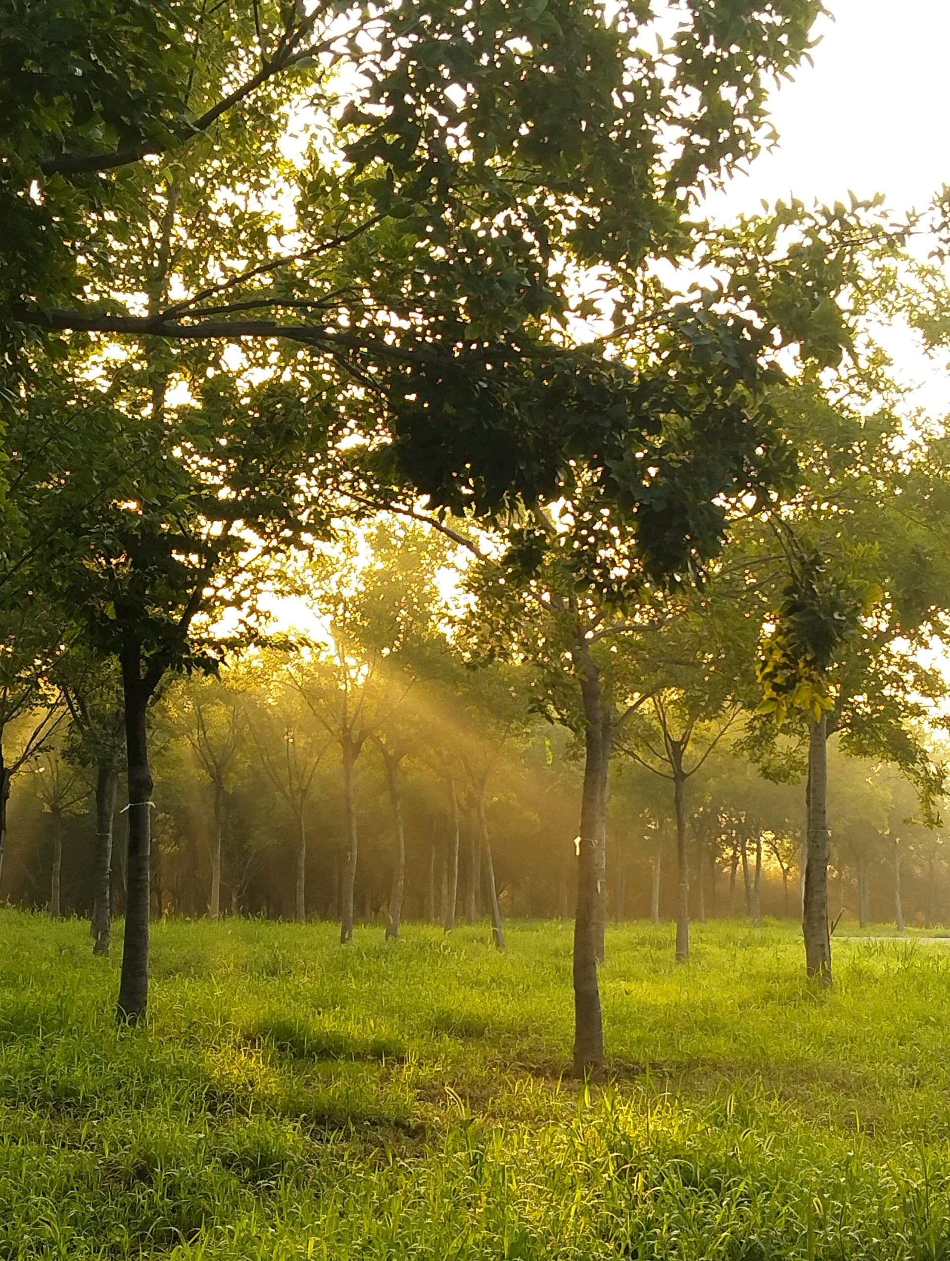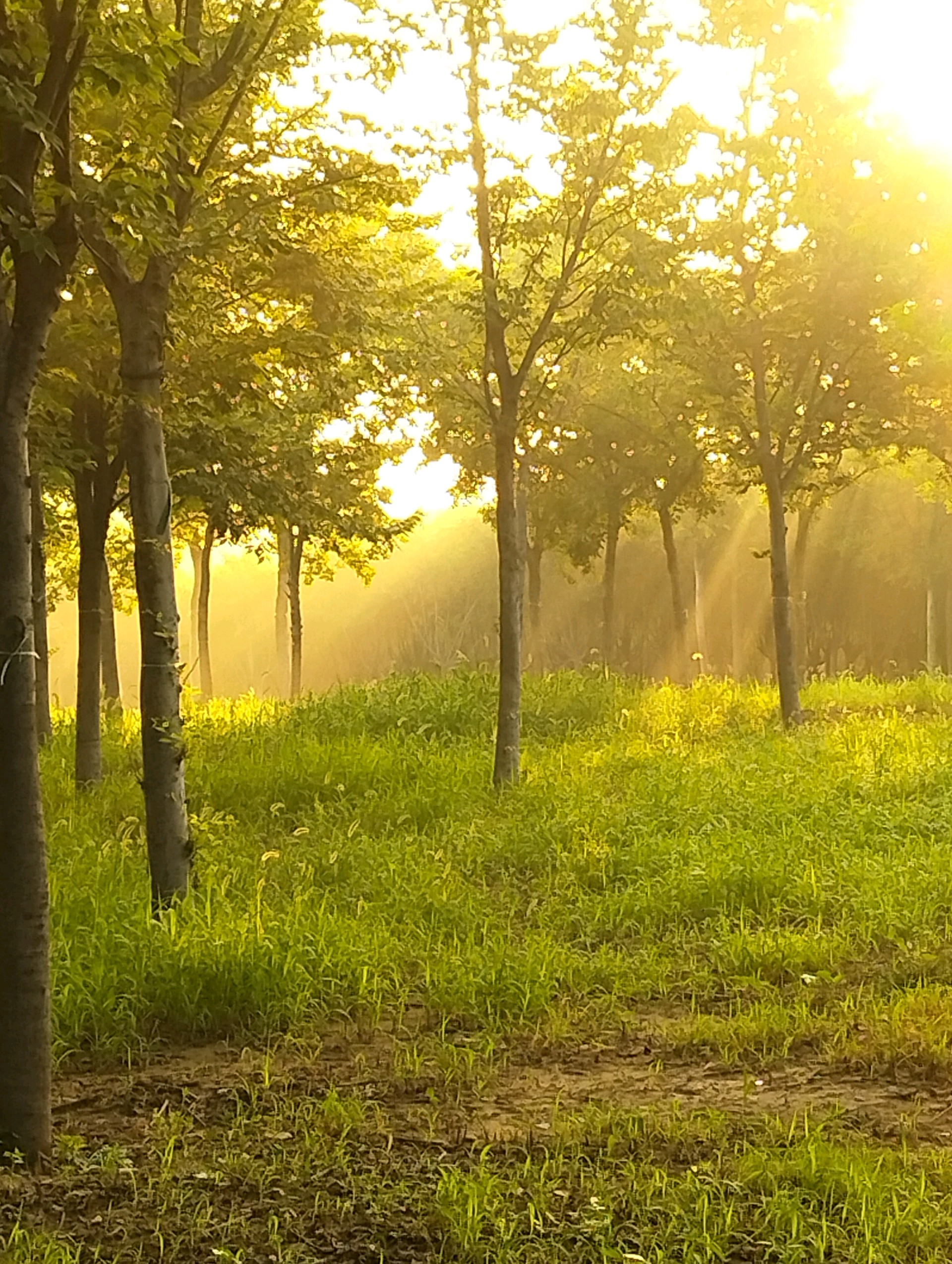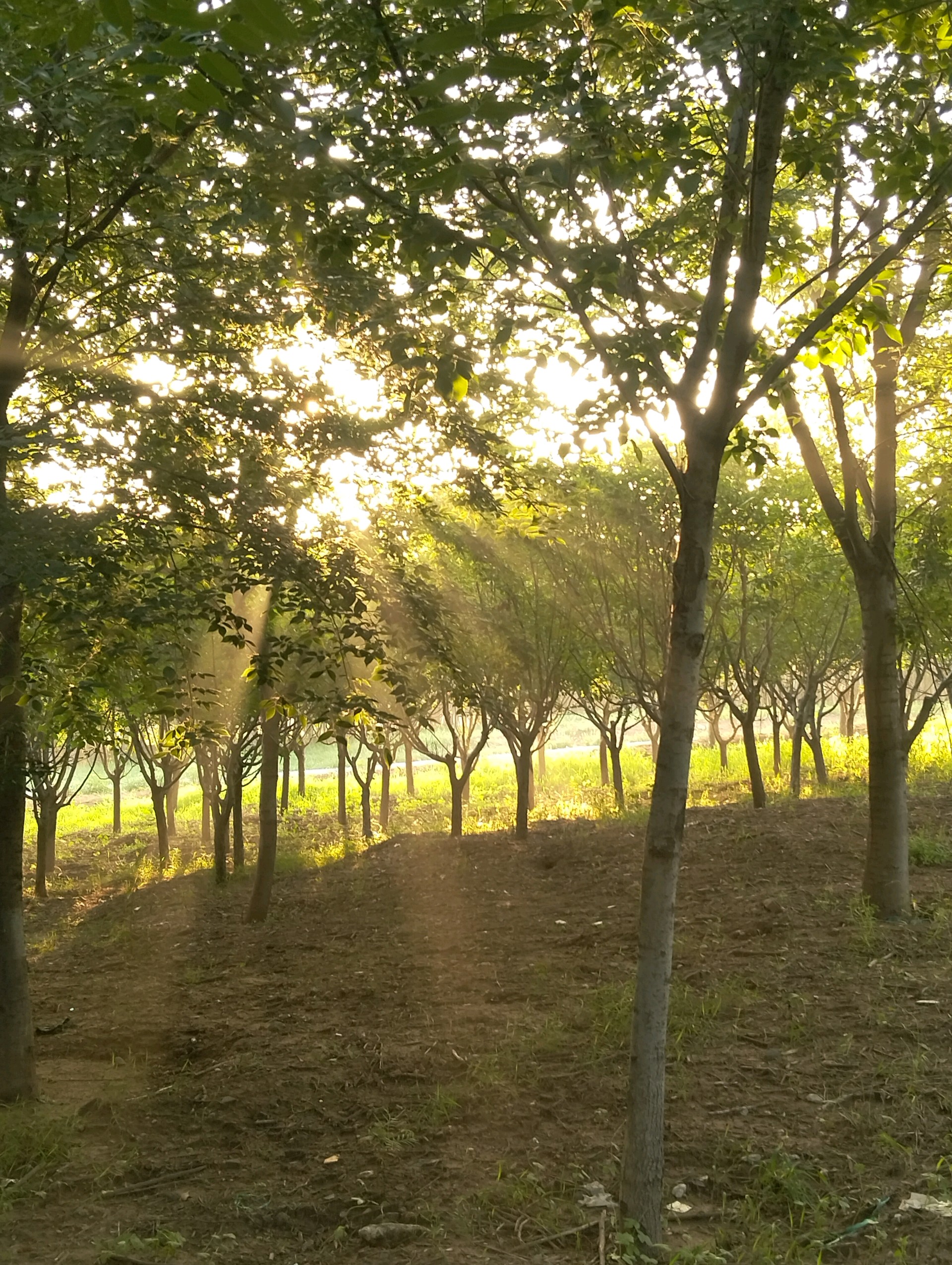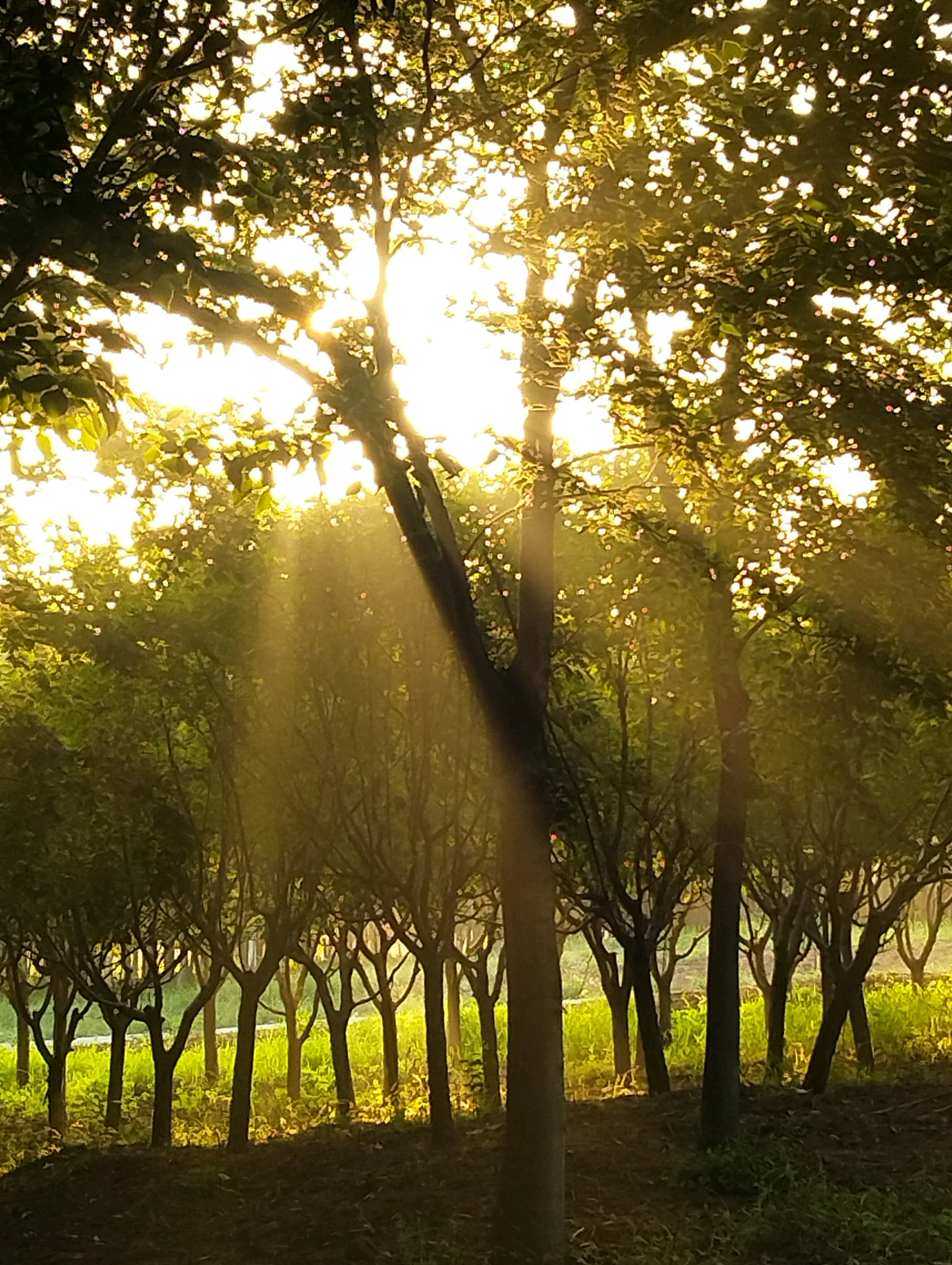 阳光透过树叶洒下金色的光芒,微风拂过,树影斑驳。这片静谧的森林,让人心旷神怡。