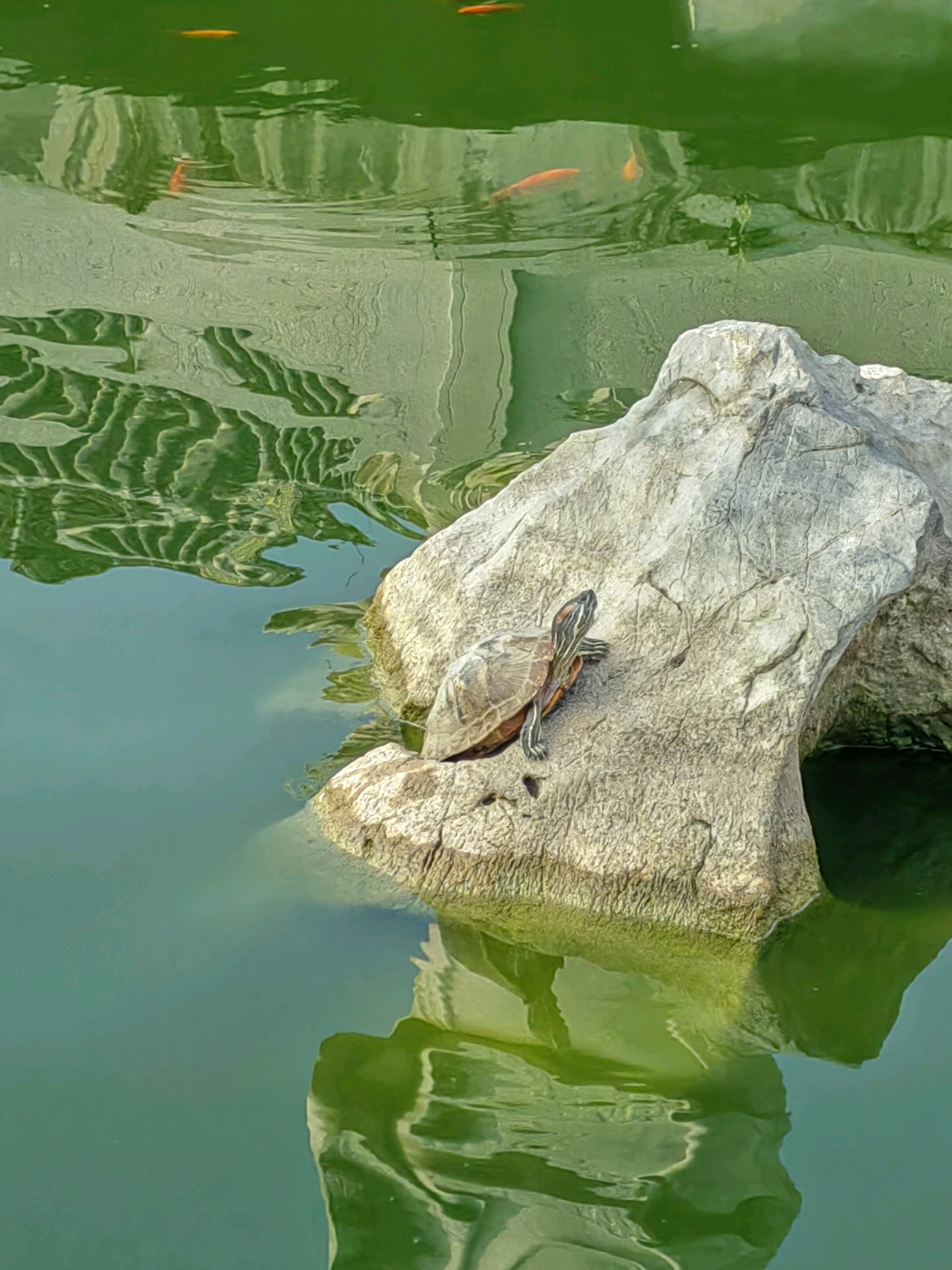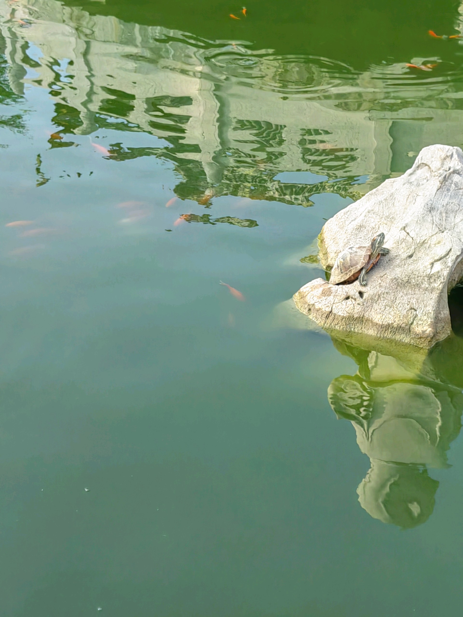 绿意盎然,鱼儿欢跃。在这片宁静的池塘里,生命与自然和谐共舞。