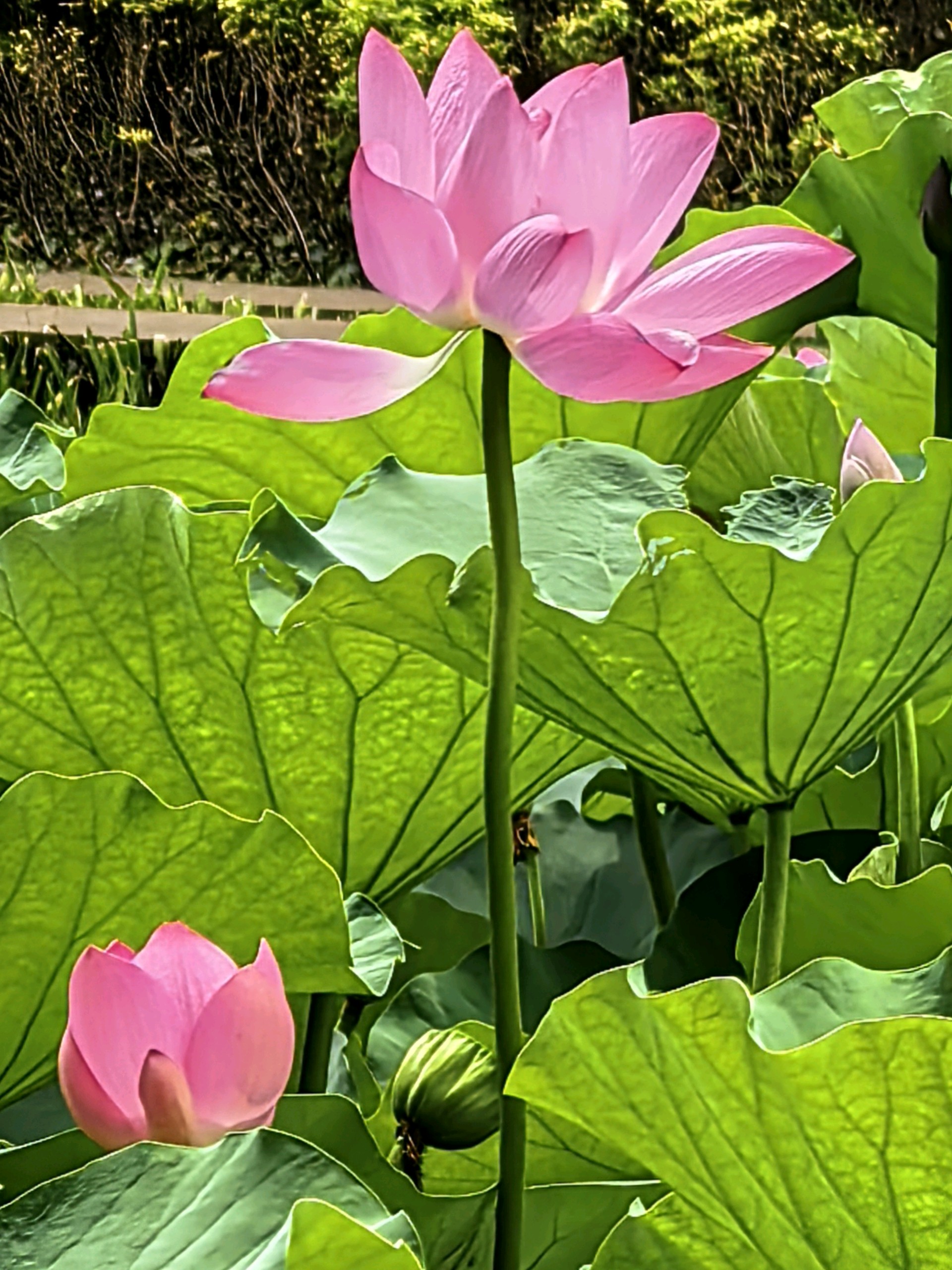 立秋了,荷花的时间不多了,因此,它们抓紧时间绽放自己的色彩和艳丽,给人们留下美丽的印象和回味!这是今天早上在泰安龙泽湖拍到荷花美景。在公园里,人们也抓紧拍些即将荷花,留下美丽的记忆和存档!荷塘赏景(下平一先)夜去黎明又一天,东方彩色照红莲。荷花绿叶交相衬,柳吻蜻蜓伴夏蝉。2025.08.08