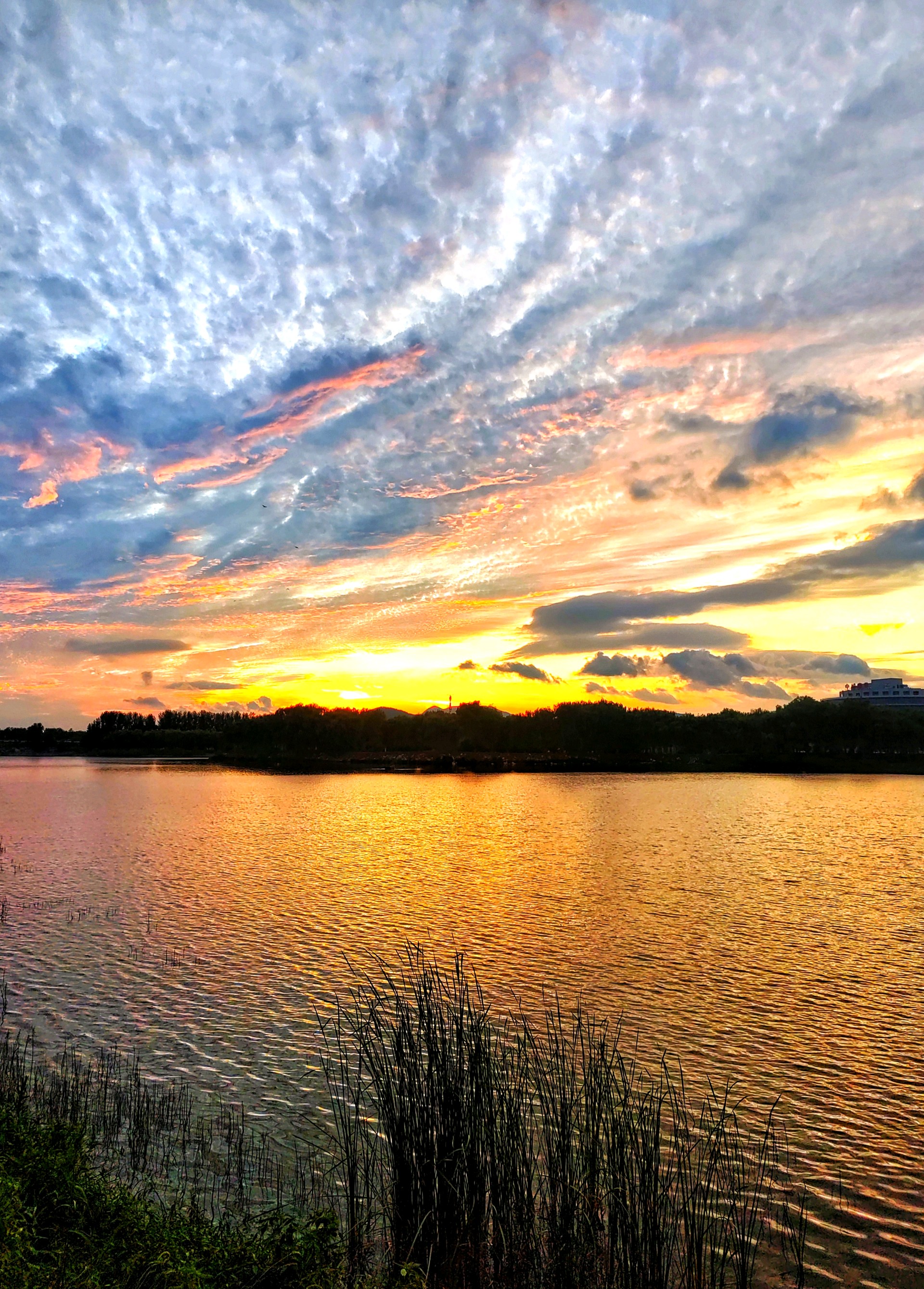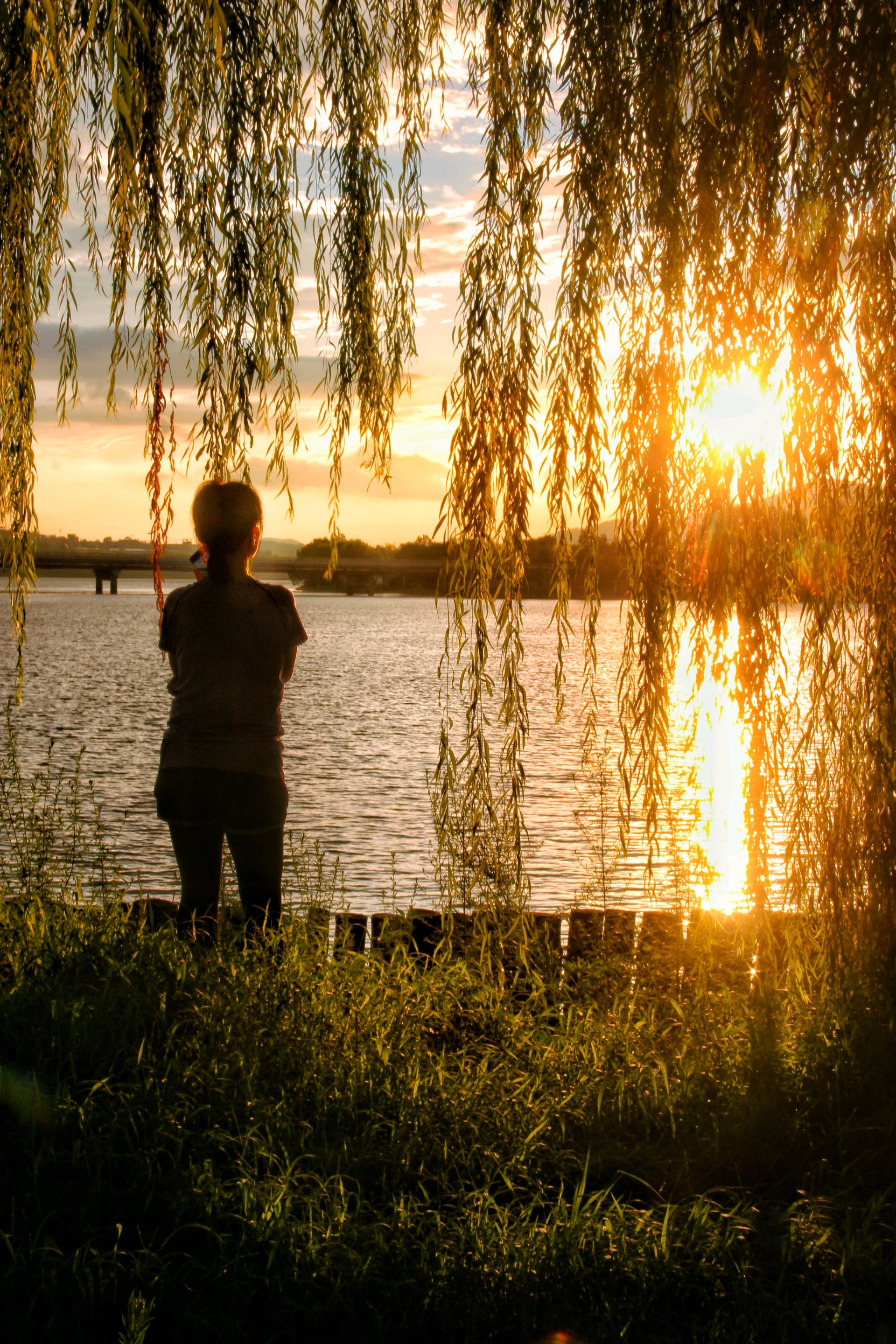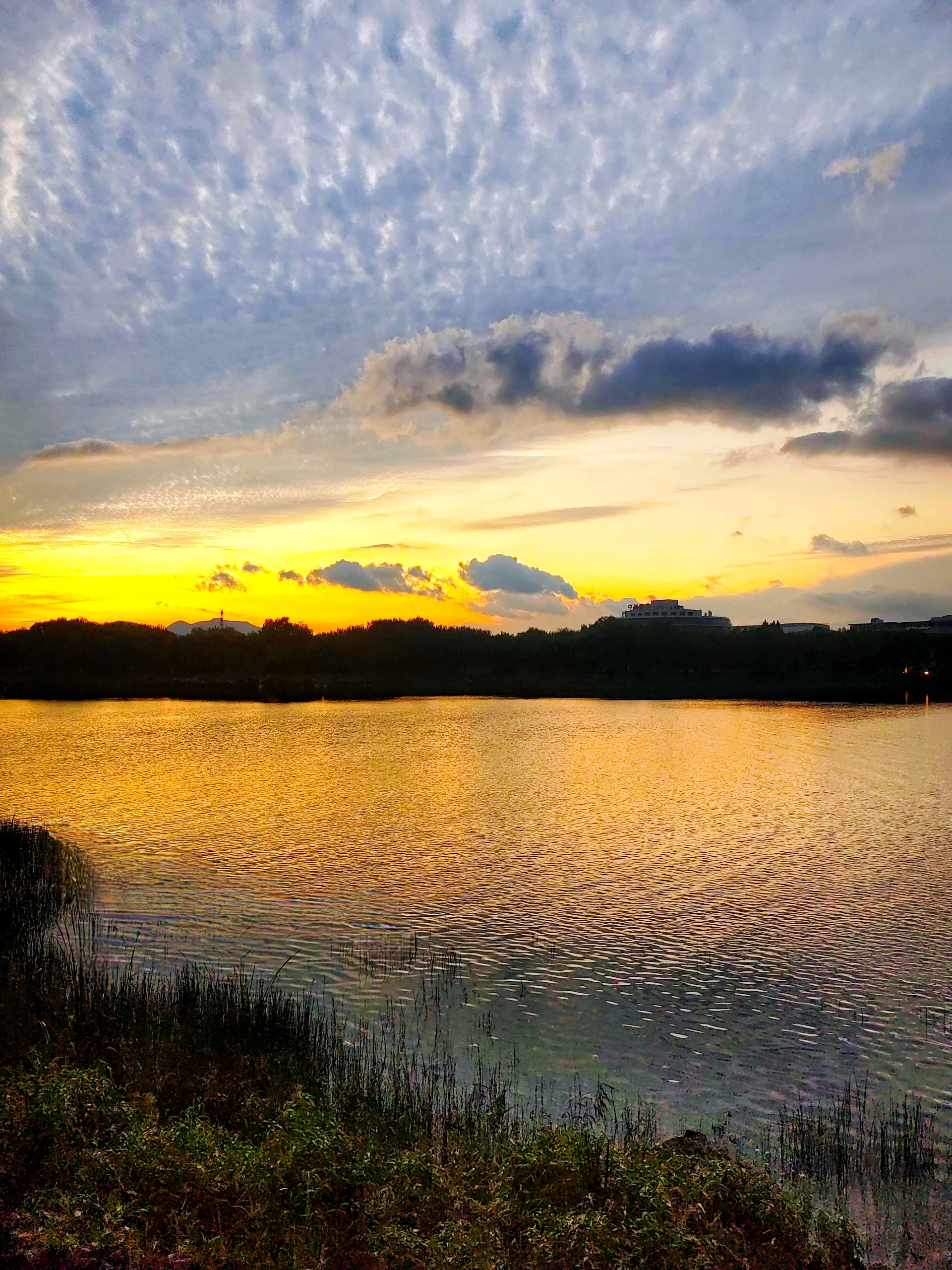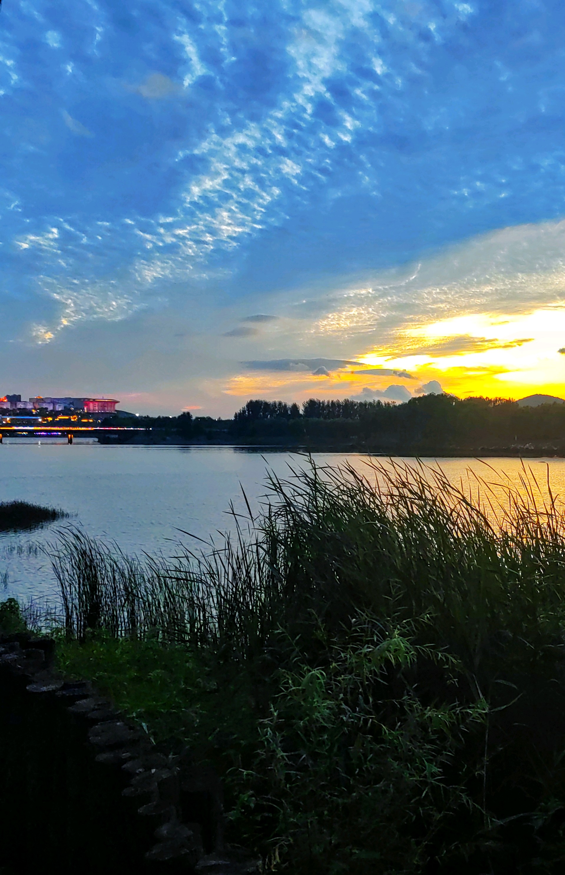 夕阳余晖,彩霞满天,湖畔佳人,静享时光。