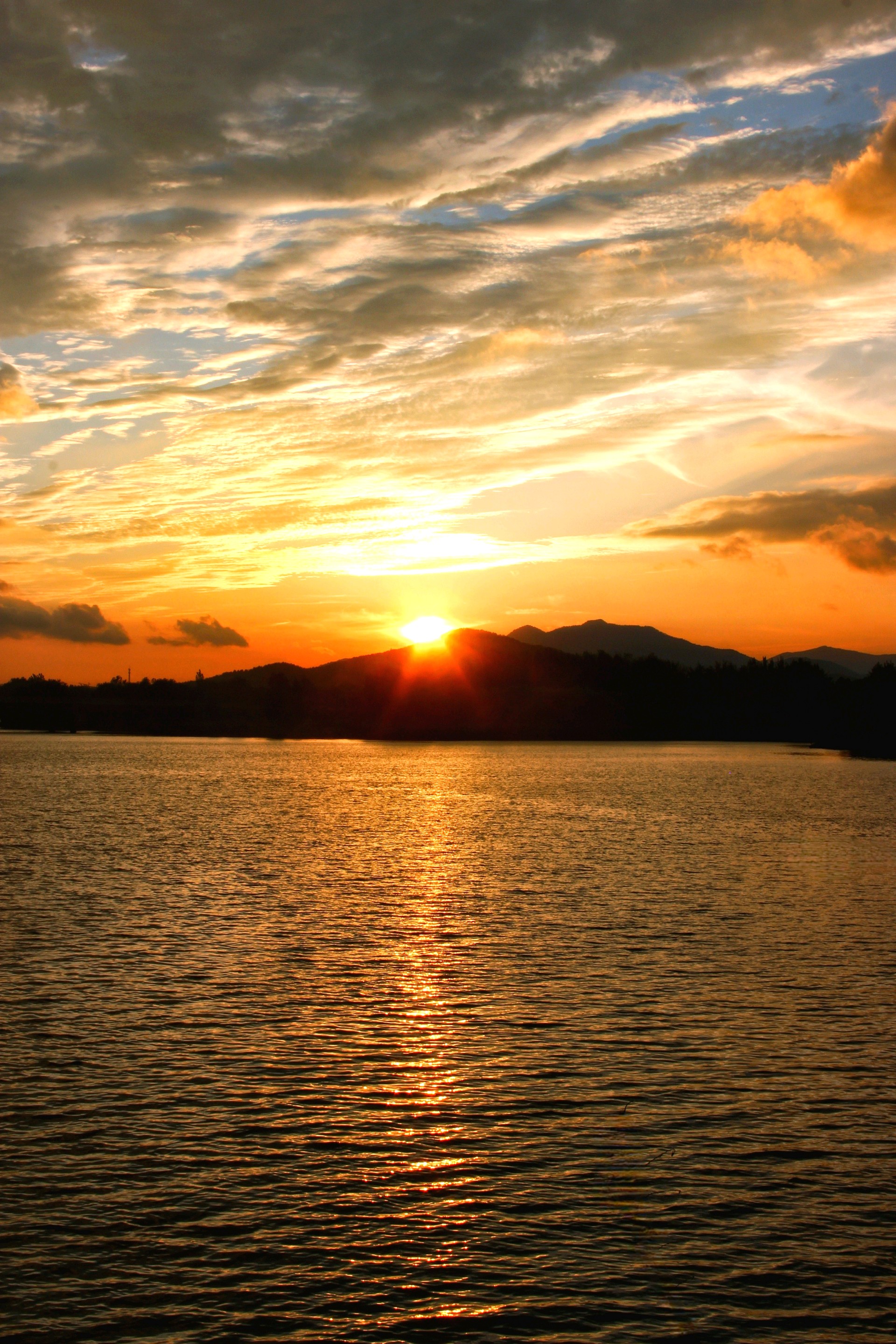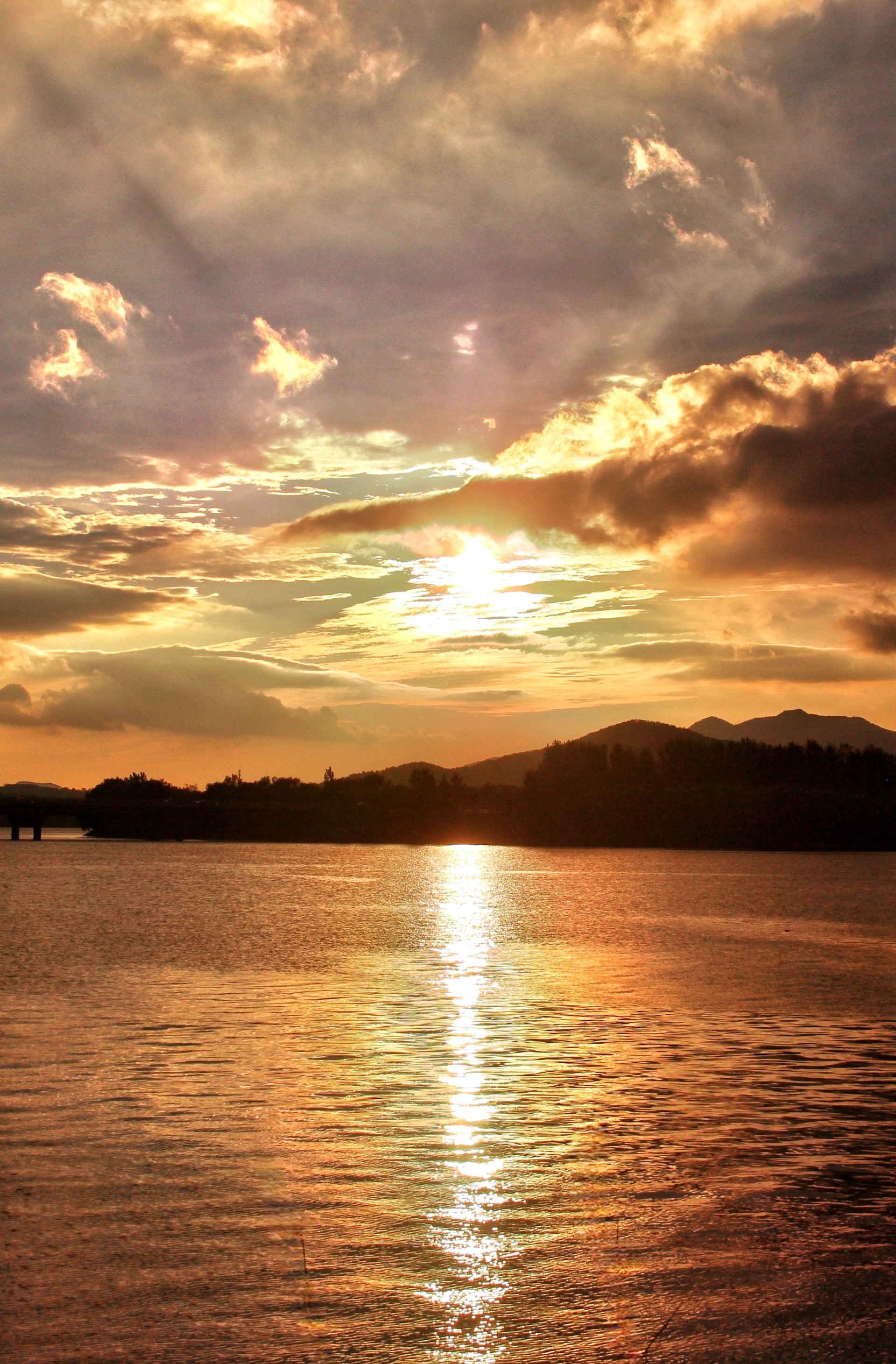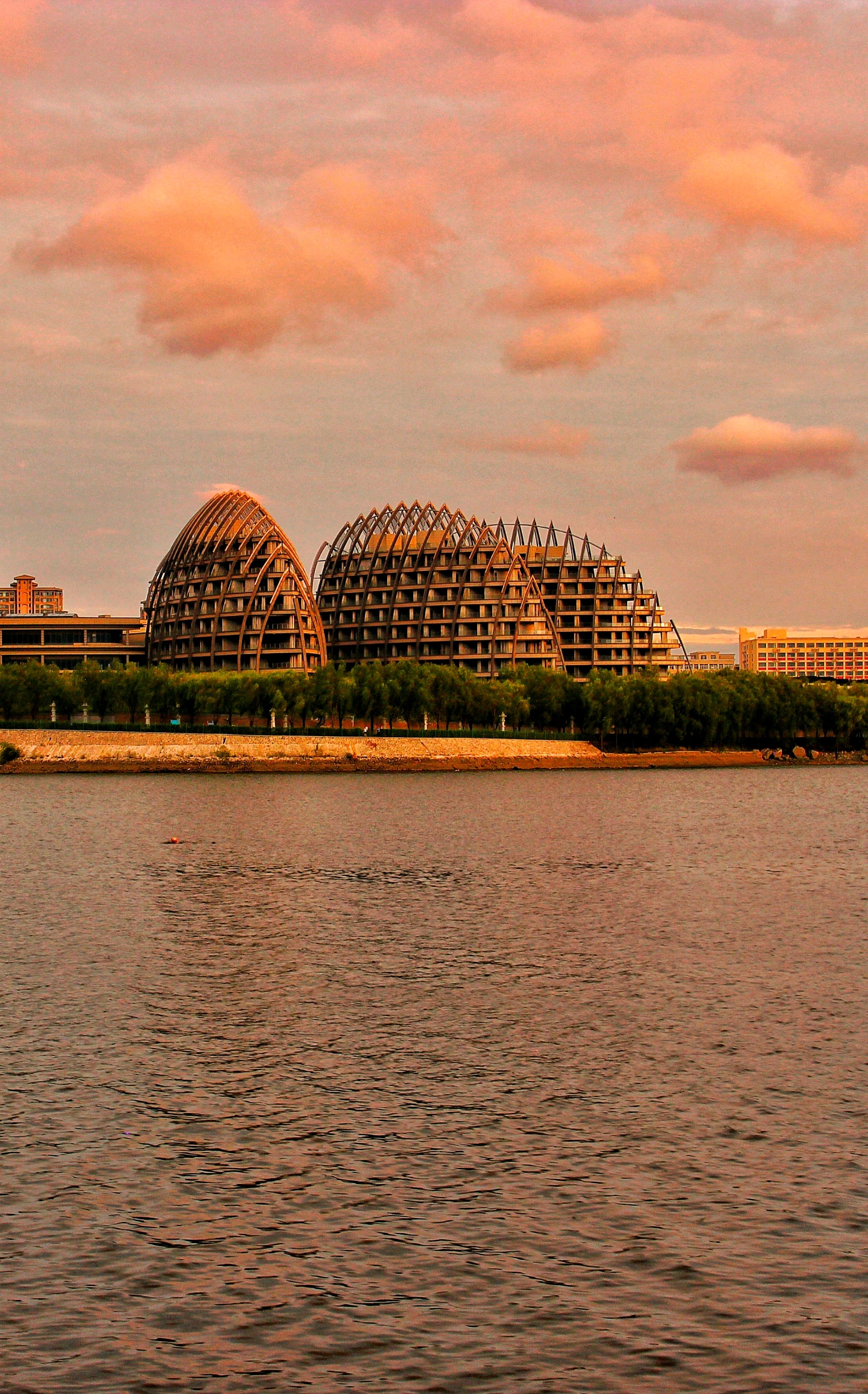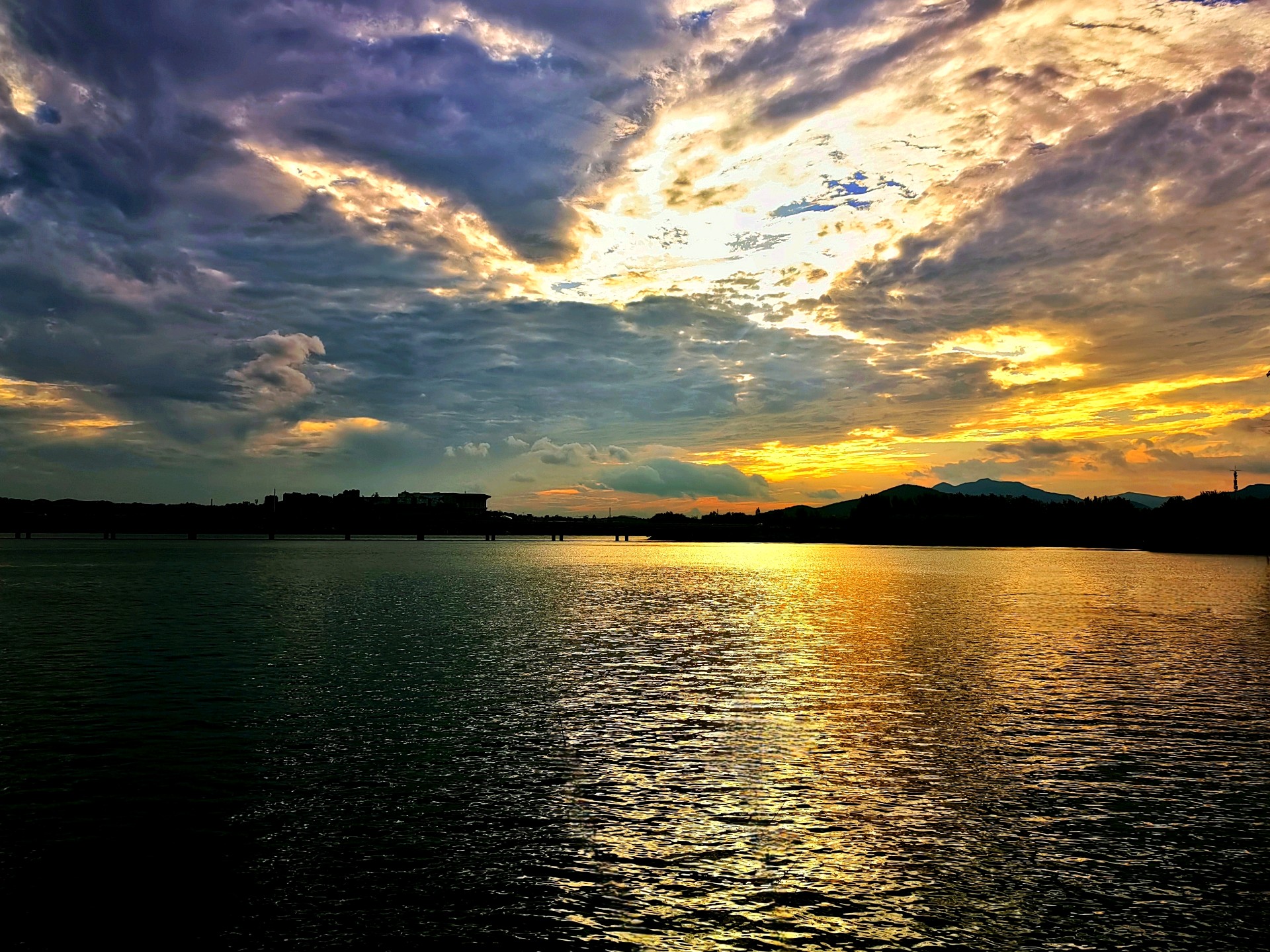 夕阳余晖,彩霞满天,湖畔佳人,静享时光。