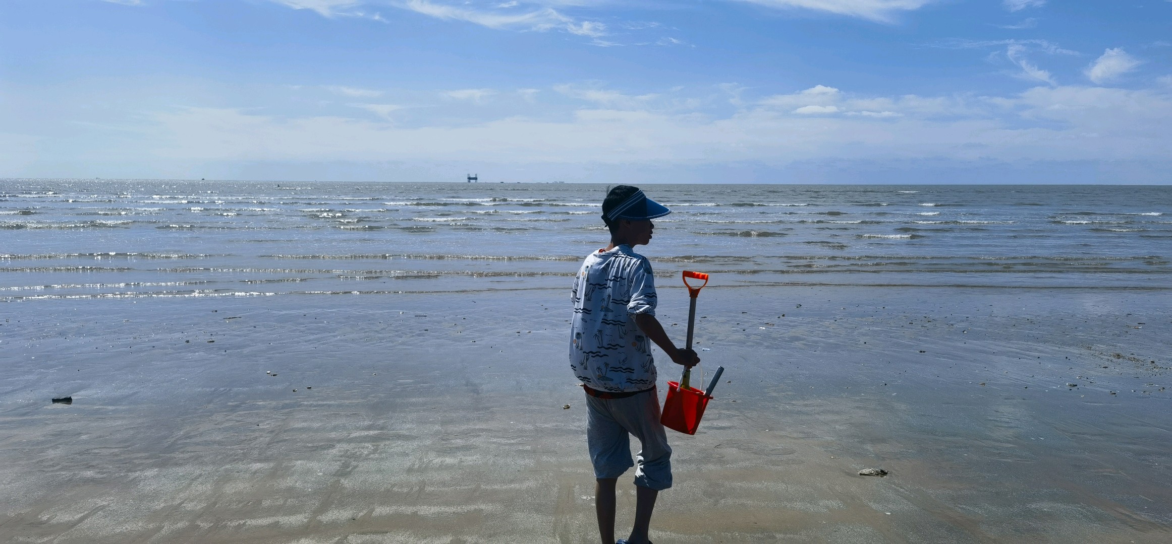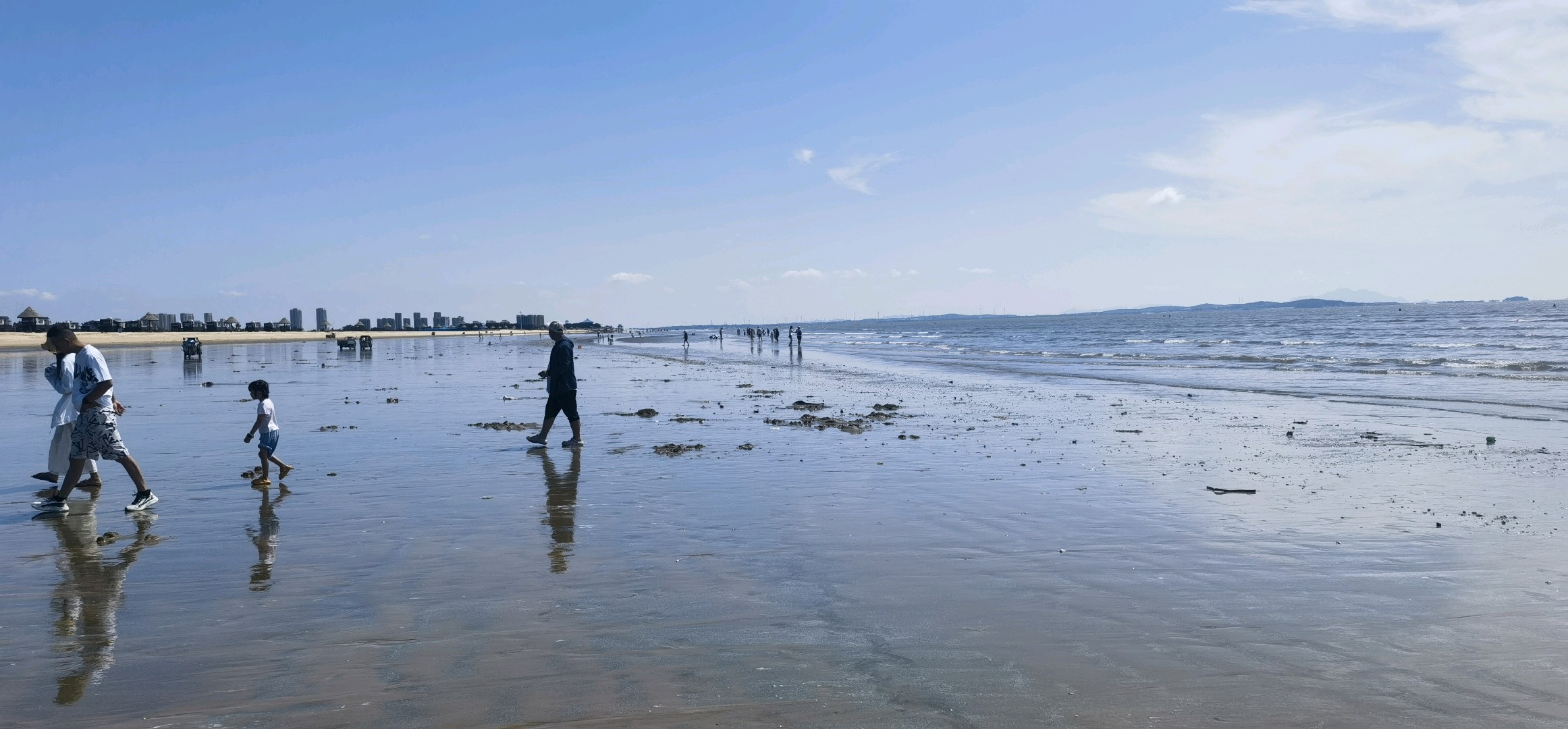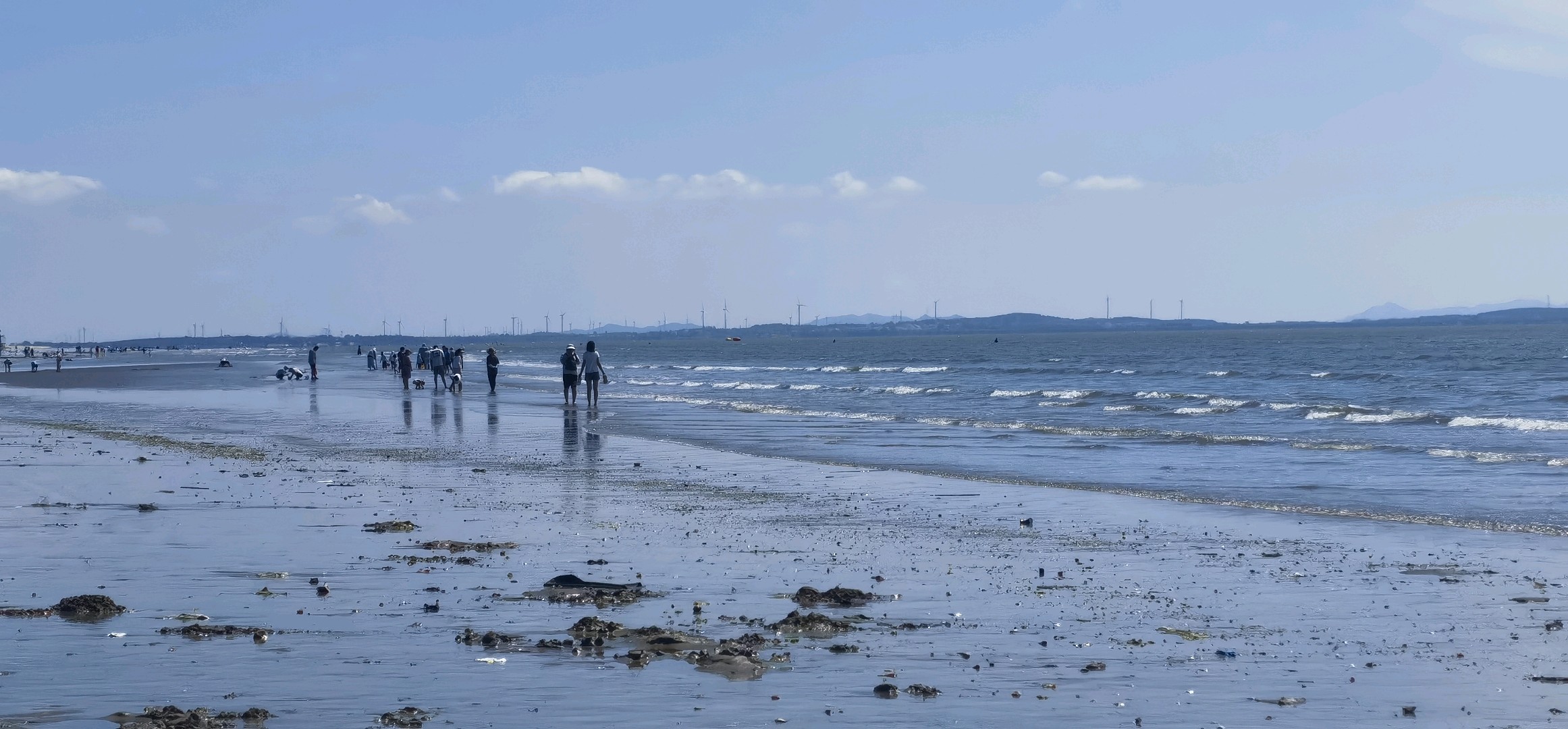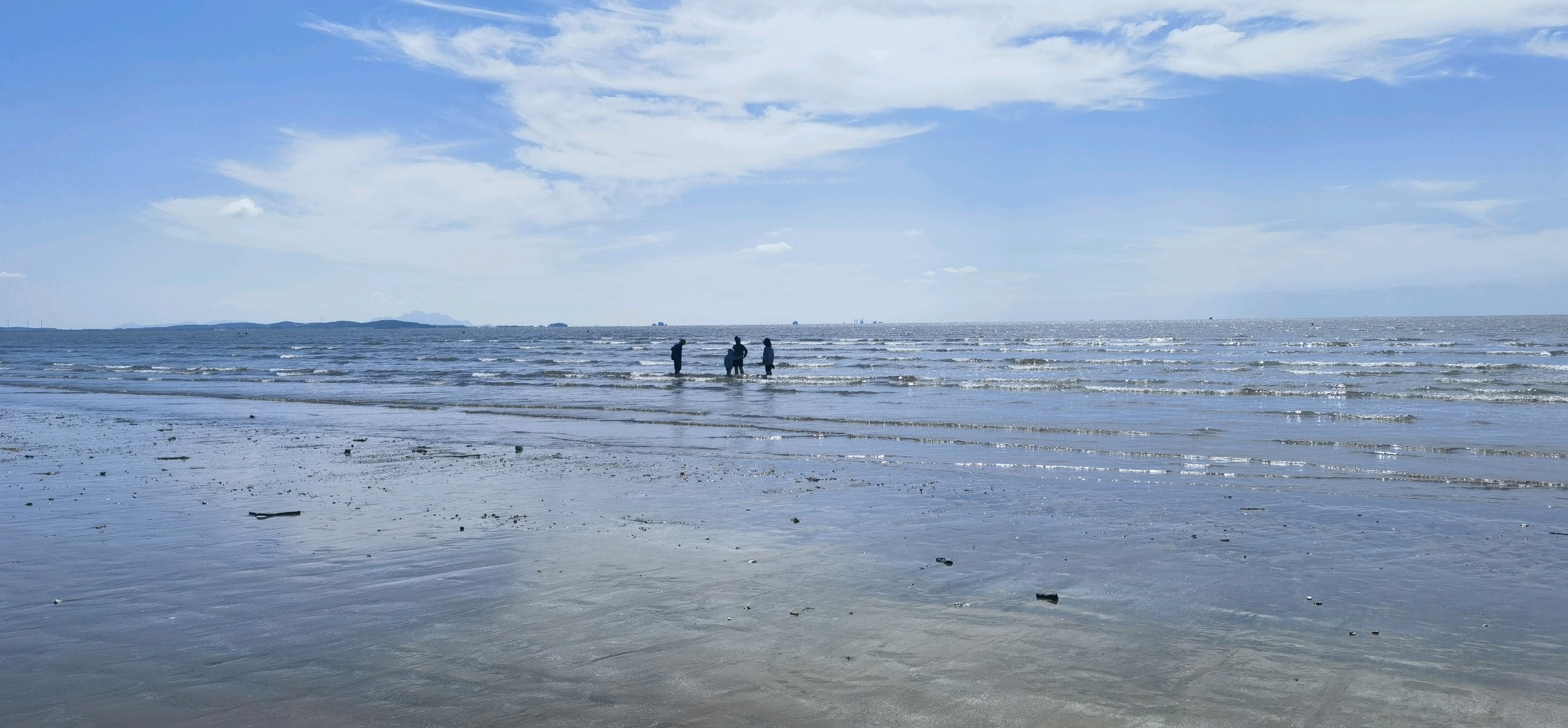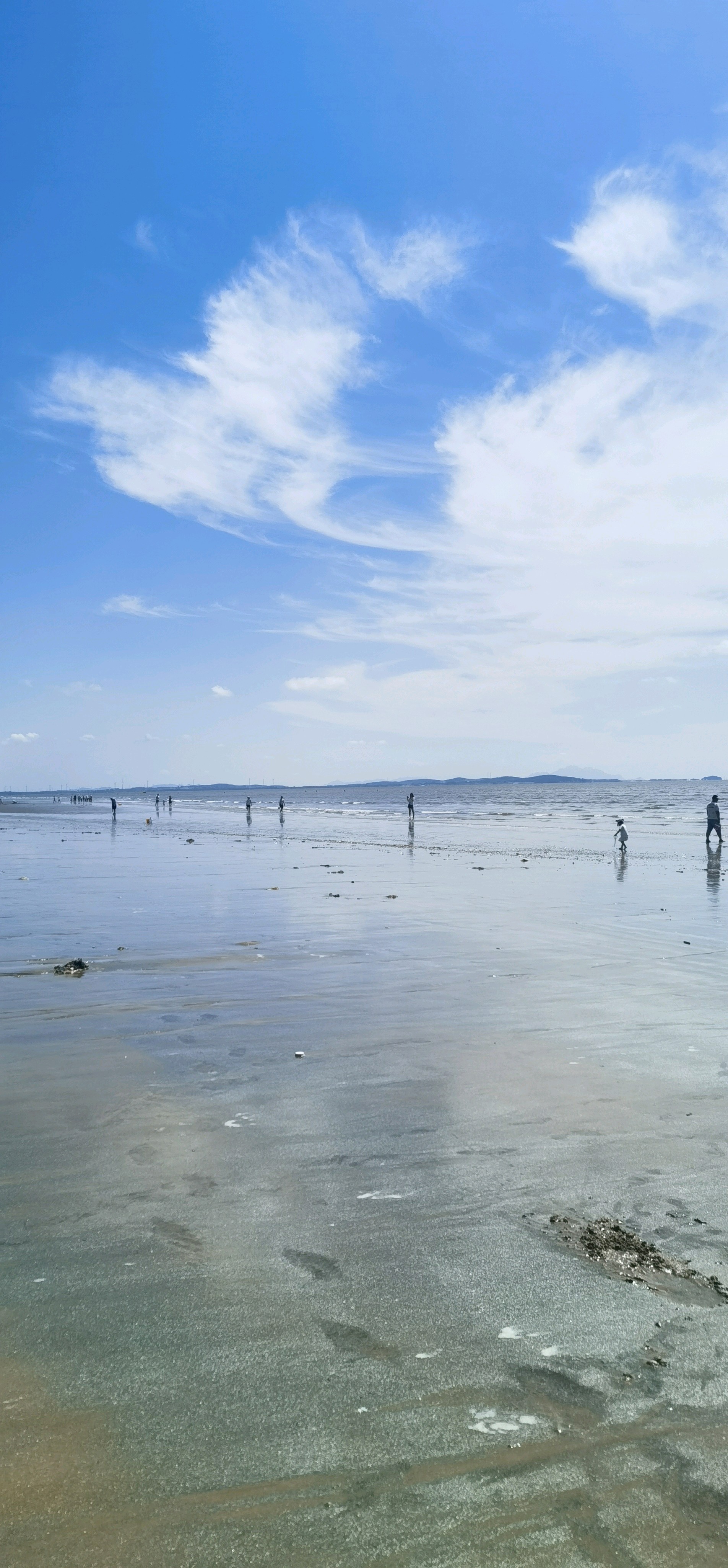 潮退海滩宽,人稀云淡远。威海南海新区海边沙滩开启夏秋交接季,海水是温暖的,风是凉爽的,只有太阳依然火热。