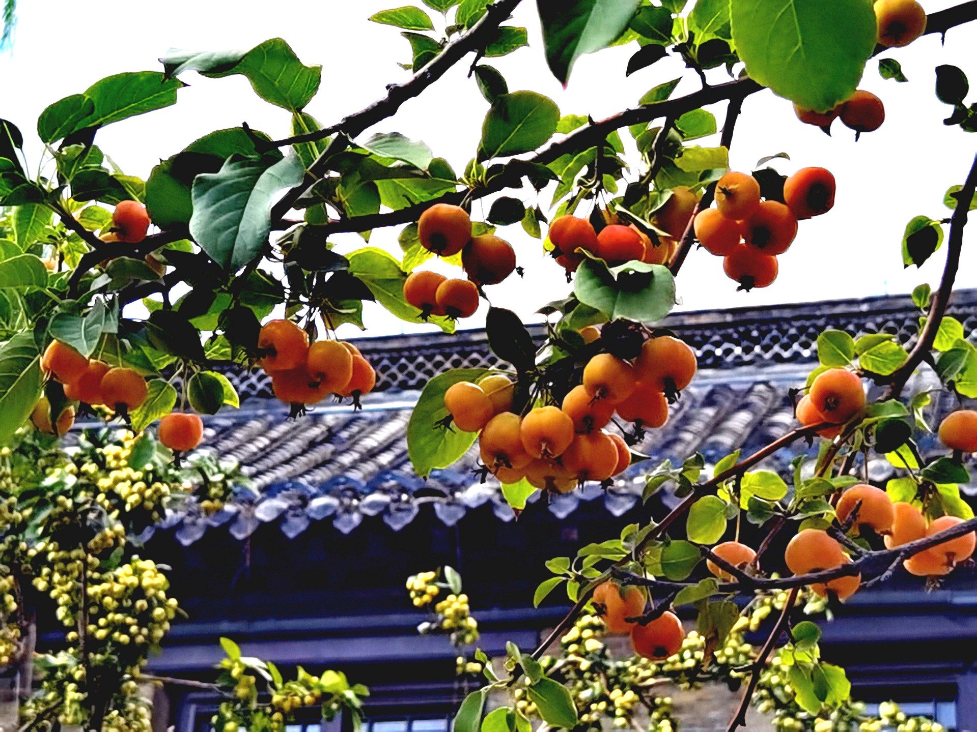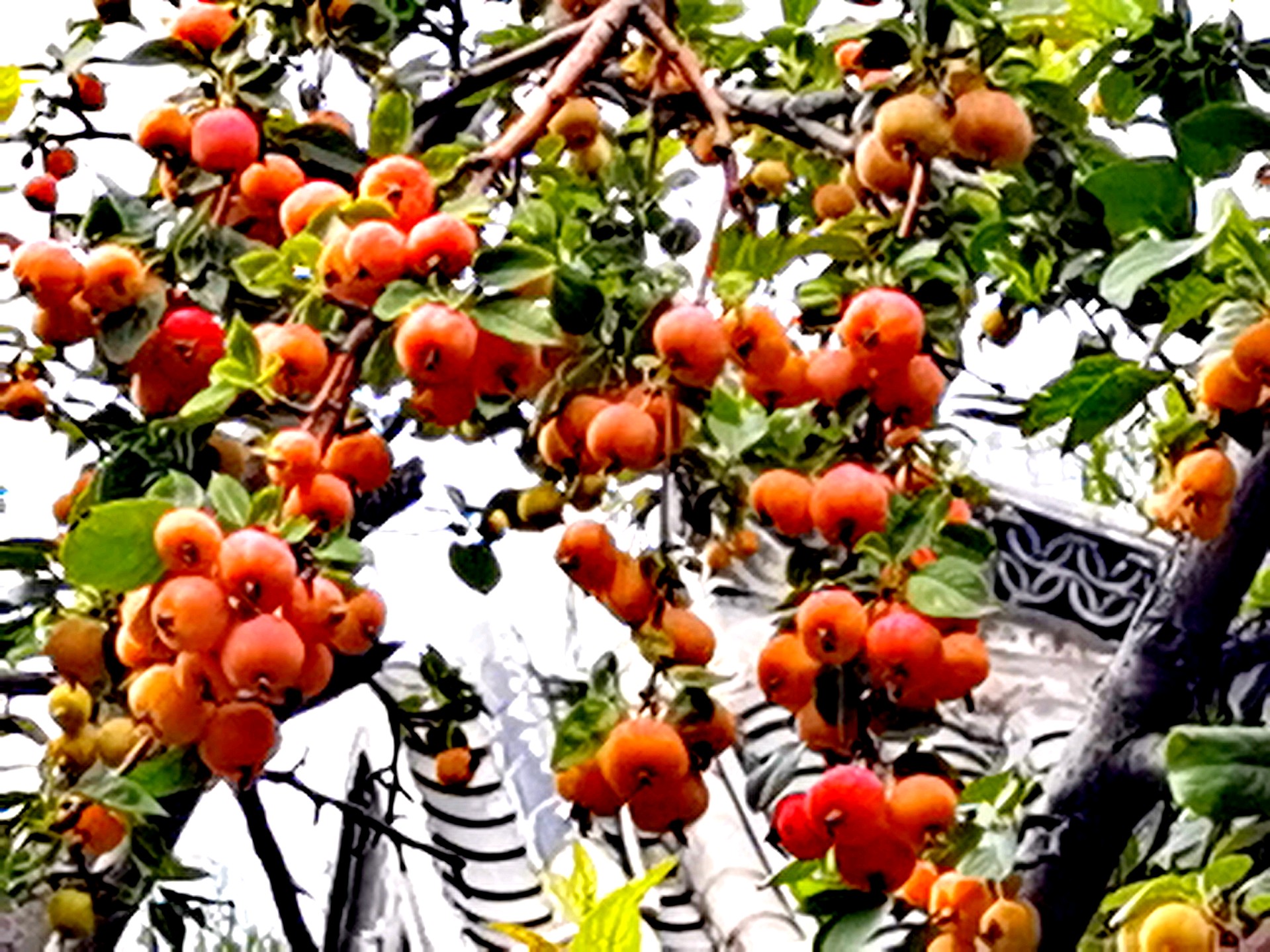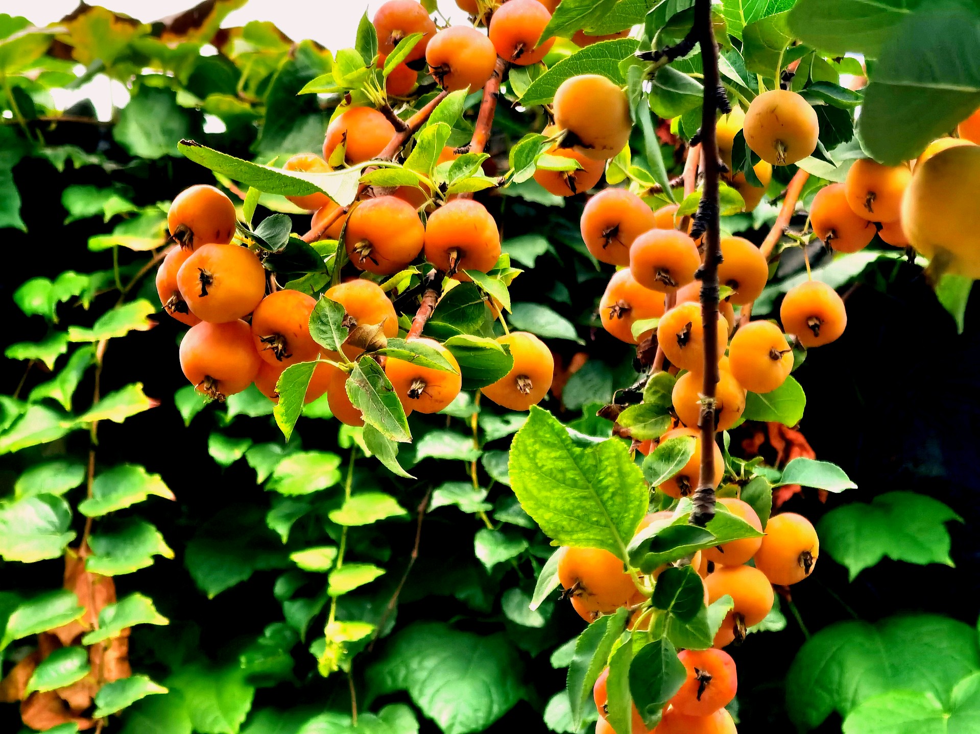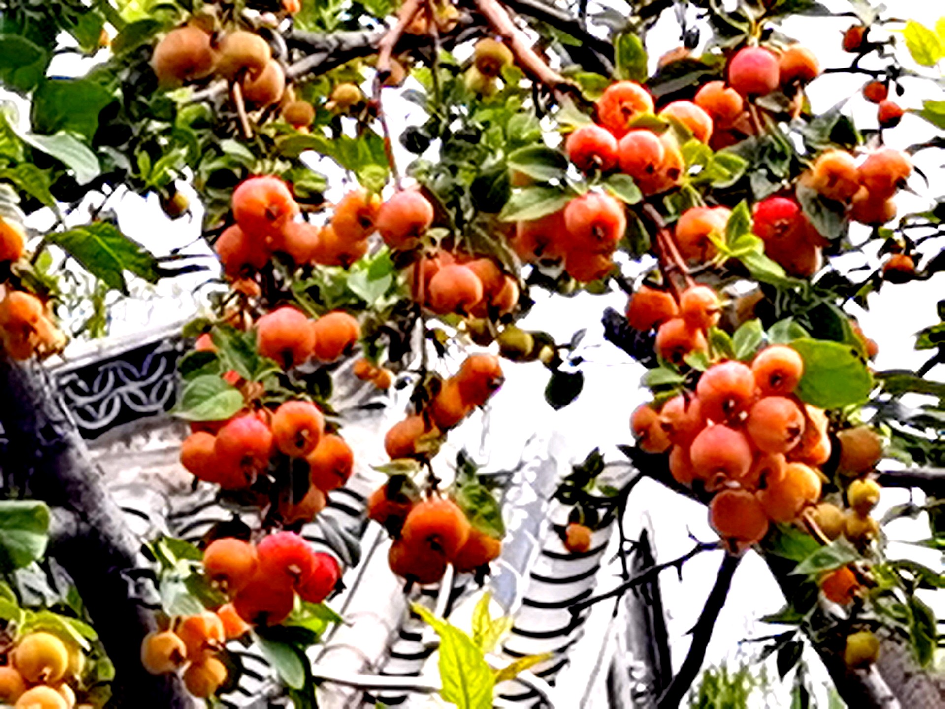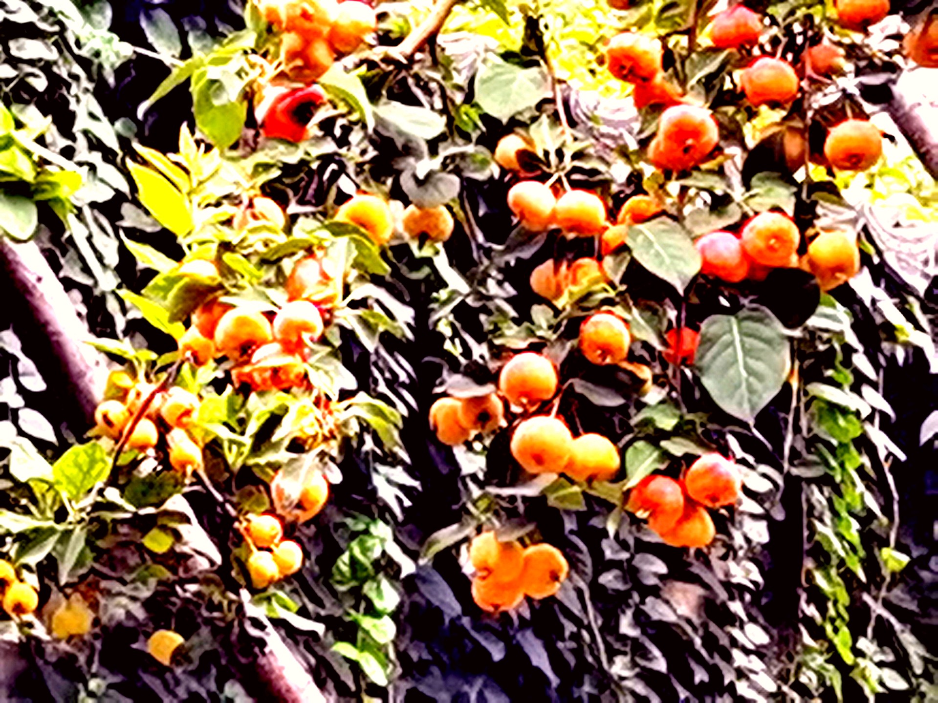 一棵挂满橙黄色小果实的树,果实累累,压弯了树枝。我写的文案如下: