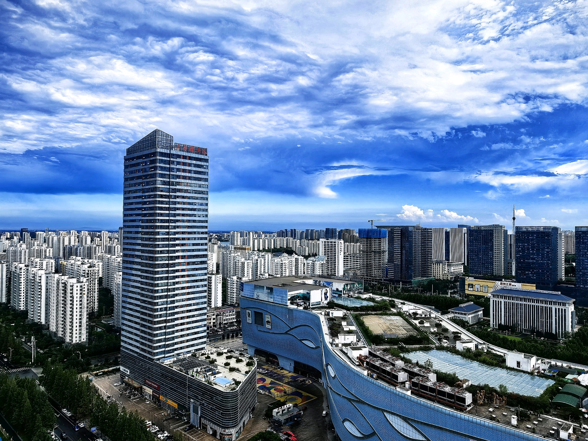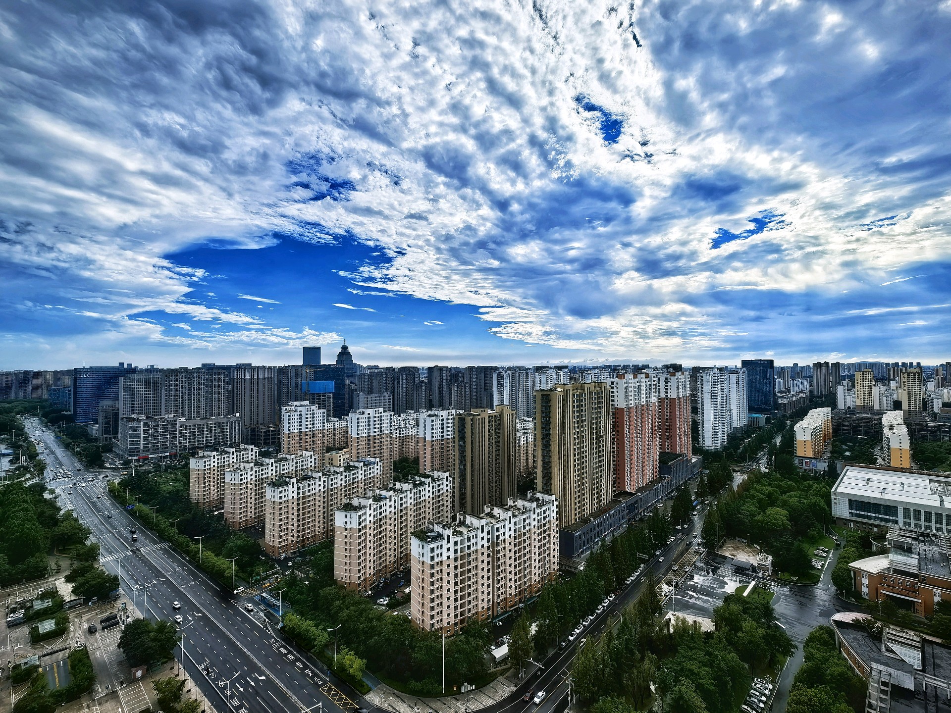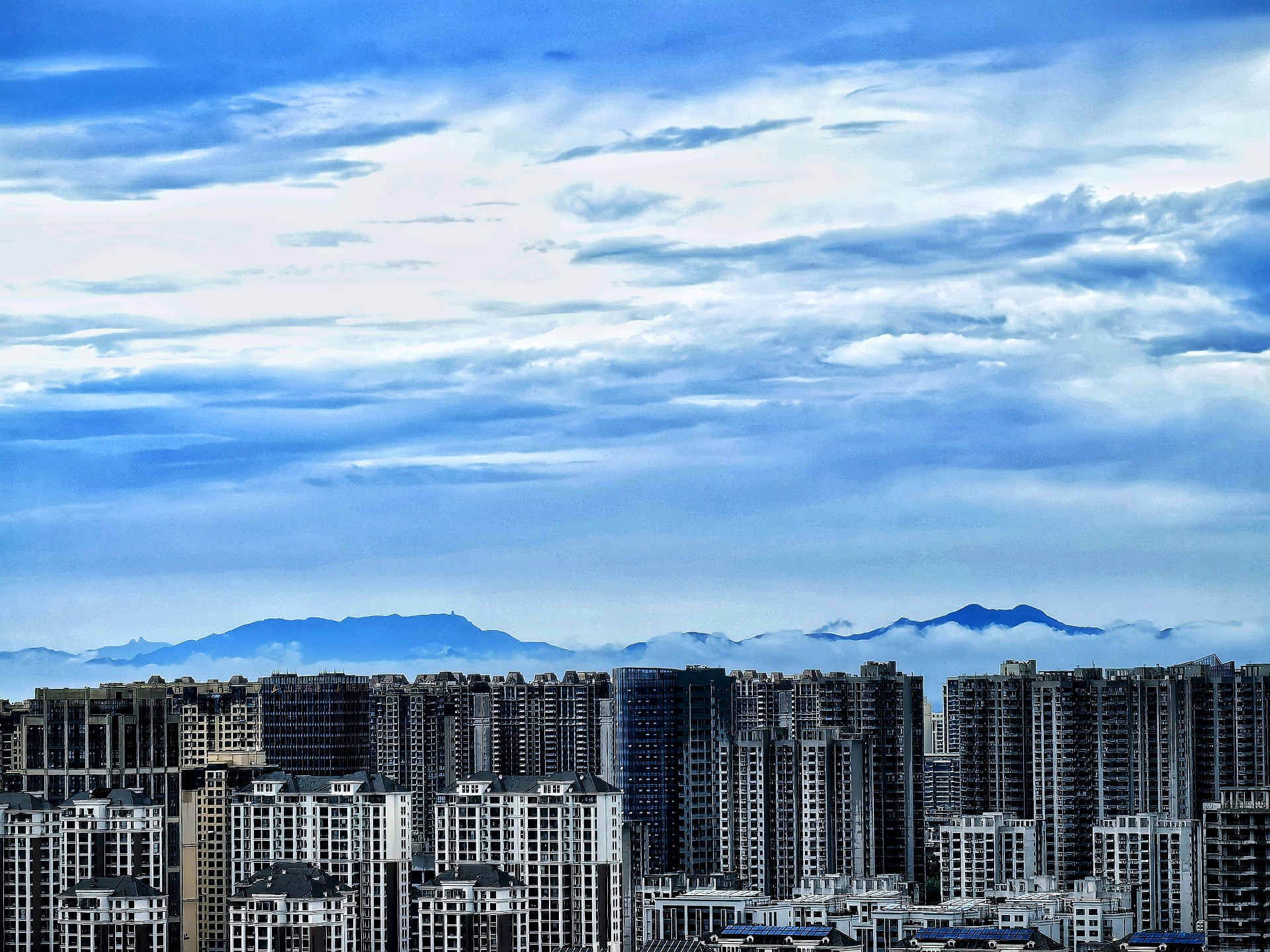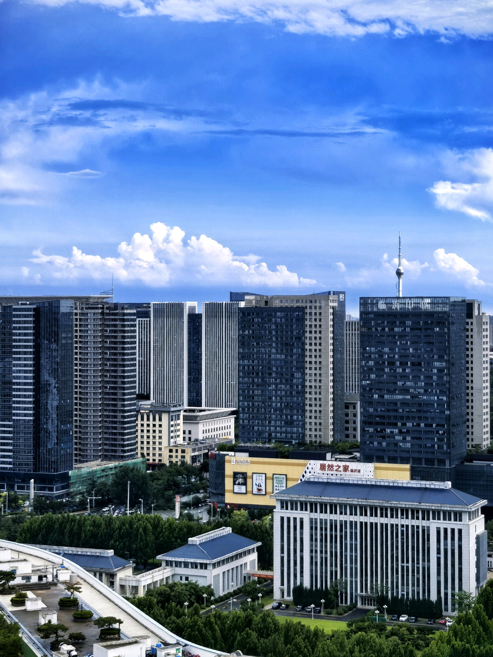 雨后的临沂,蓝天白云,空气清新。真是“城市轮廓云端现,高楼耸立触蓝天”。