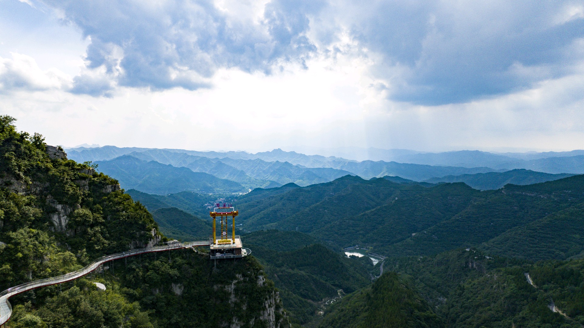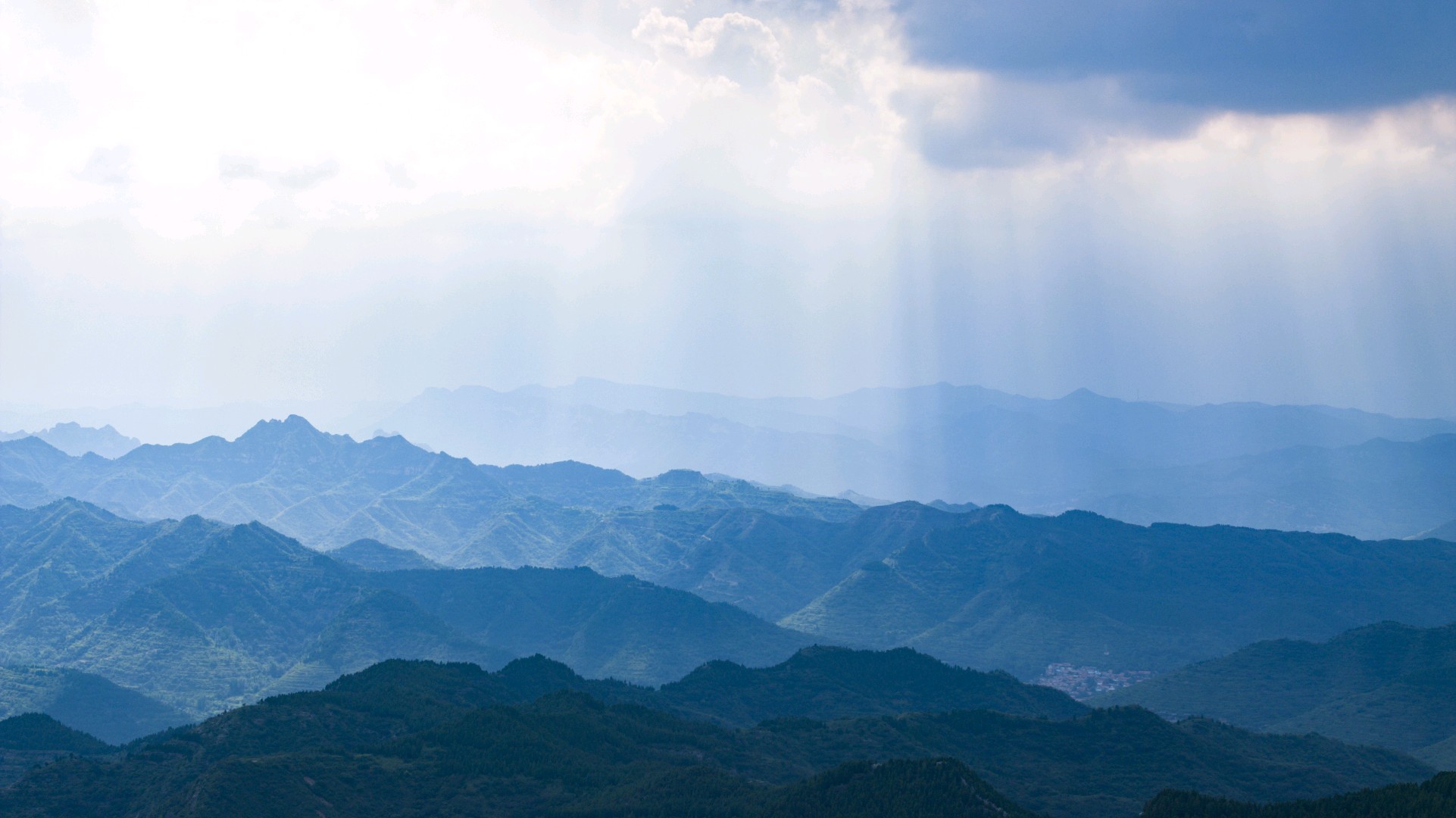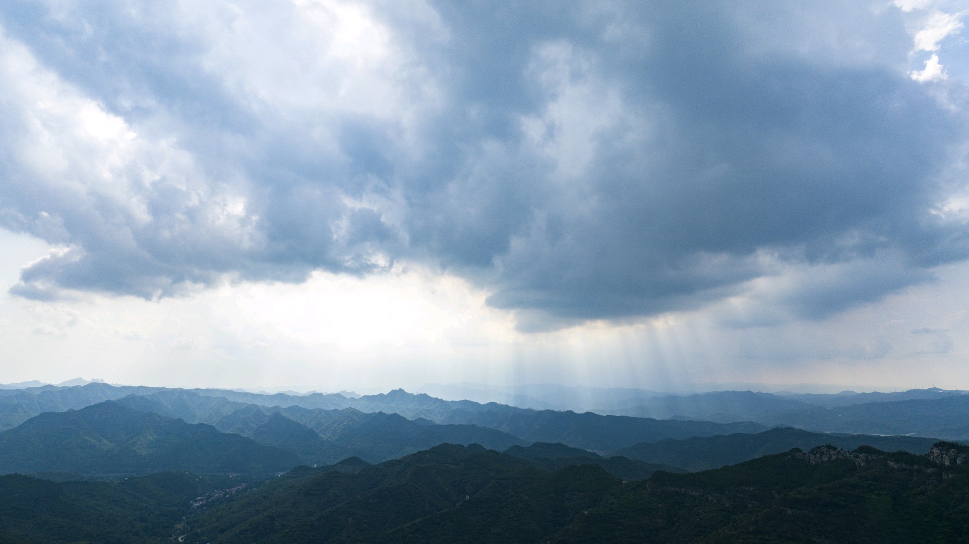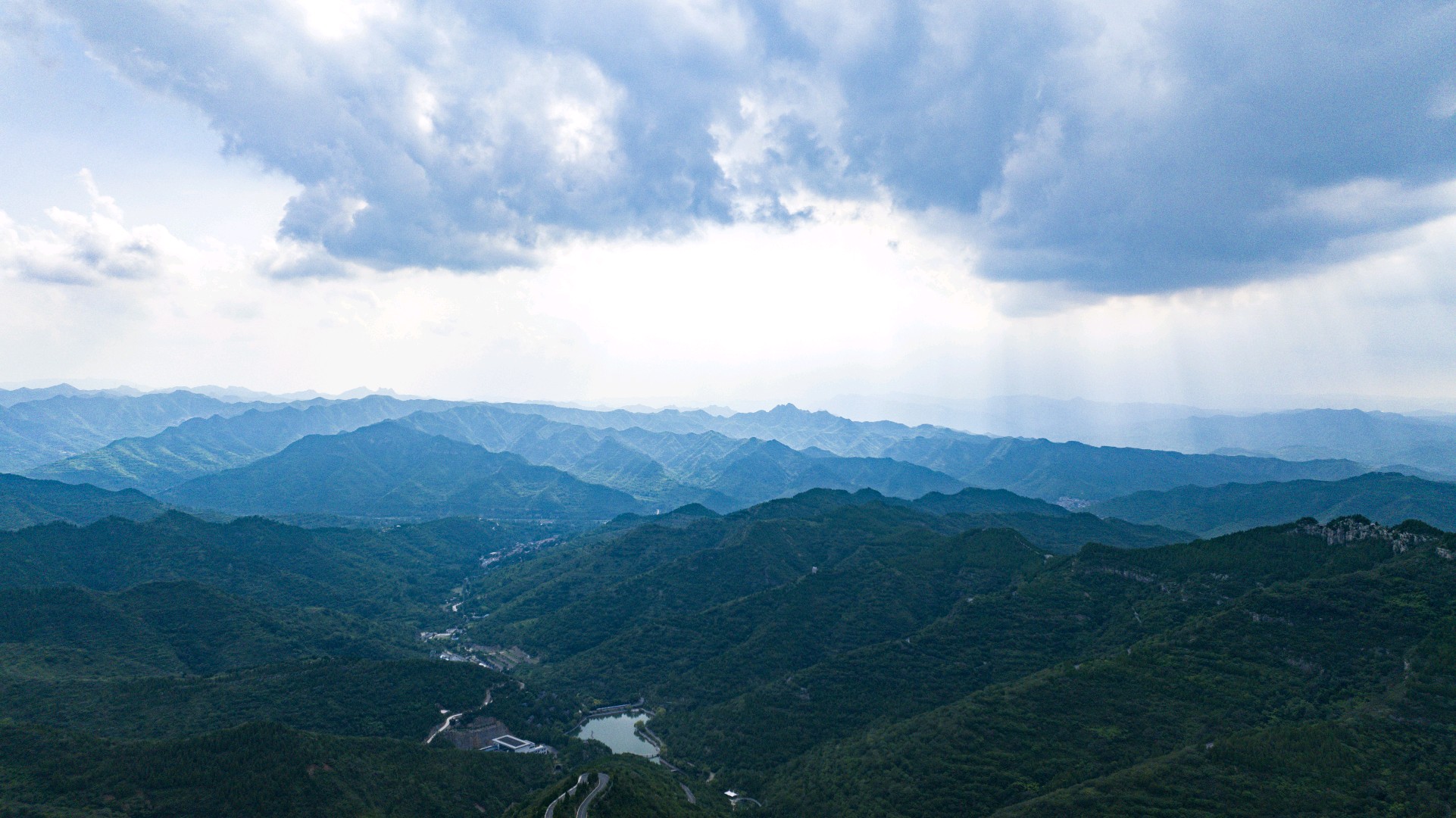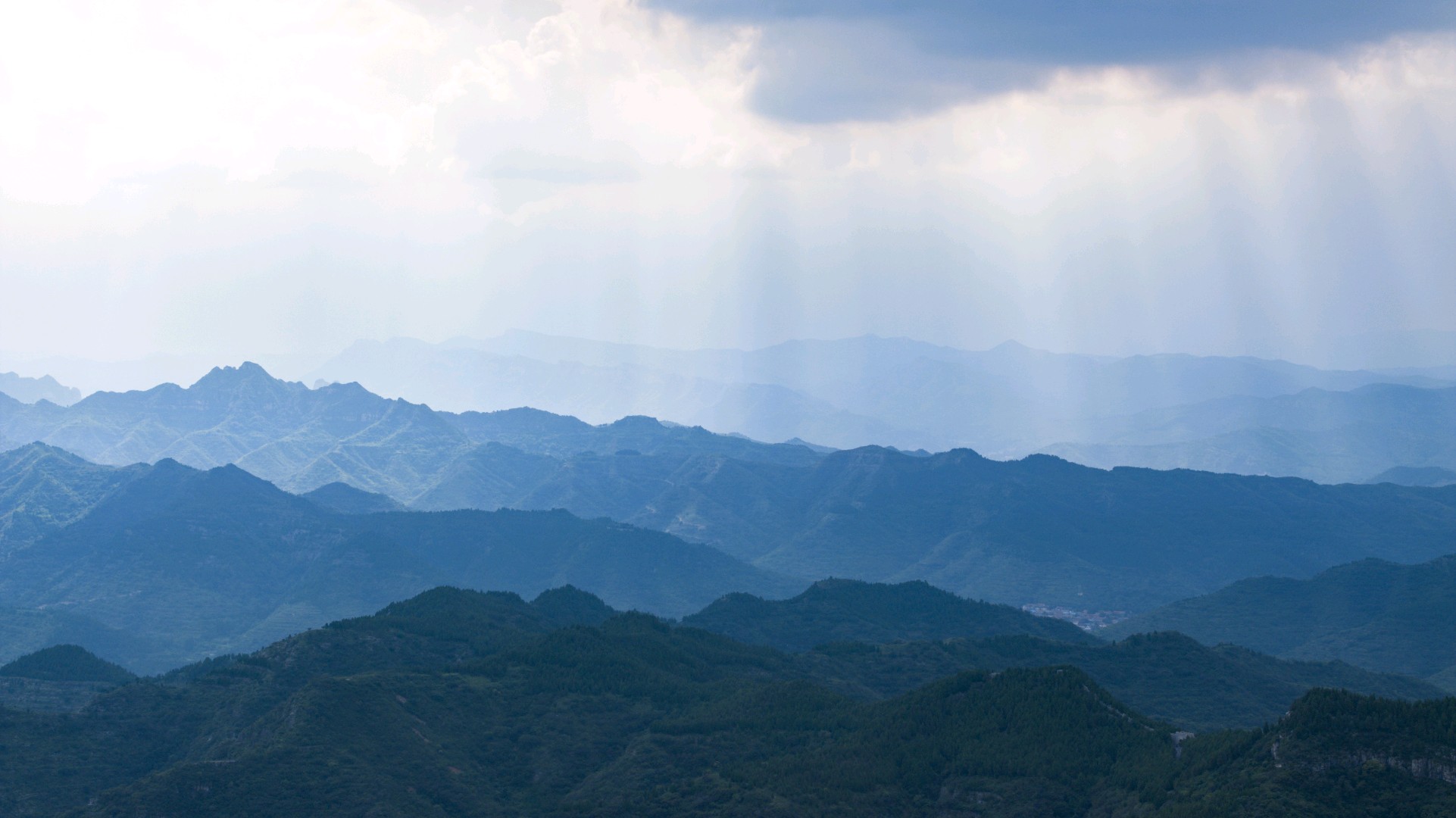 8月15日,山东淄博,潭溪山现丁达尔效应。