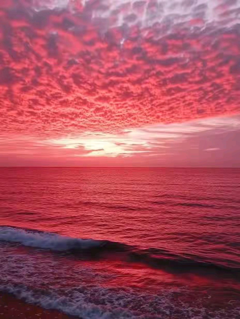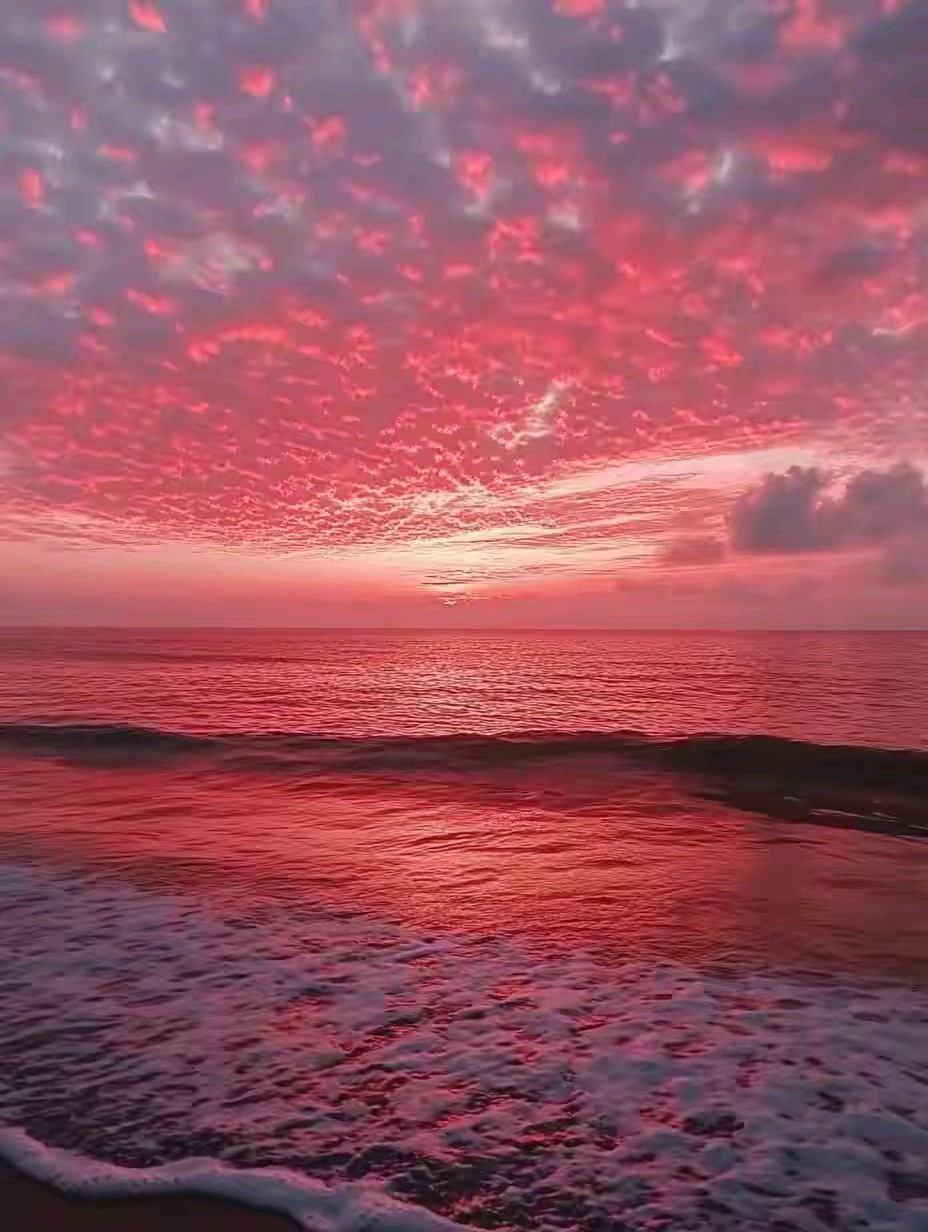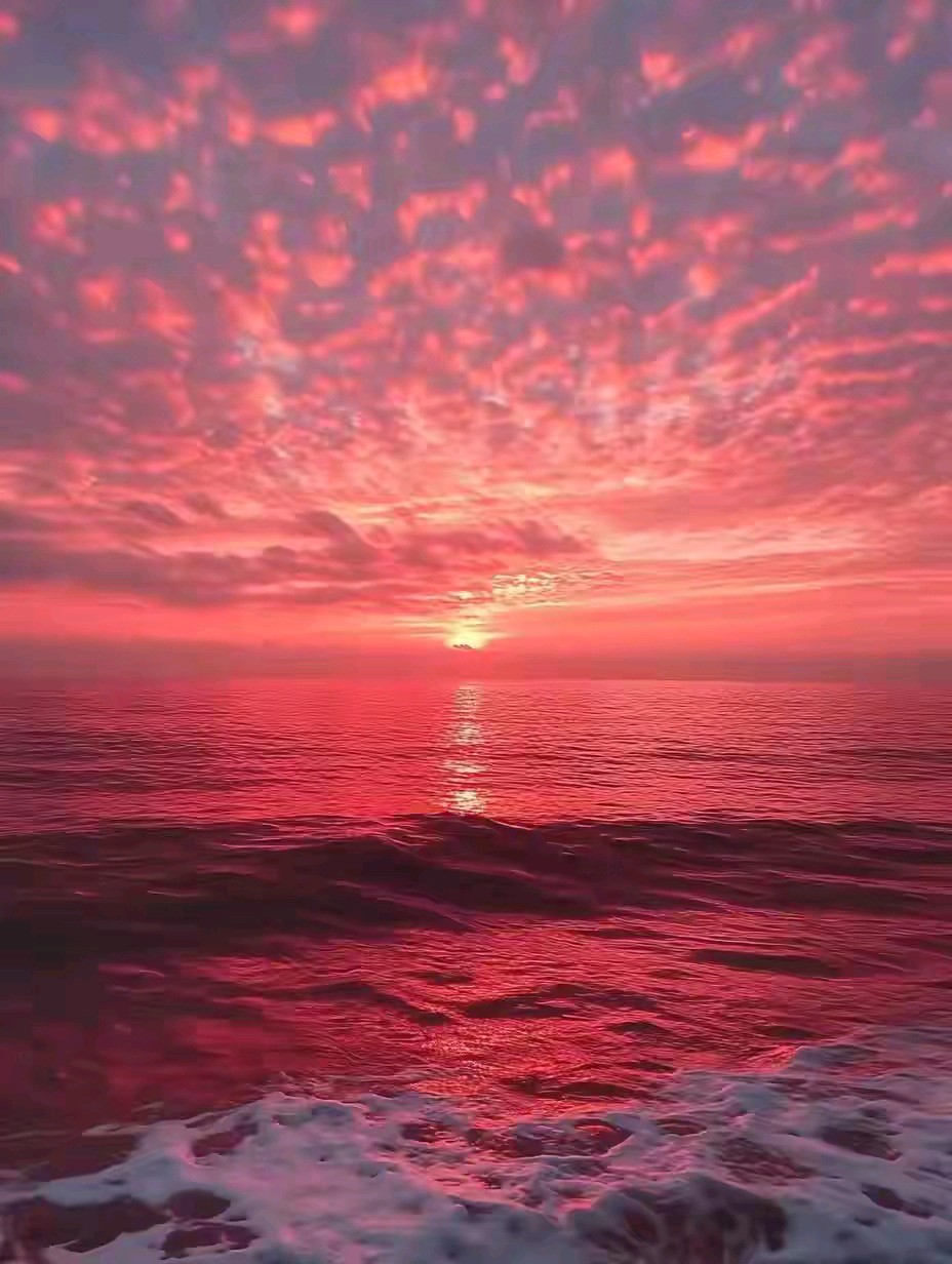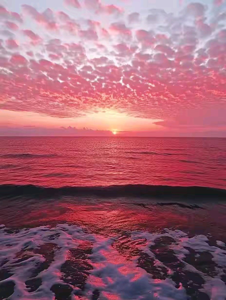 夕阳下的海滩如诗如画,粉红的海滩与绚丽的夕阳相映成趣,美得令人陶醉。余晖洒满红叶,水边静享这绝美的晚霞时光,让人流连忘返