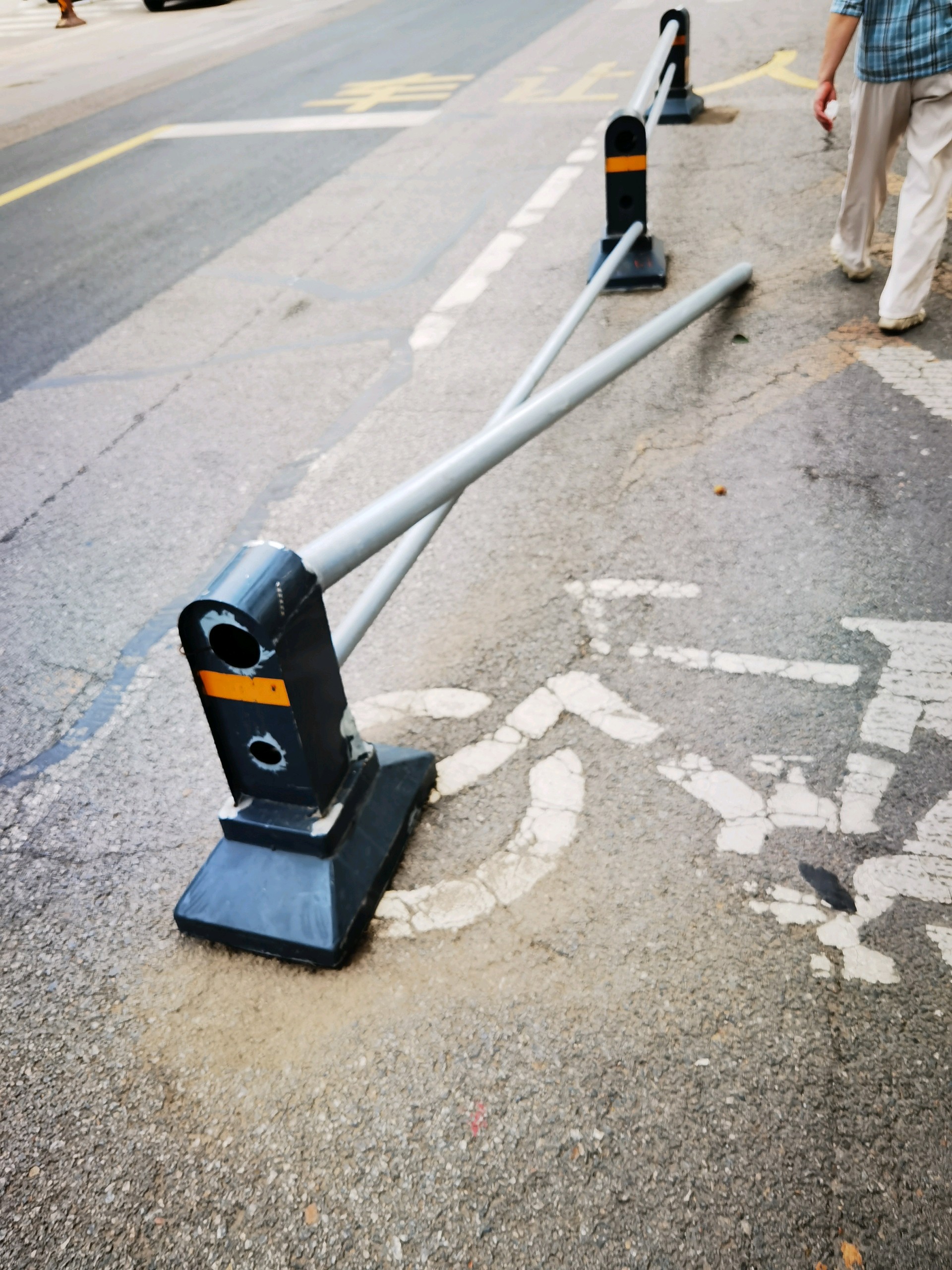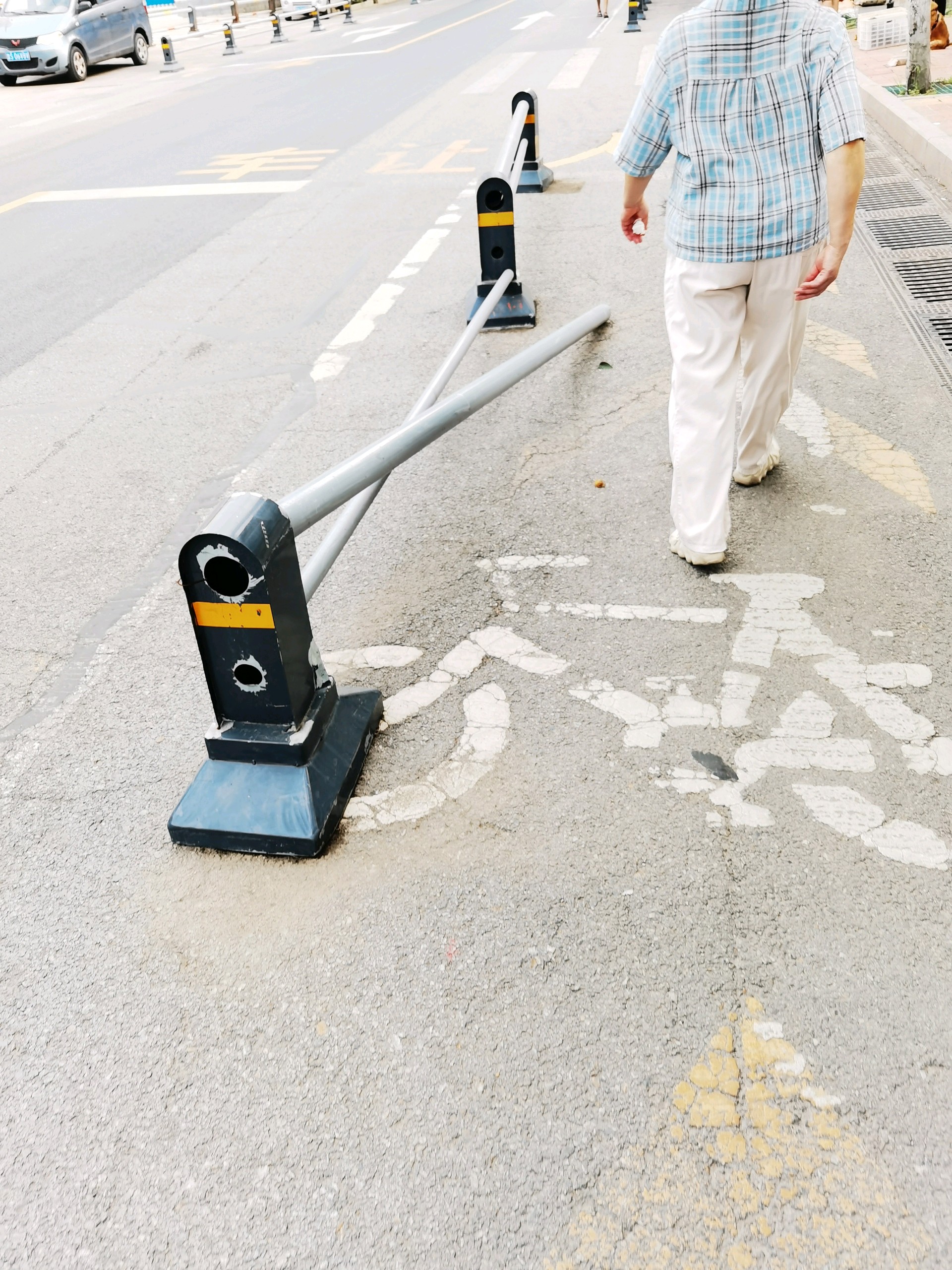 济南市市中区这里的交通隔离栏倒了……8月20日上午,在济南市市中区七里山西路南口附近看到,七里山西路东侧的交通隔离栏倒了,影响通行,也给车辆行人带来安全隐患。这段路上的交通隔离栏经常歪倒或“散架”变形,希望有关部门综合治理一下,避免交通隔离栏歪倒变形,带来不必要的交通安全隐患。