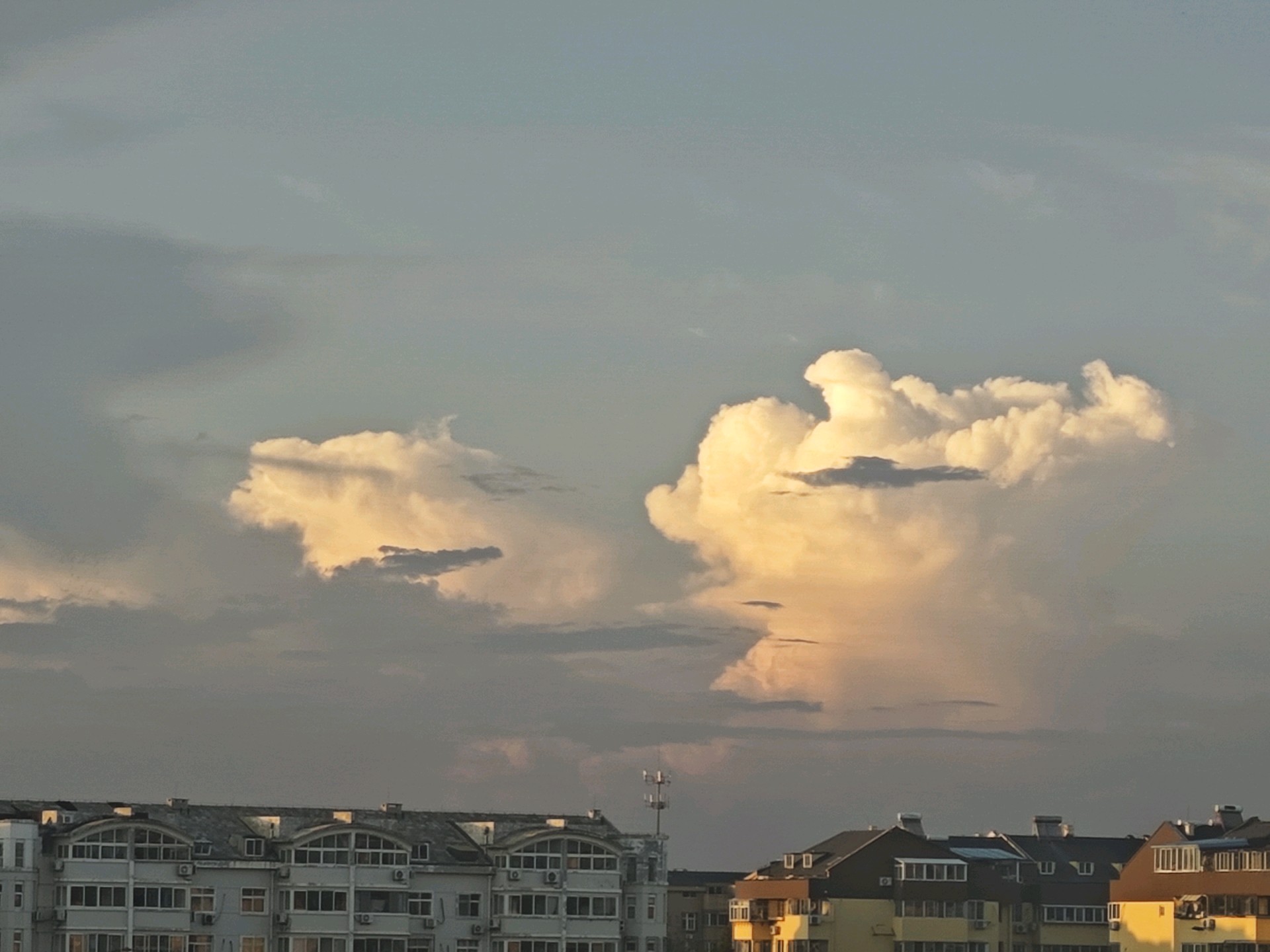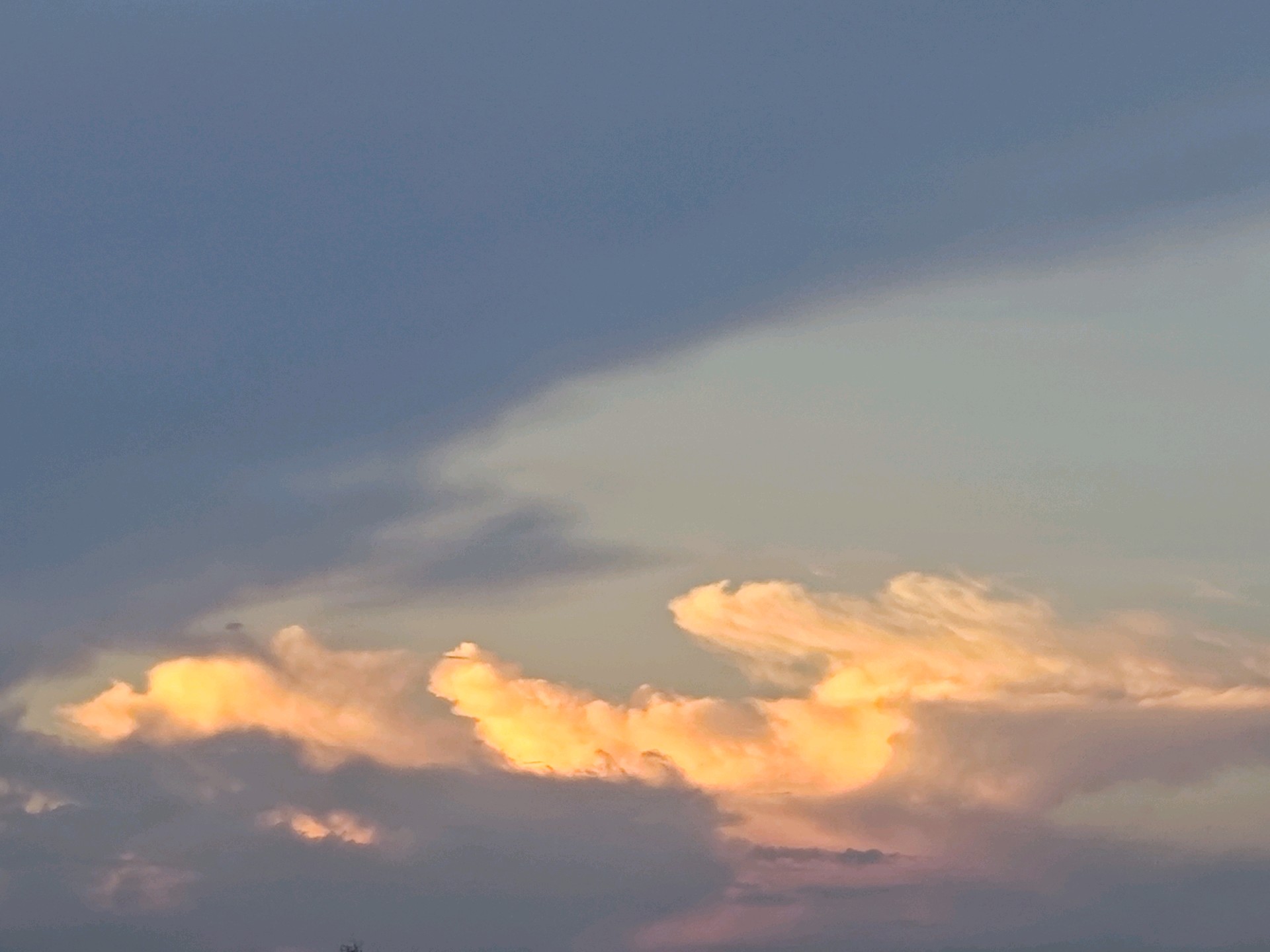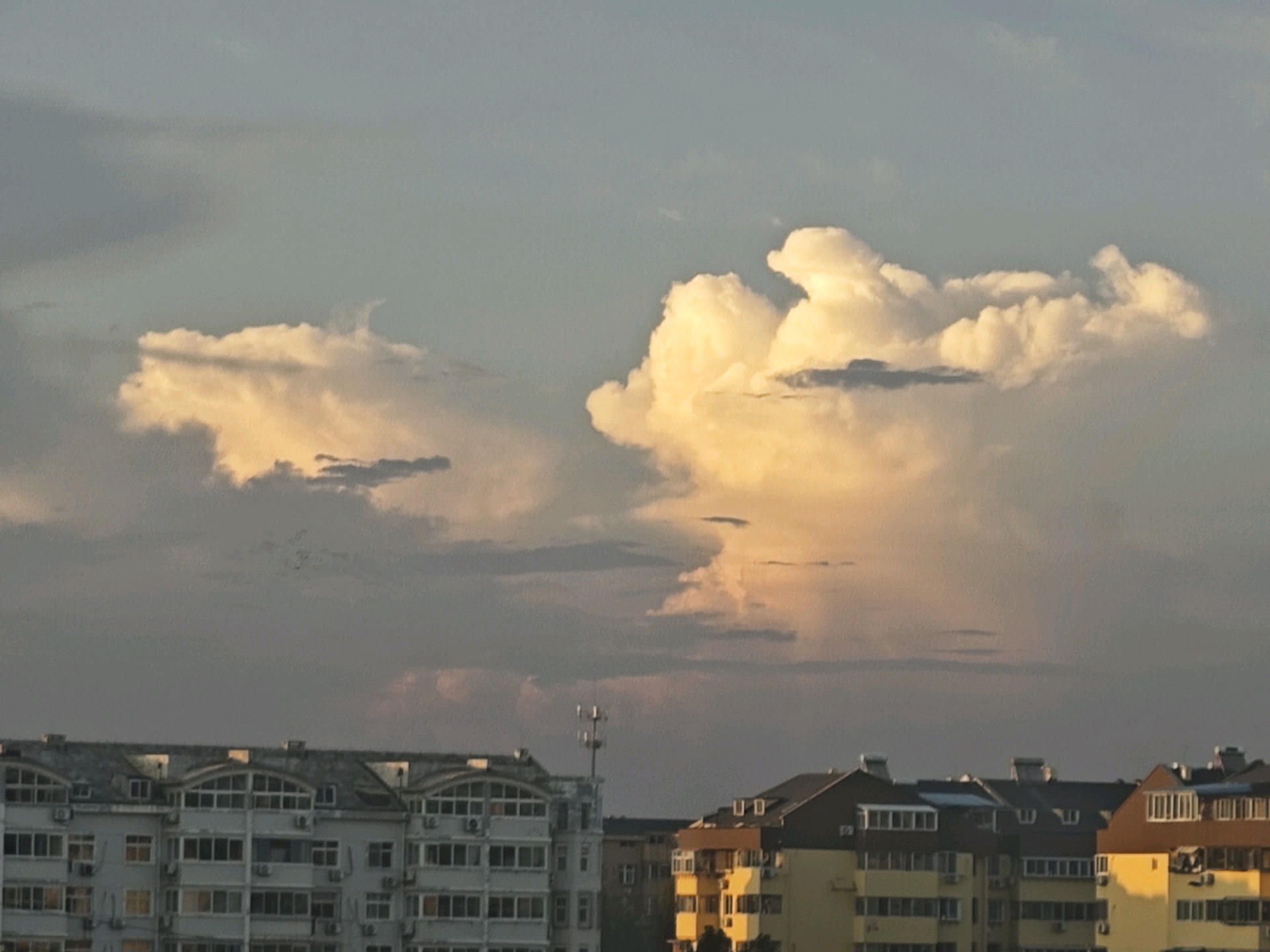 蓝天白云,云朵绵延,像棉花糖般柔软。阳光洒下,金光熠熠,让人心旷神怡。