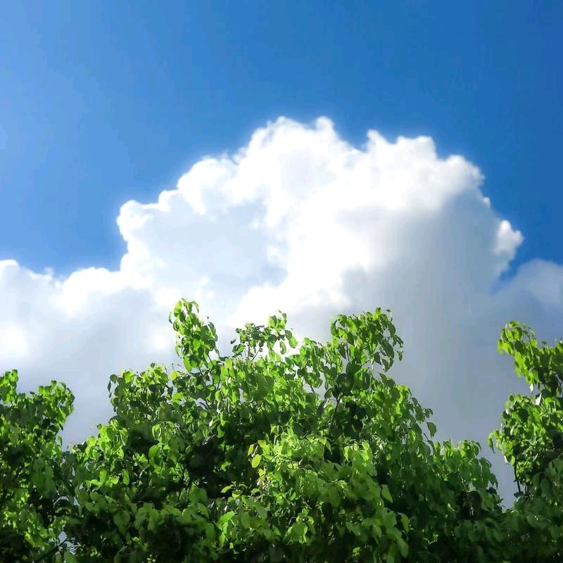 蓝天白云,绿树成荫,阳光透过树叶洒下斑驳的影子,微风拂过,树叶轻轻摇曳,仿佛在为大自然奏响一曲美妙的交响乐。