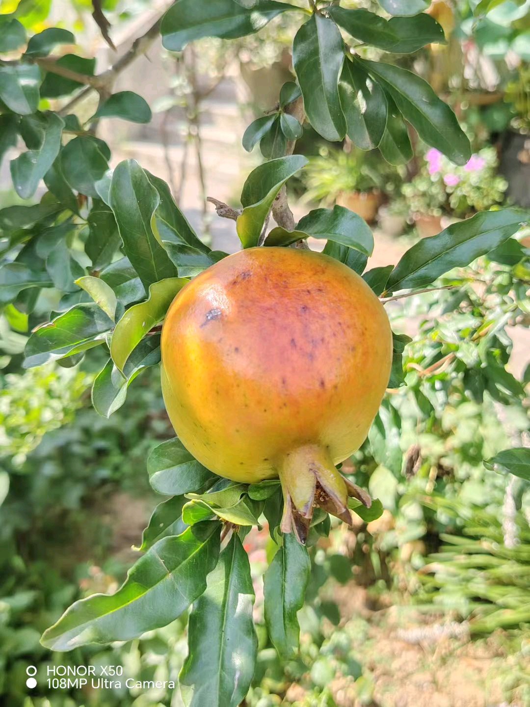 阳光下的石榴,熟透的果实,绿意盎然的叶子,构成了一幅美丽的画卷。🍈🌳