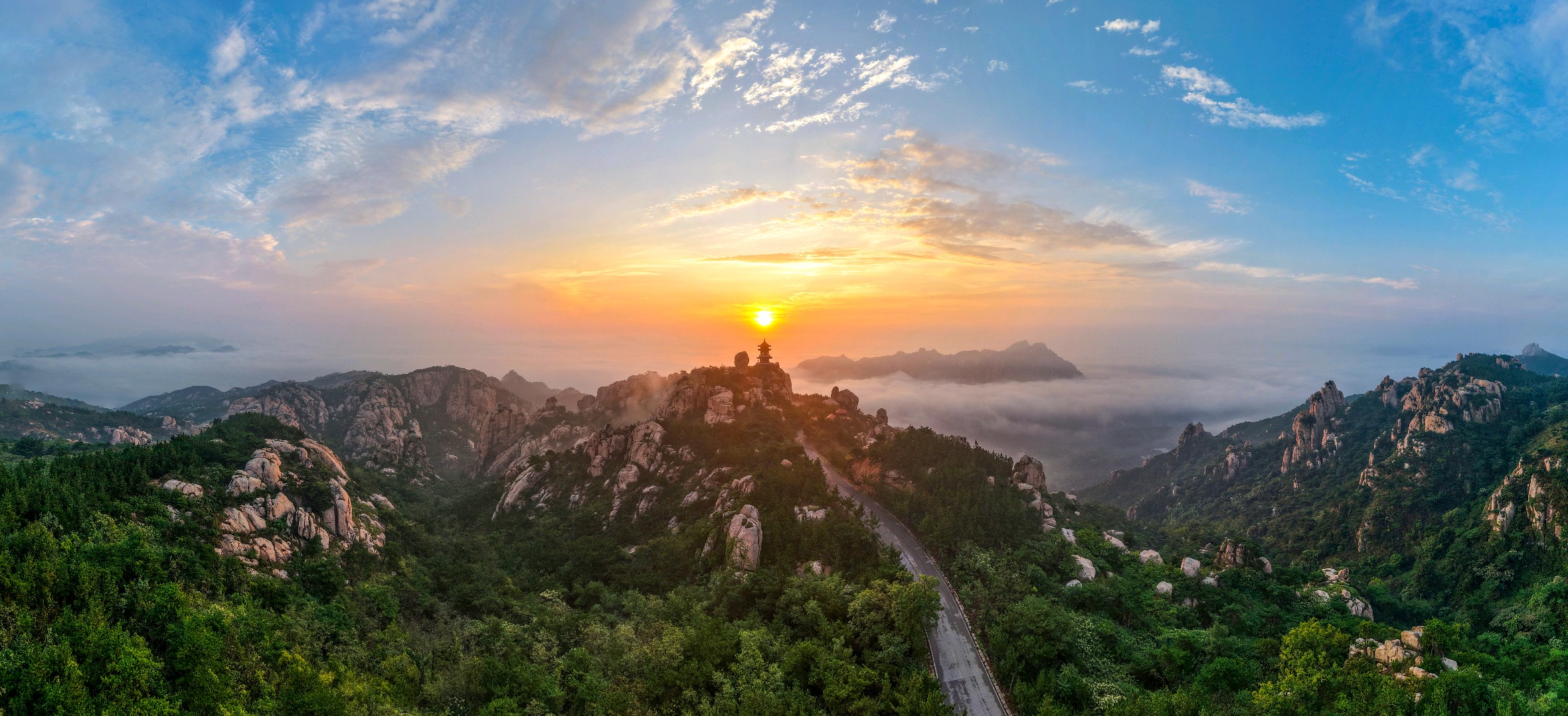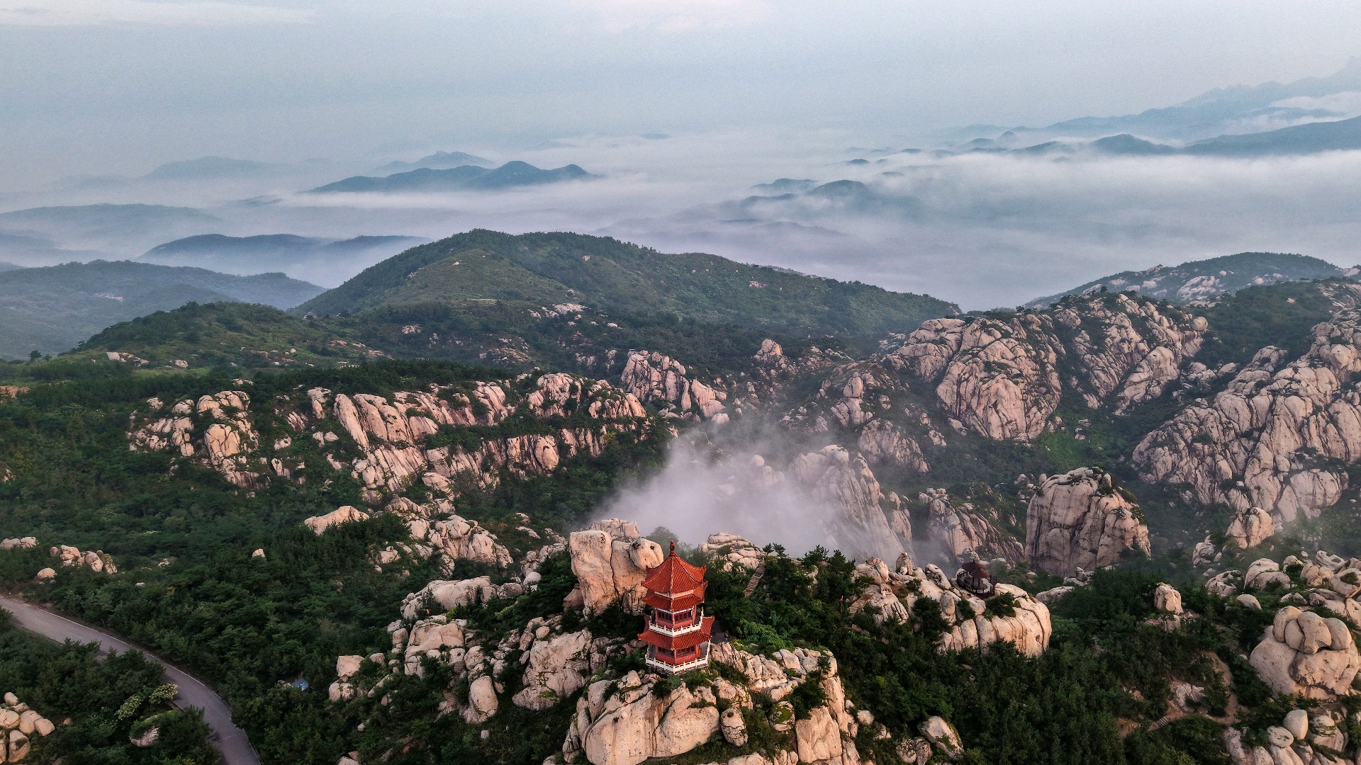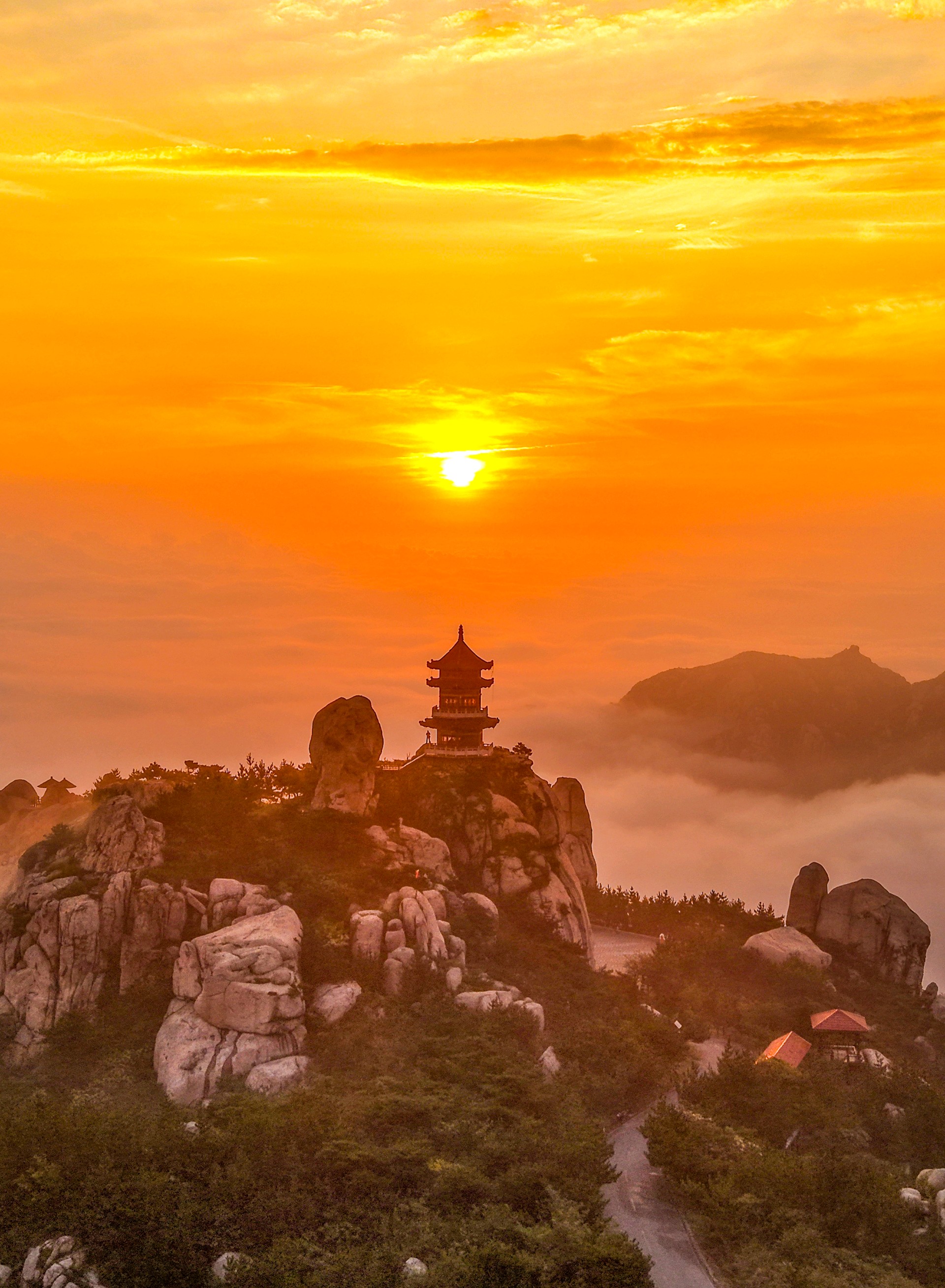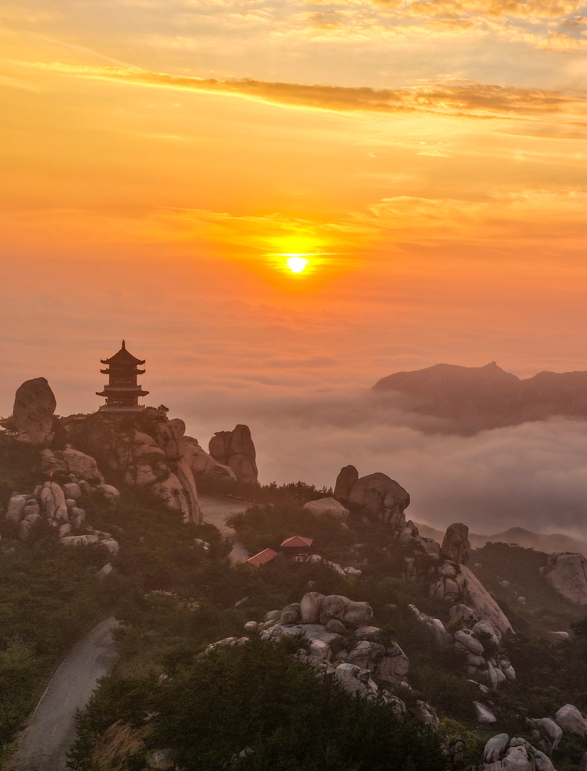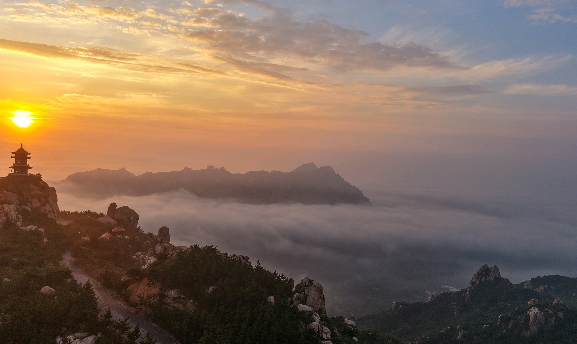 2025年8月30日,山东省日照市五莲县九仙山再现云海奇观 。当日清晨,山峰在云海中若隐若现,云海翻涌变化,宛如一幅水墨画卷 。 随着时间推移,太阳缓缓升起,金色的阳光穿透云层,洒在云海之上,朝霞为云瀑镀上金边,松影在晨雾中若隐若现,整个仙境仿佛在此刻苏醒 ,云海奇观美不胜收。