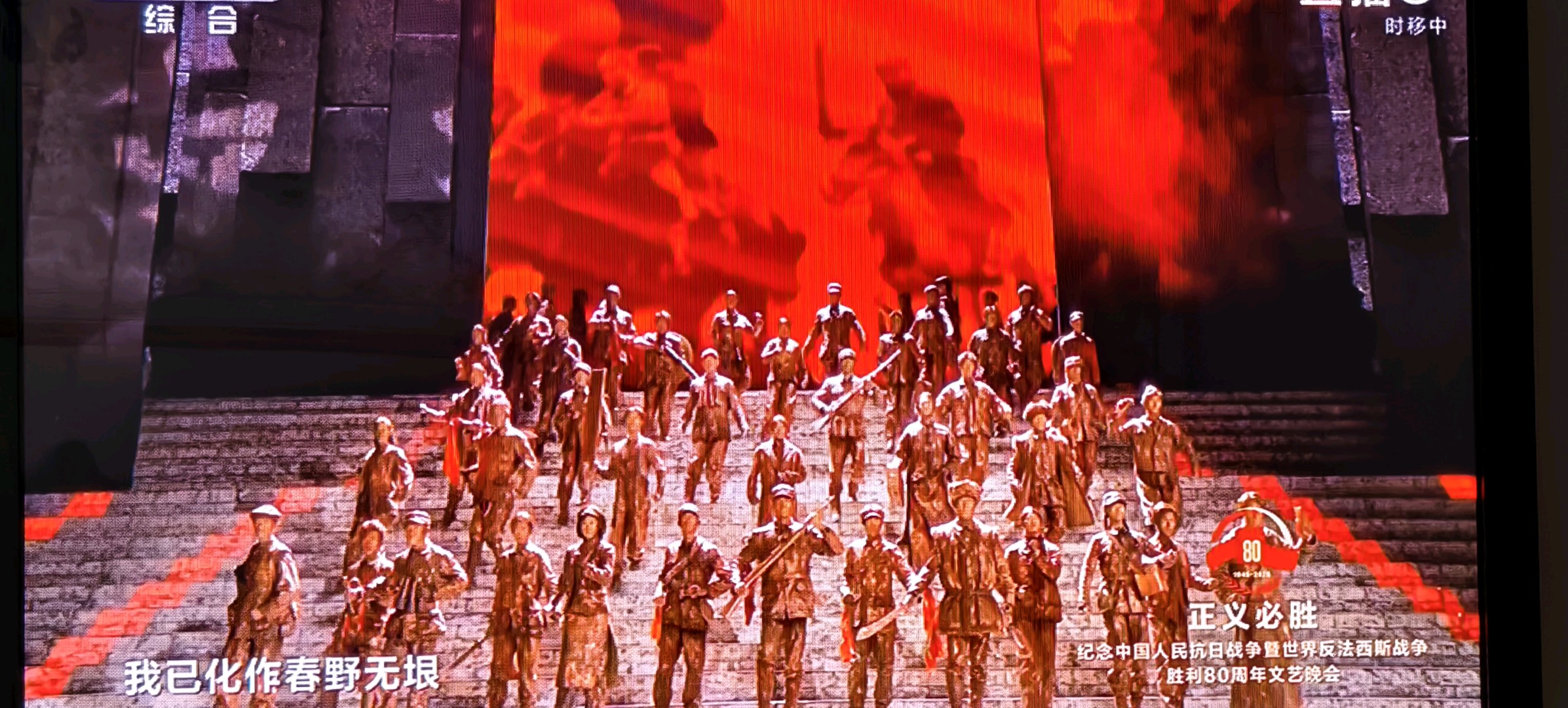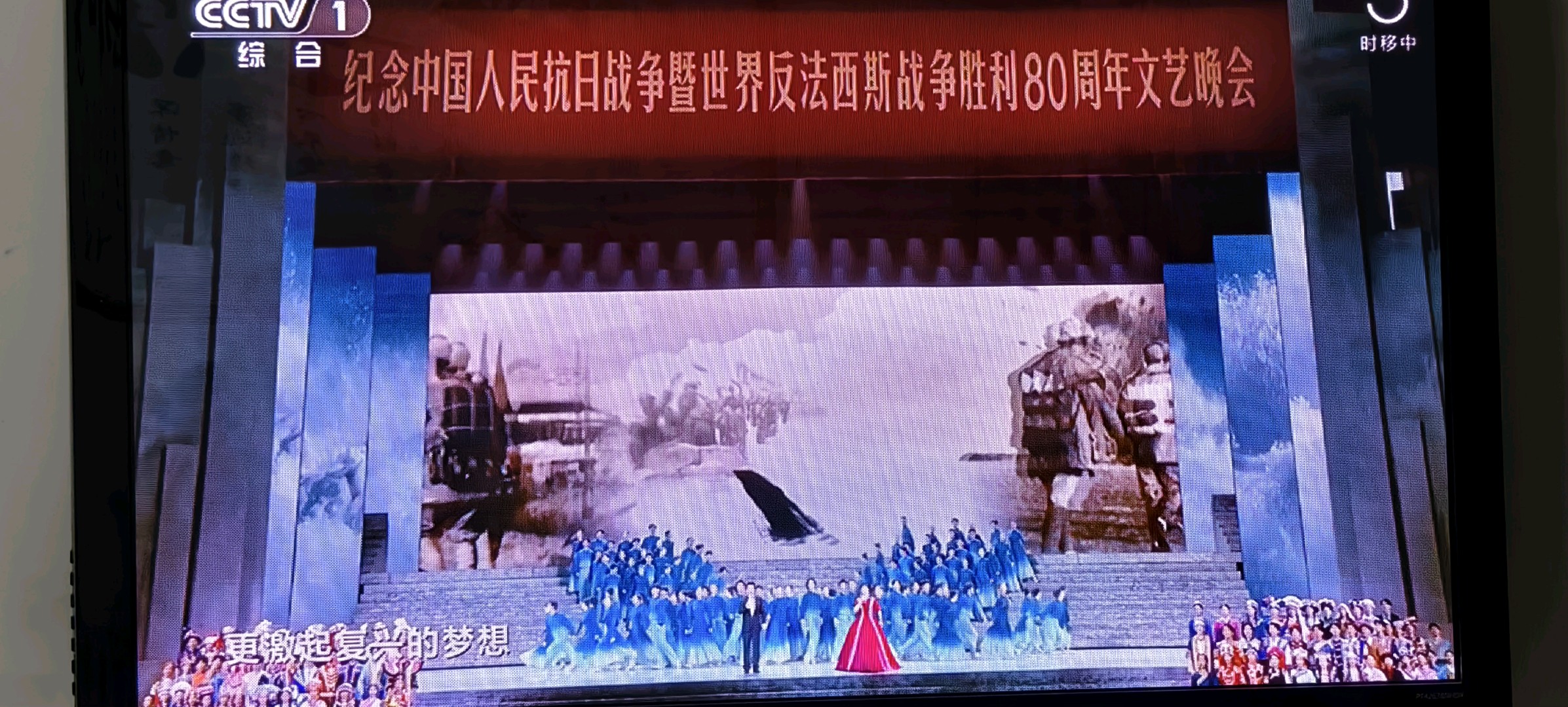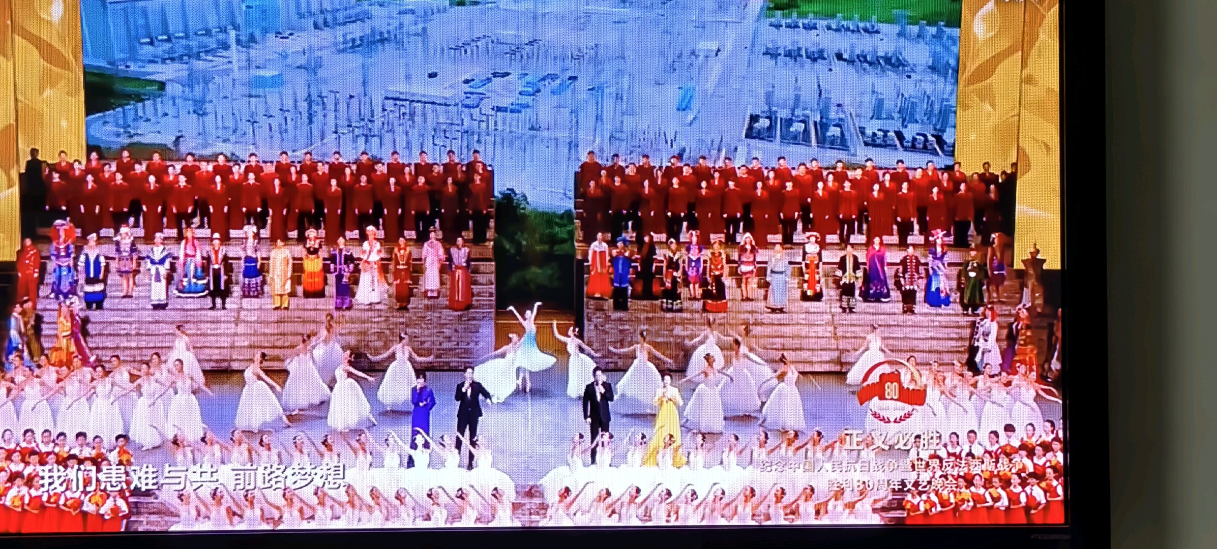 今天晚上纪念中国人民抗日战争暨世界反法西斯战争胜利80周年文艺晚会隆重举行。铭记历史,缅怀英烈,发扬伟大的抗战精神。为中华民族伟大复兴贡献力量!精彩分享。