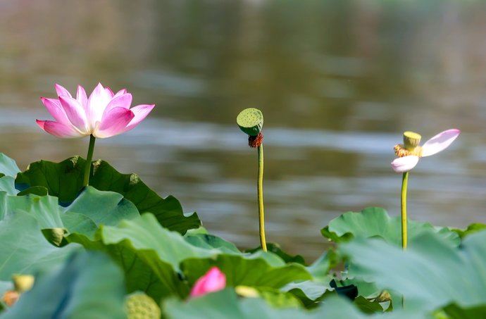 进入秋季,荷花虽然已过盛花期,但依然值得一看。荷花进入尾期,但依然别具韵味。荷叶绿意盎然,层层叠叠;部分开始凋零,有 “留得残荷听雨声”的诗意 感受秋日荷塘的独特魅力与清雅韵味