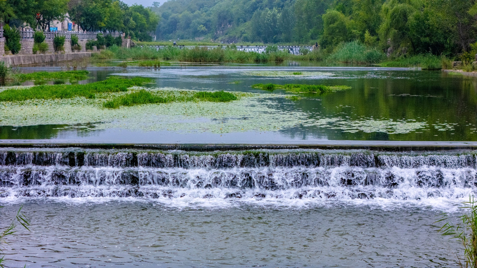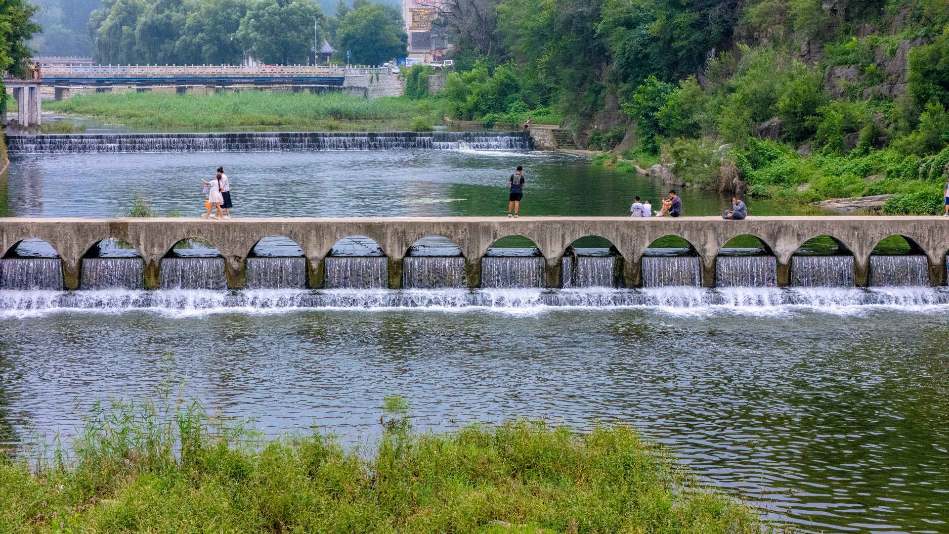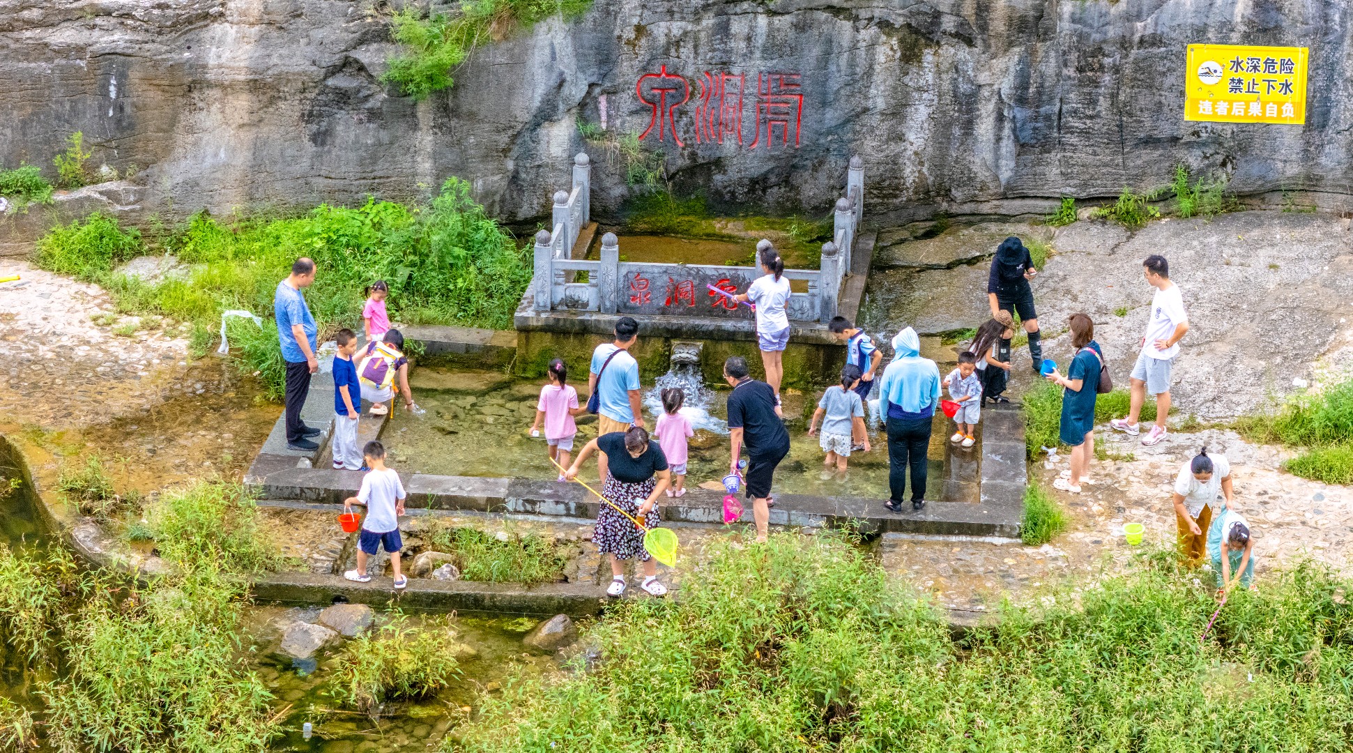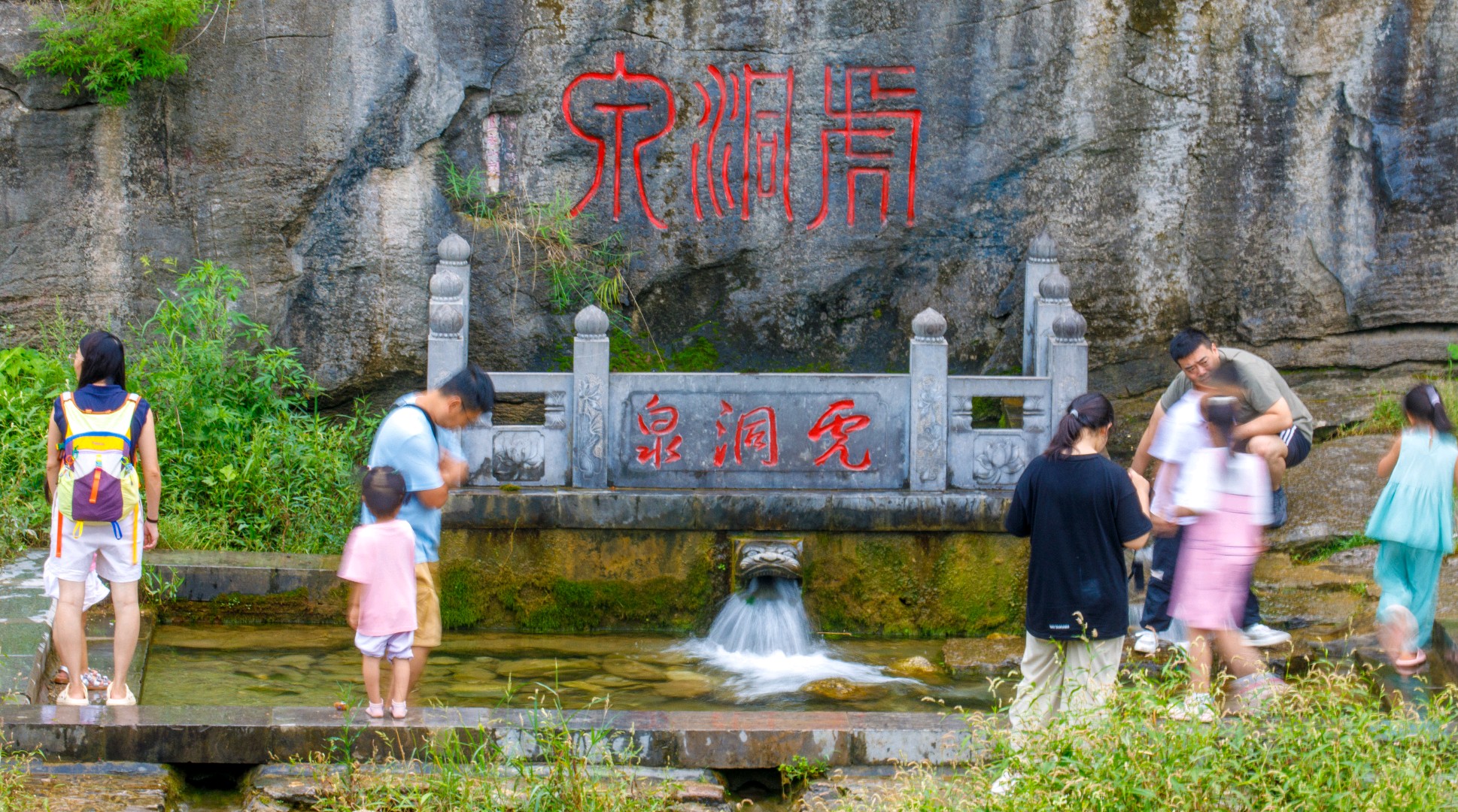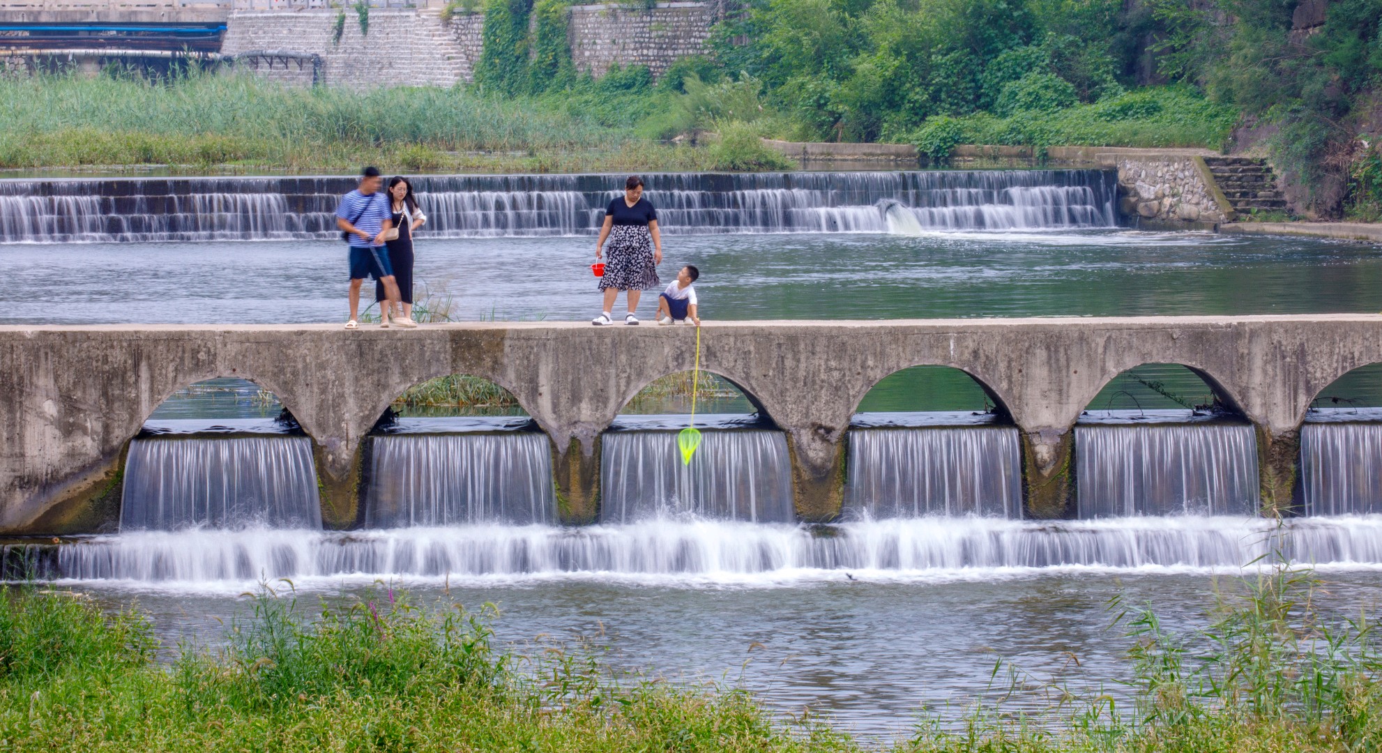 雨后的西营街道,河道舒展开阔。澄澈河水顺地势流淌,越过道道拦水坝,溅起串串瀑布。岩壁间的虎洞泉生机盎然,泉水从石缝奔涌而出,溅起清冽水花后汇入河中。市民悠然漫步石桥,静静享受着山泉的清爽,沉醉于乡野的灵动之美。