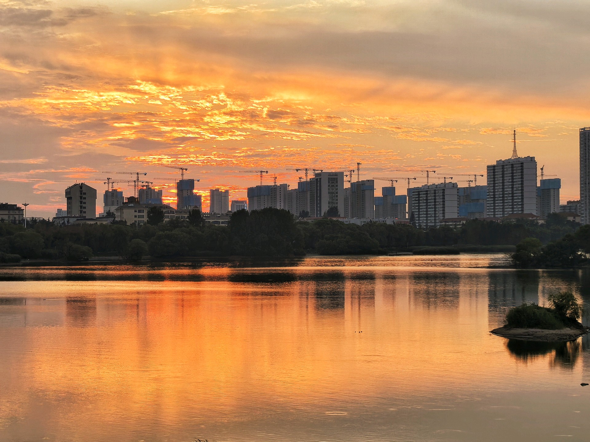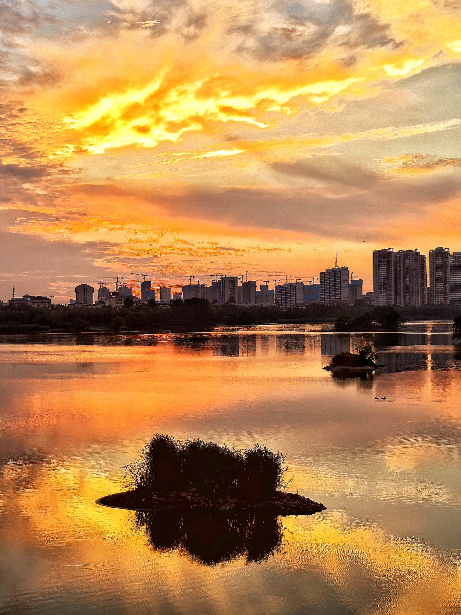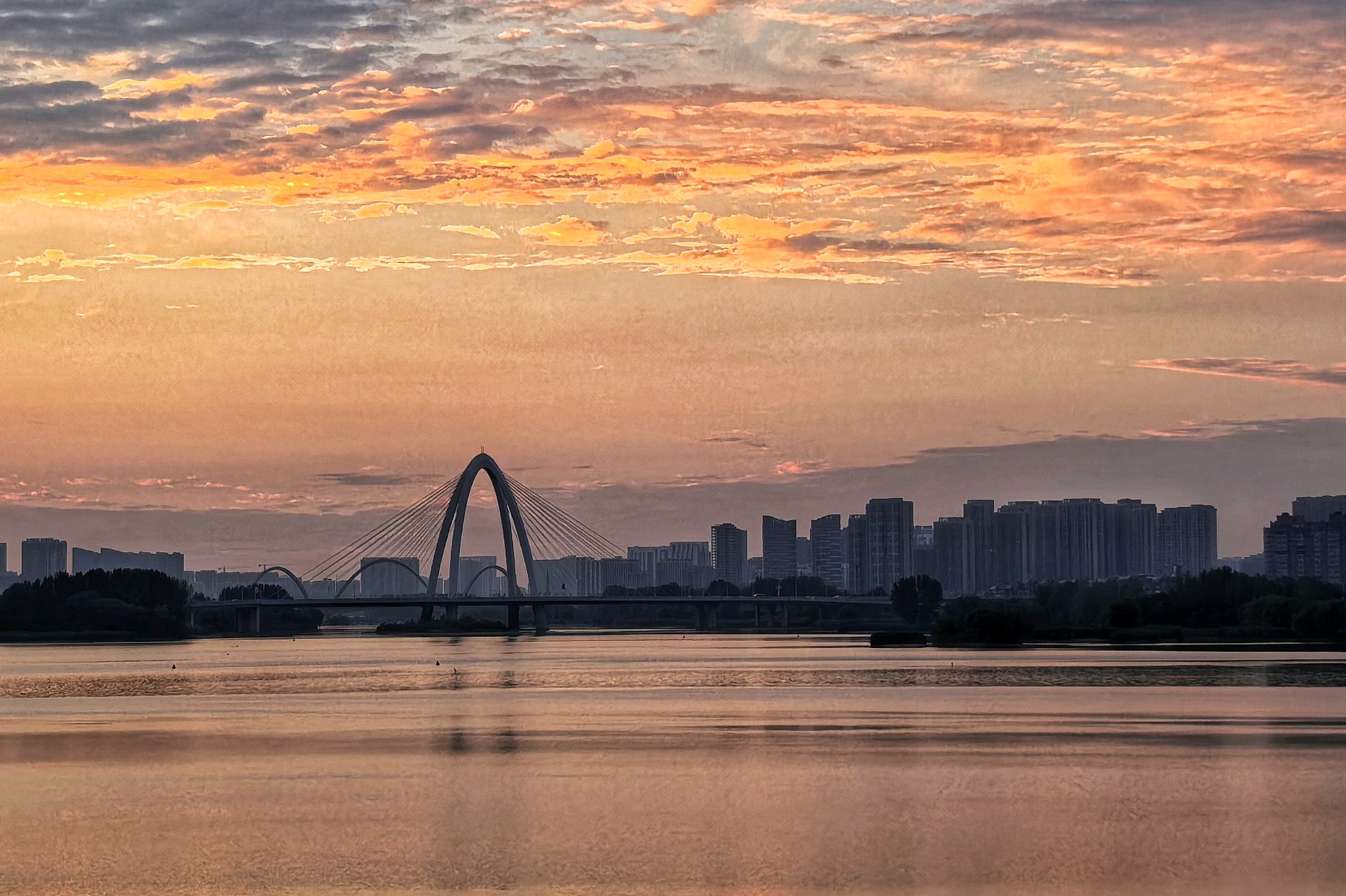 傍晚,橙色的落日余晖洒在河面上,波光粼粼,高楼林立的城市天际线倒映在水面上,美不胜收。这就是我生活的城市→临沂,每天都在这里上演着不同的故事。