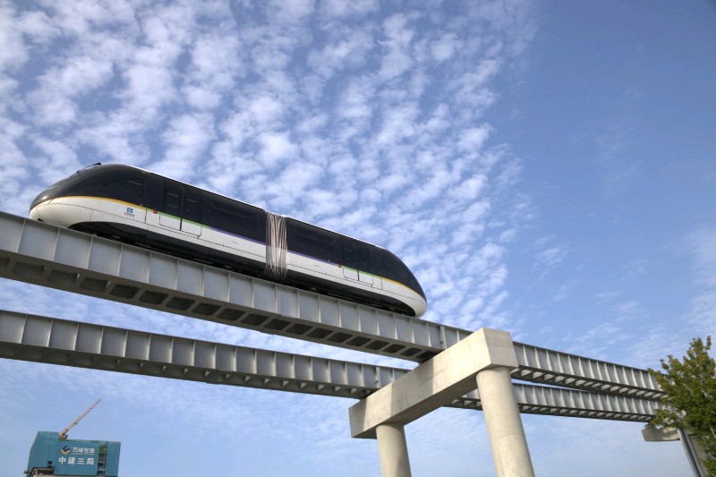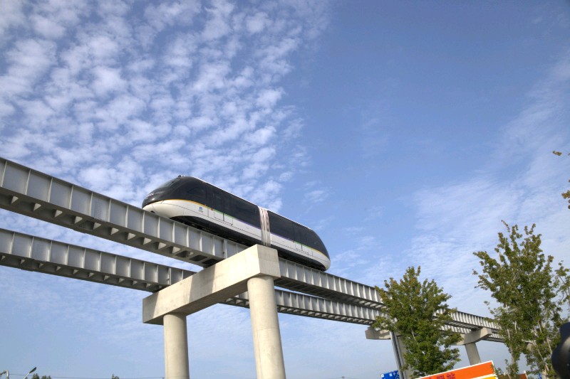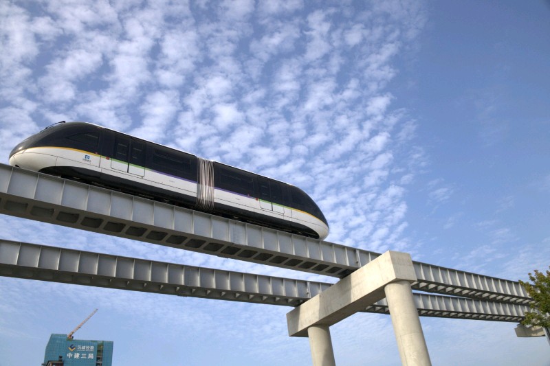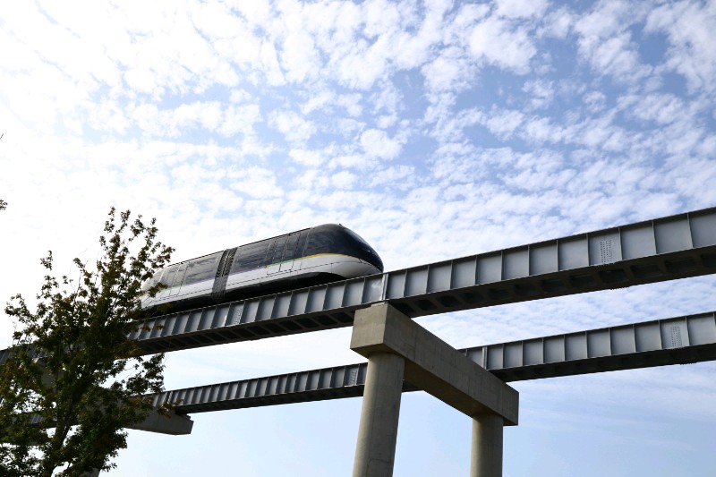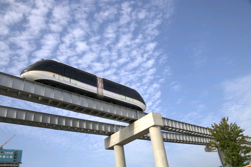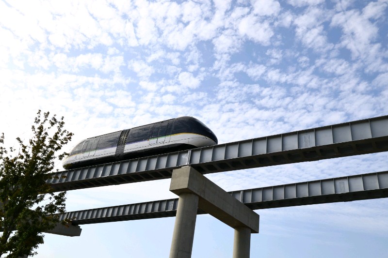 穿梭在城市上空,与蓝天白云为伴。未来感十足的单轨列车,带你领略速度与激情!穿梭在城市上空,犹如一道流光溢彩的风景线。