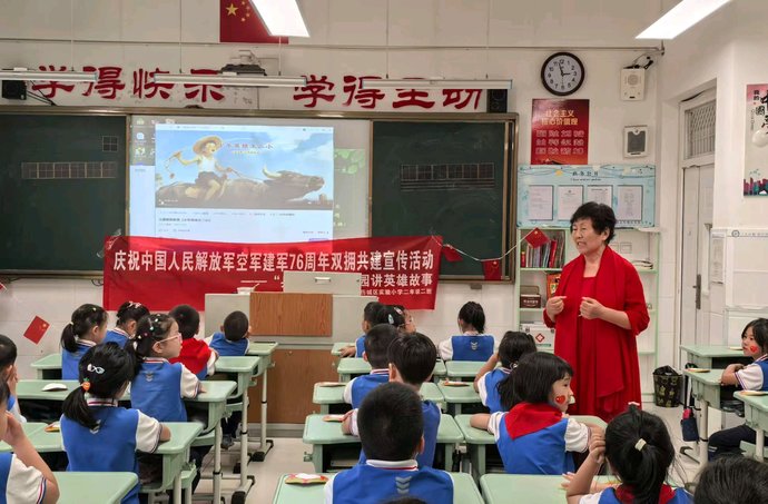 9月9日下午,应家委会邀请,“兵妈妈”和赵大奎走进历城区实验小学二年级二班,为孩子们带来一场生动而深刻的红色故事宣讲课。