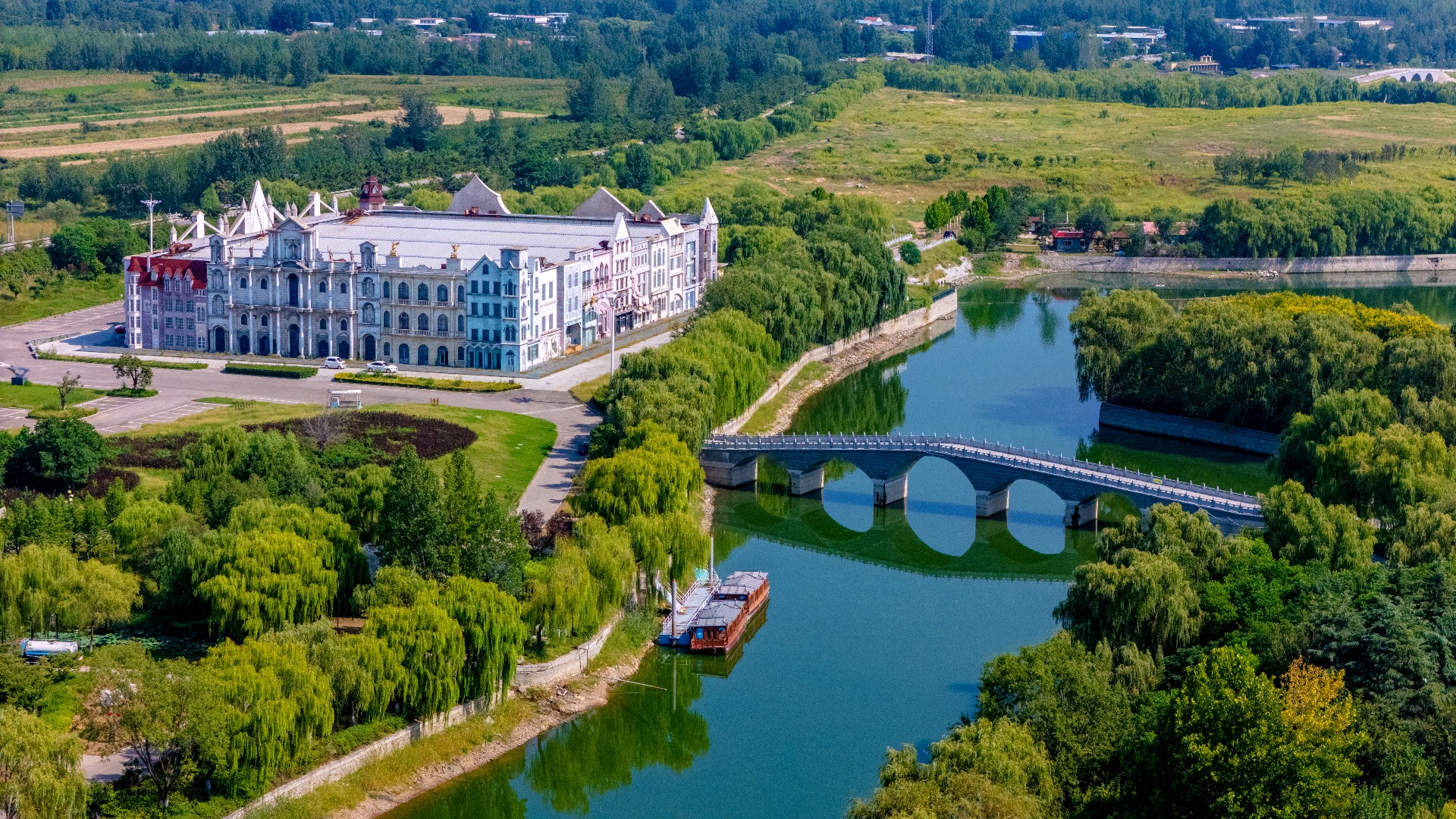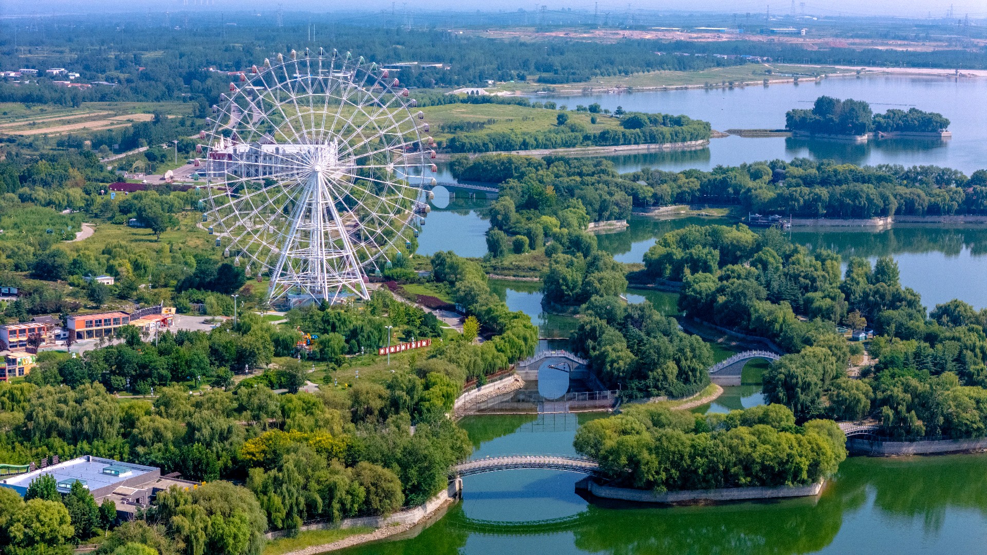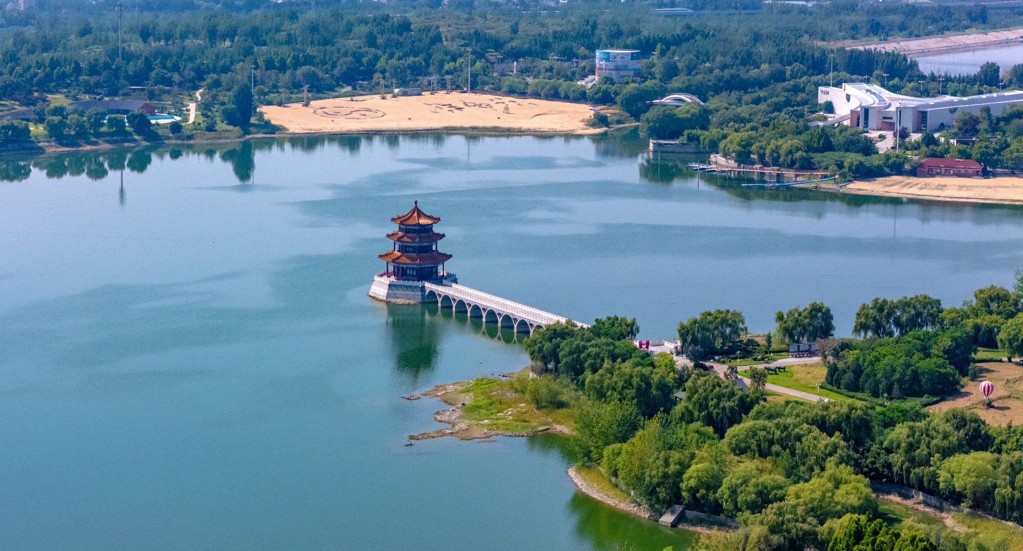 秋日泰安天颐湖,秋高气爽,碧水映蓝天,惬意满溢。临湖木别墅隐于垂柳柔丝与松柏翠绿间,相映成趣。“泰山之眼”摩天轮聶立湖畔,欧式建筑错落有致,湖中小岛散落由各式拱桥相连,景致雅致。滨湖沙滩松软,孩子们追逐嬉戏,尽得休闲,湖畔秋日生机尽显。