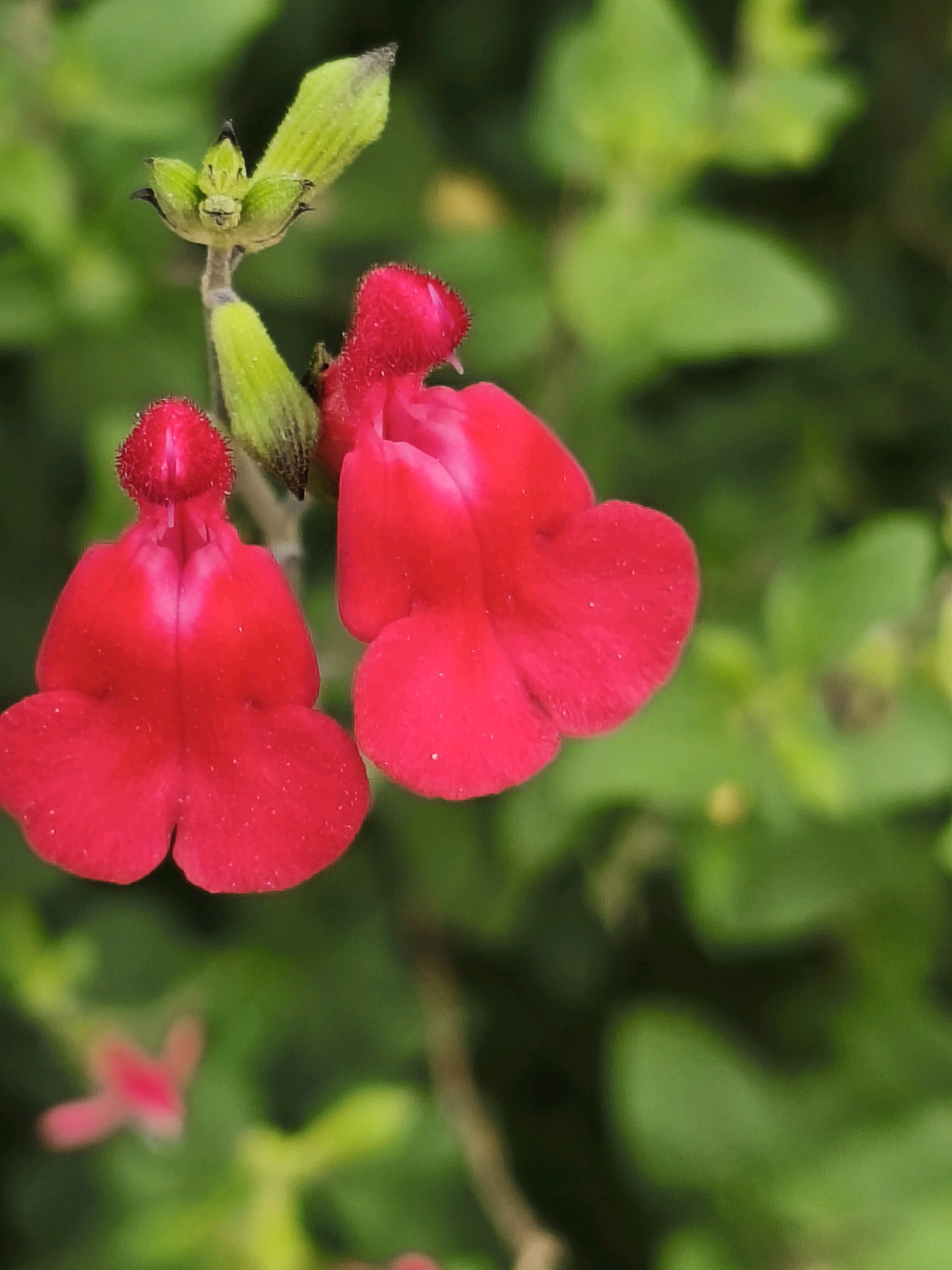 这是红花鼠尾草,又名朱唇,是唇形科、鼠尾草属一年生草本花卉。形态特征花朵:花色鲜艳,为亮红色,花型独特,有细长的花筒和明显的唇瓣结构。植株:茎直立,有毛。生长习性喜温暖、湿润和阳光充足环境。适宜生长在肥沃、排水良好的土壤中。