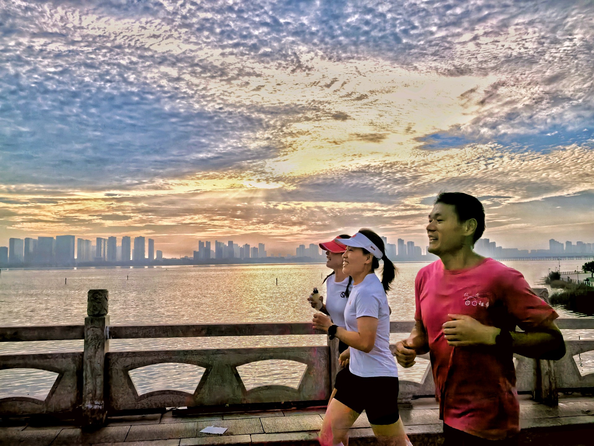 清晨的沂河,不同形式的晨练爱好者,迎着朝阳,或骑行在河畔、或跑步在绿道、或垂钓在河岸,感受大自然的脉搏。