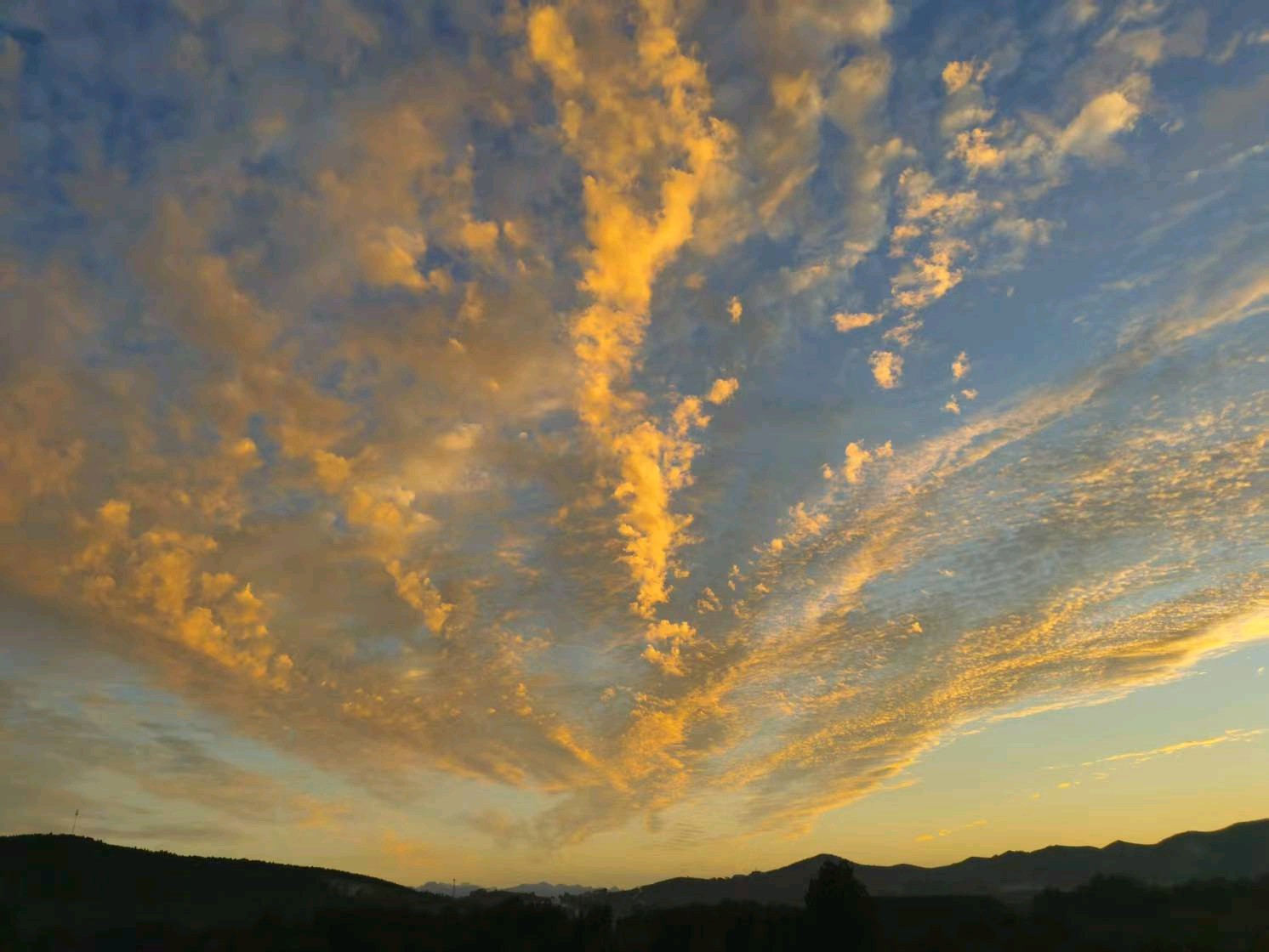 9月26日,临沂市蒙阴县绚丽的朝霞层层叠叠,宛如燃烧的火焰,将天空映照得如梦似幻。天际火红渐渐过渡蓝天白云,云卷云舒,山水相映,美不胜收。王东元 摄影
