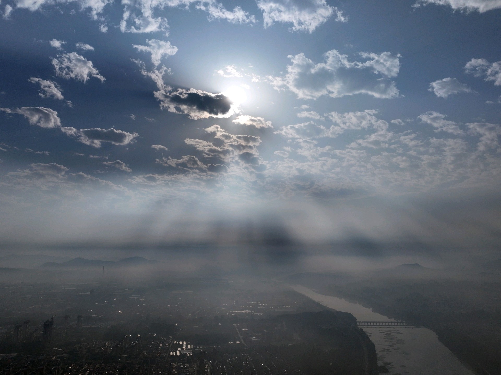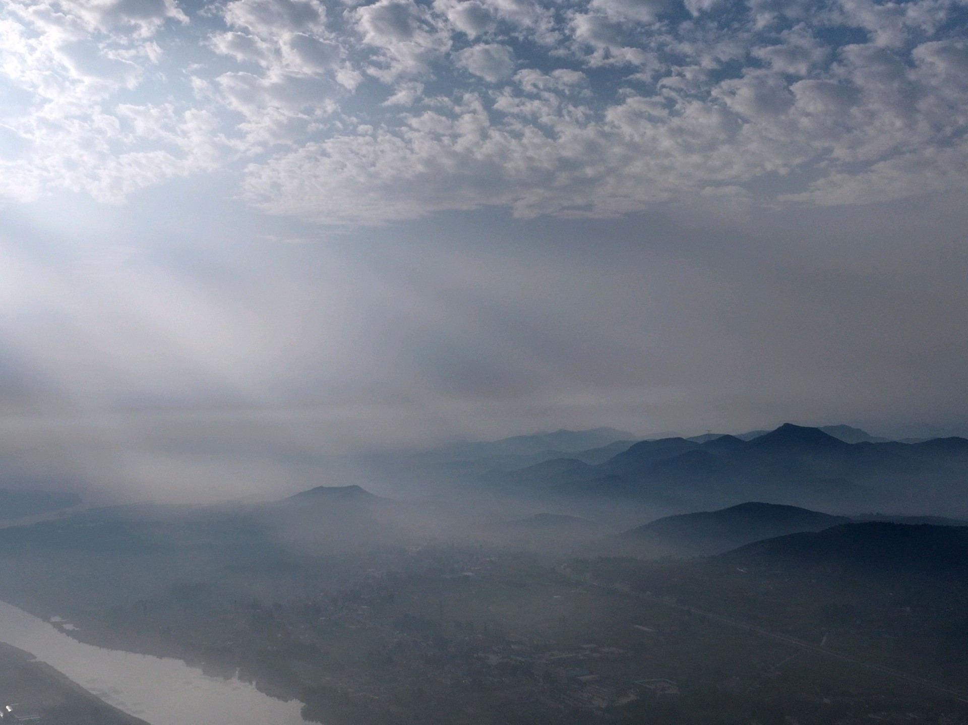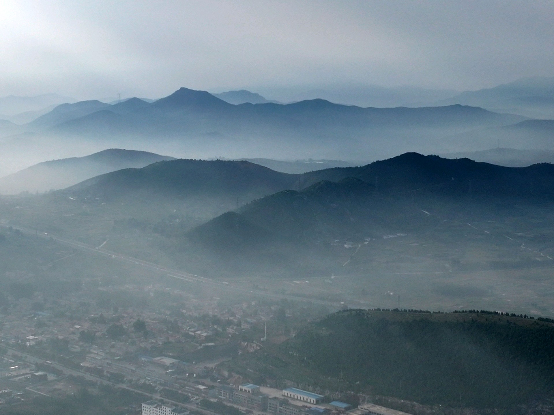 9月30日,雨后初霁,临沂市蒙阴县桃墟镇现美丽的平流雾景观。云雾似轻纱漫卷山间、乡村,错落有致的民居、层峦叠嶂的青山、蜿蜒伸展的盘山公路,在飘渺云雾中若隐若现,时而显露一角、时而深藏其容,宛如一幅流动的生态水墨画。王东元 摄影
