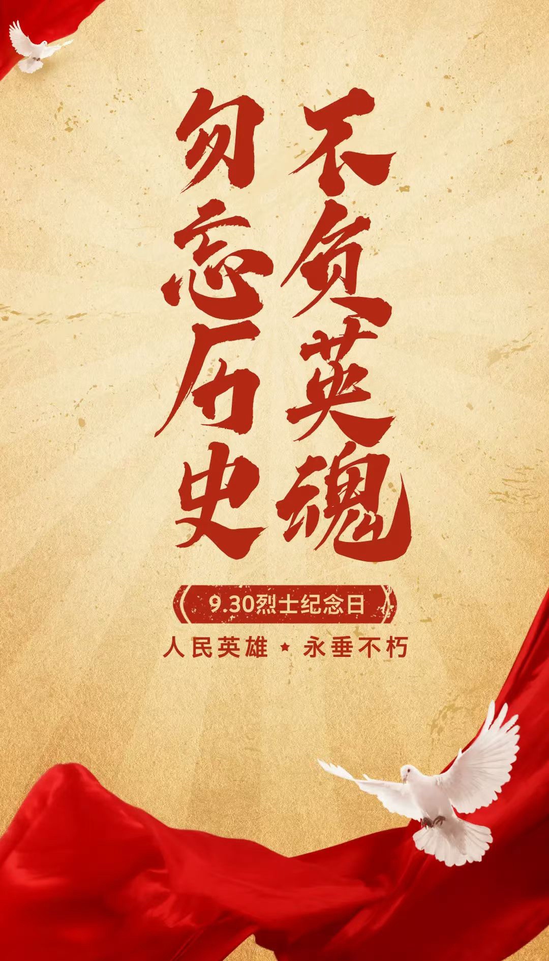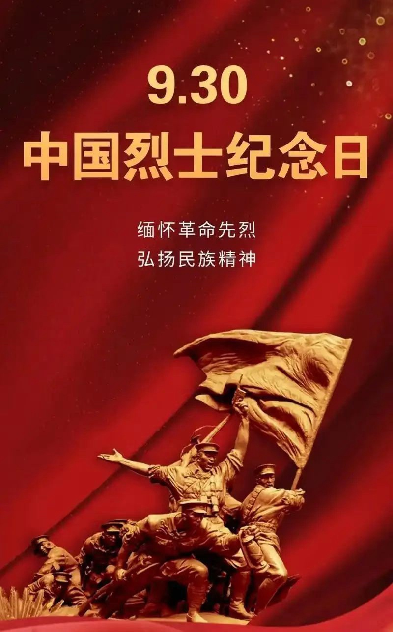 9.30,中国烈士纪念日。缅怀革命先烈,弘扬民族精神。勿忘历史,珍爱和平!