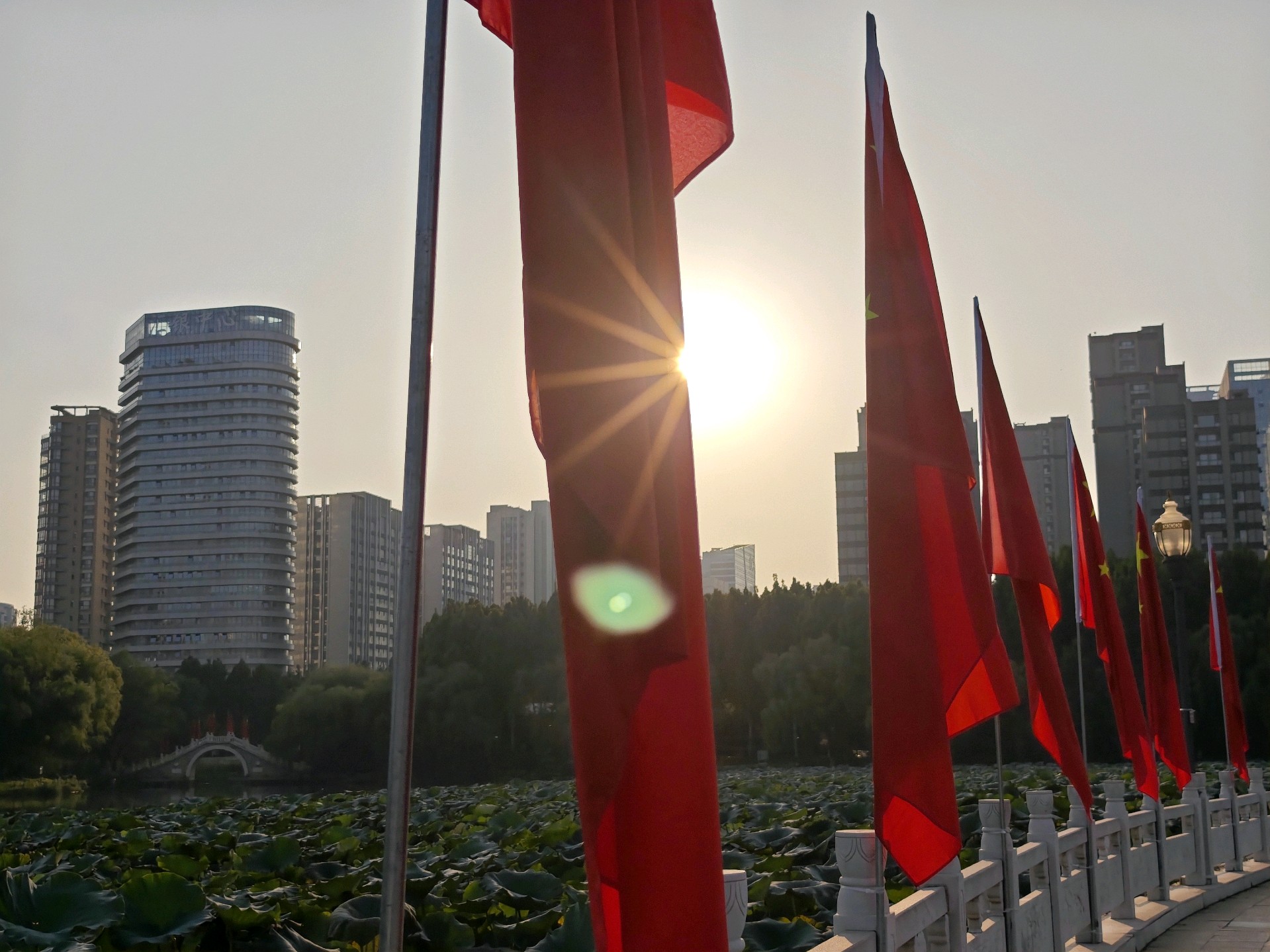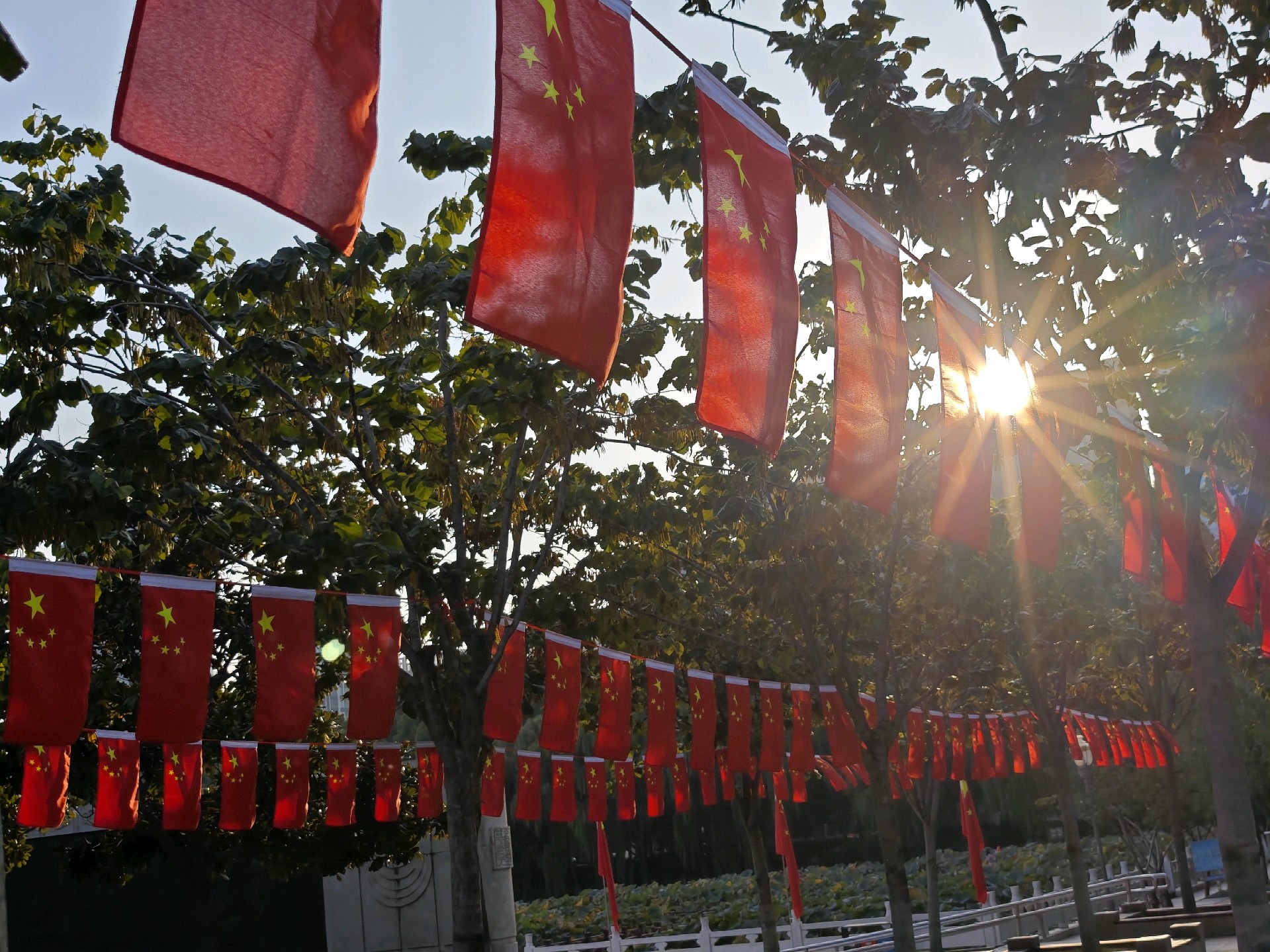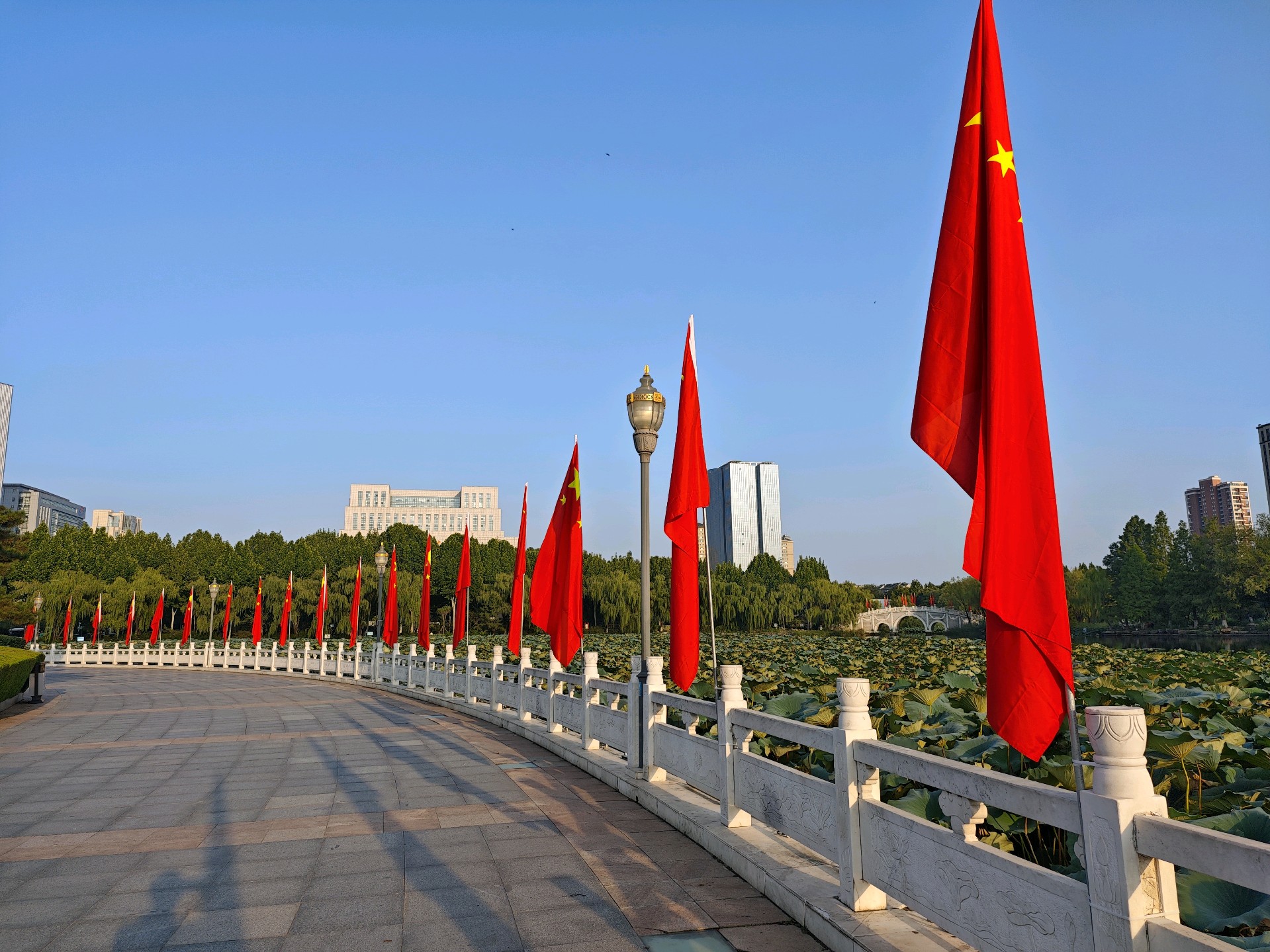 明天就是十月一了,五洲湖披上了节日的盛装,国庆氛围正浓。鲜红的国旗熠熠生辉,共庆祖国76华诞,祝福伟大的祖国繁荣昌盛!