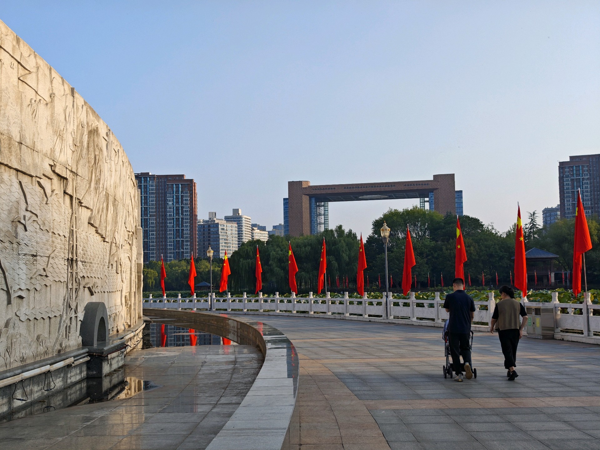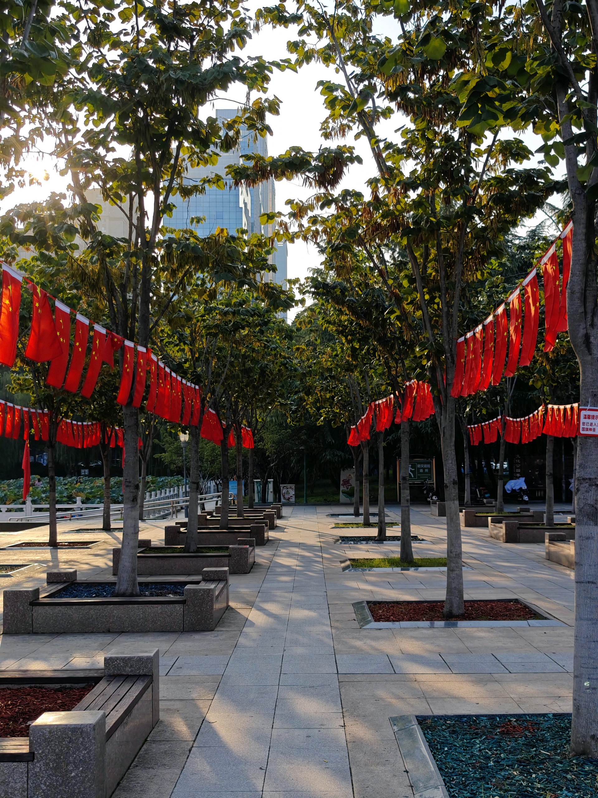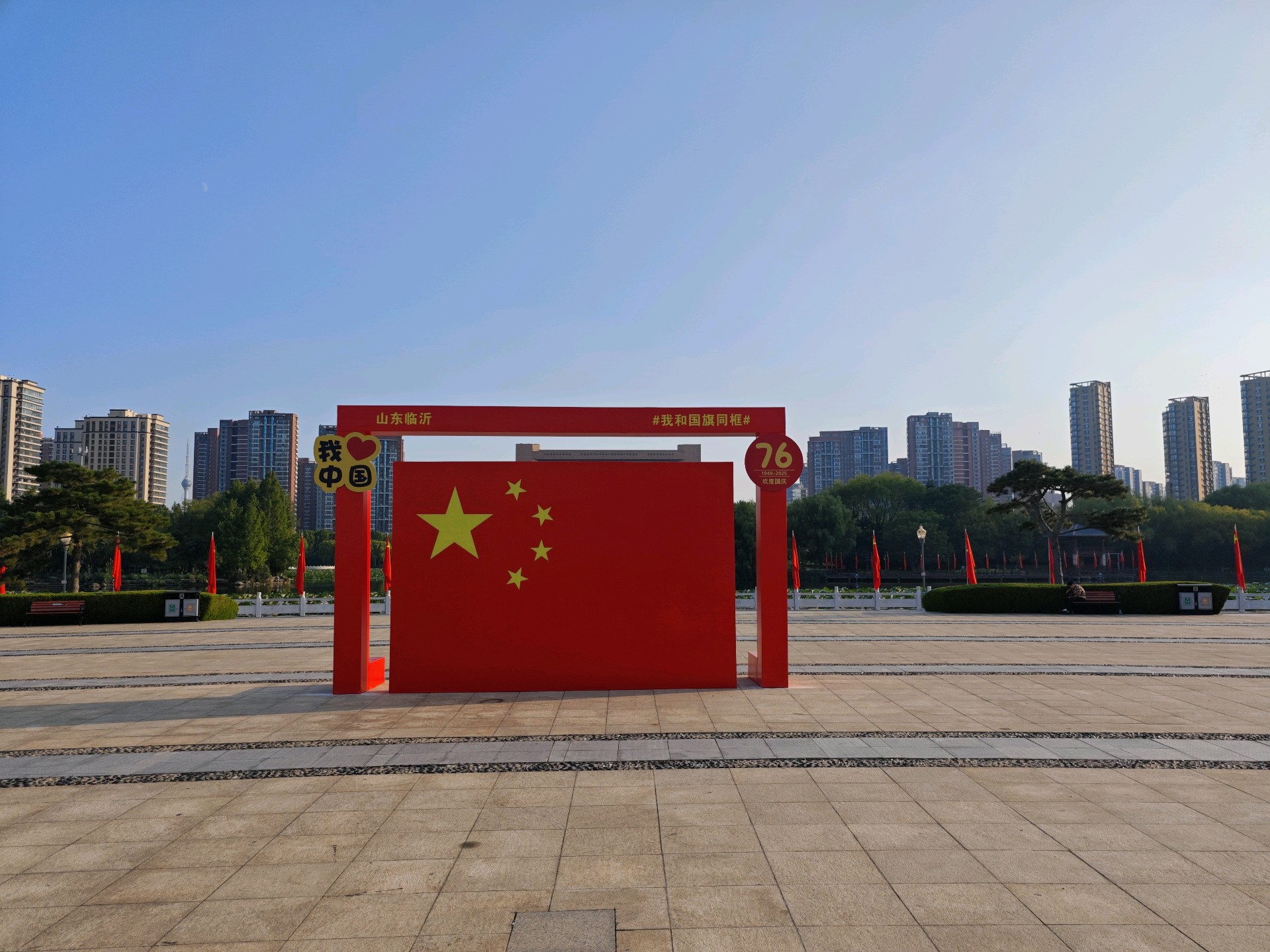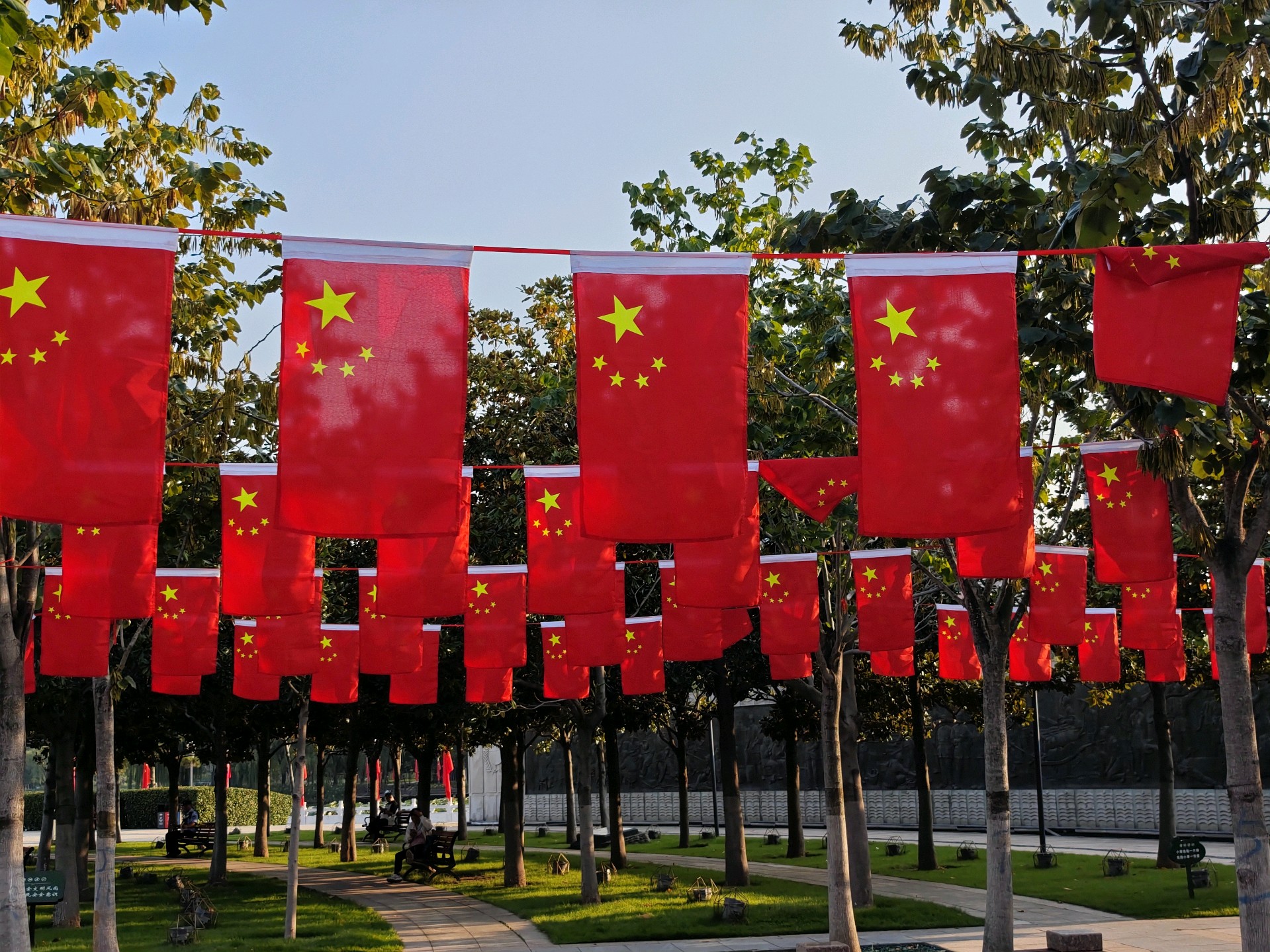明天就是十月一了,五洲湖披上了节日的盛装,国庆氛围正浓。鲜红的国旗熠熠生辉,共庆祖国76华诞,祝福伟大的祖国繁荣昌盛!