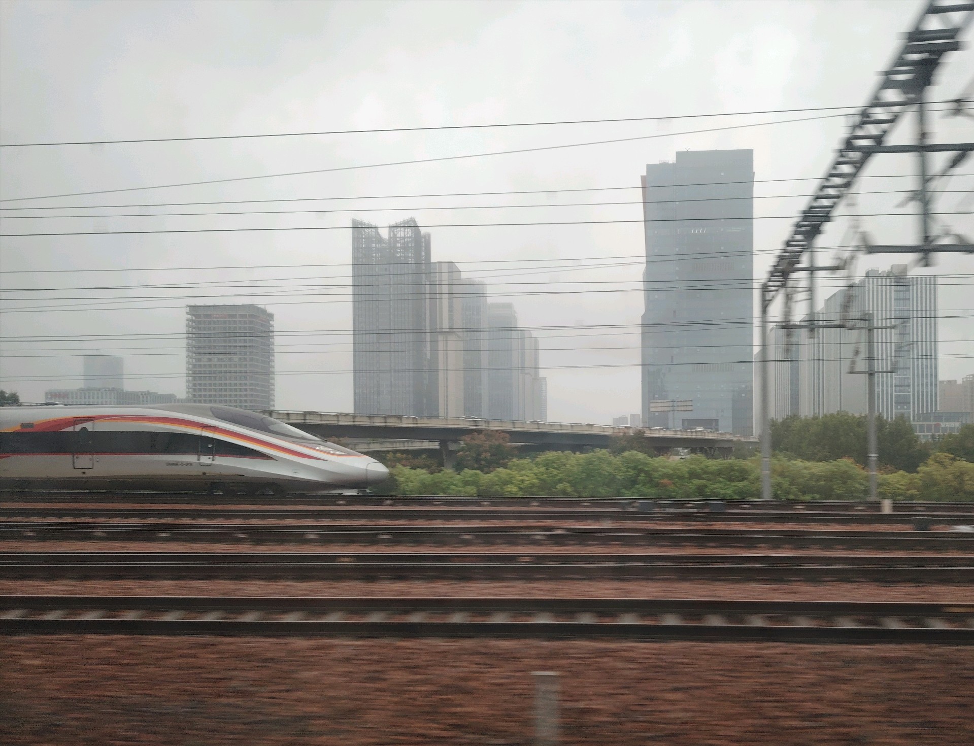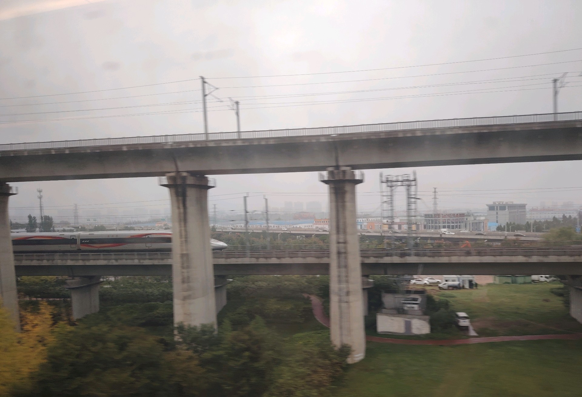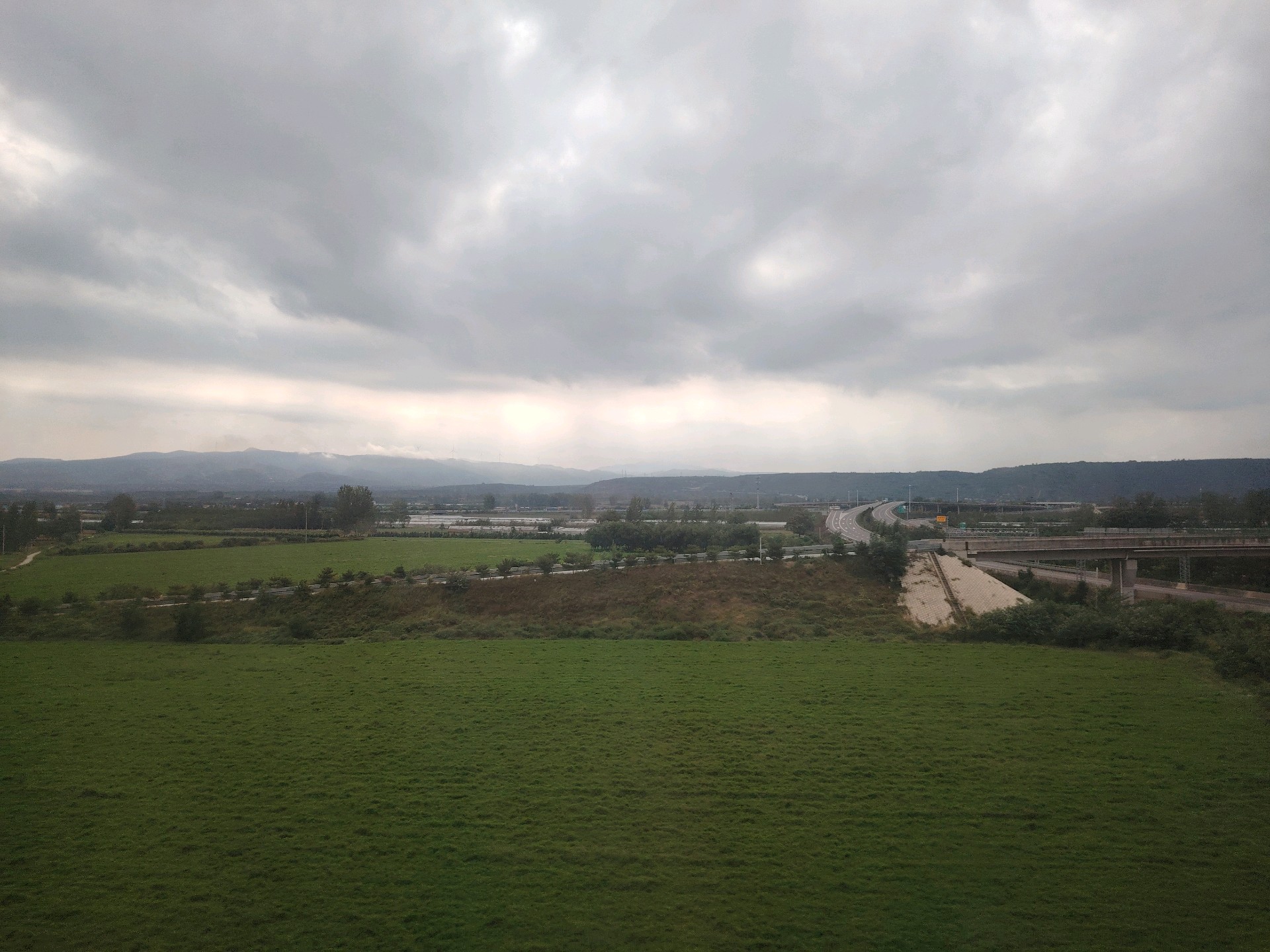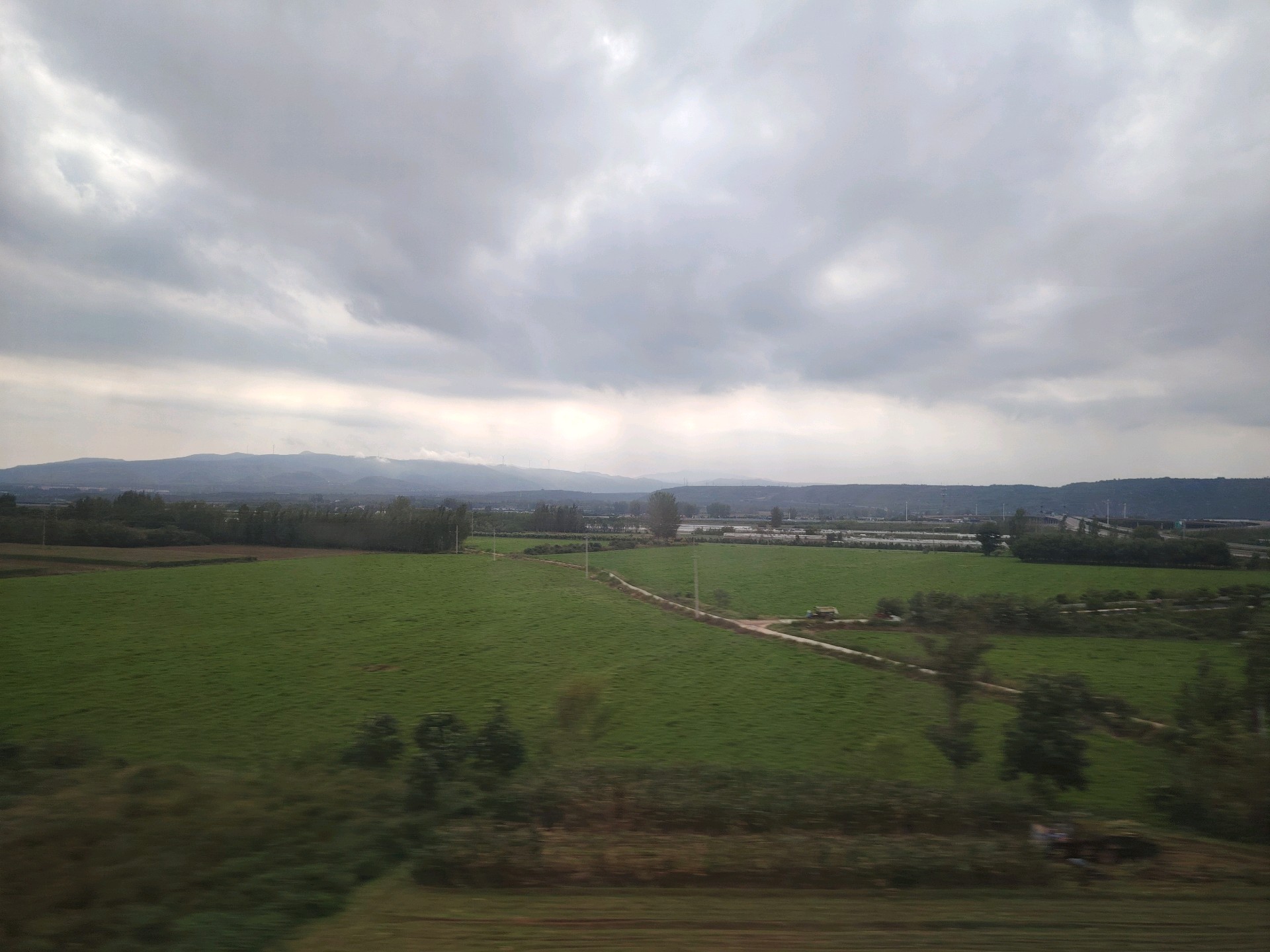今早6点半坐上高铁一路向西南,路径泰安、菏泽、洛阳开封地段都是雨雾蒙蒙,进入陕西境内雨停了天空开始渐晴,南来北往的列车驰骋在广袤无垠的大地上。