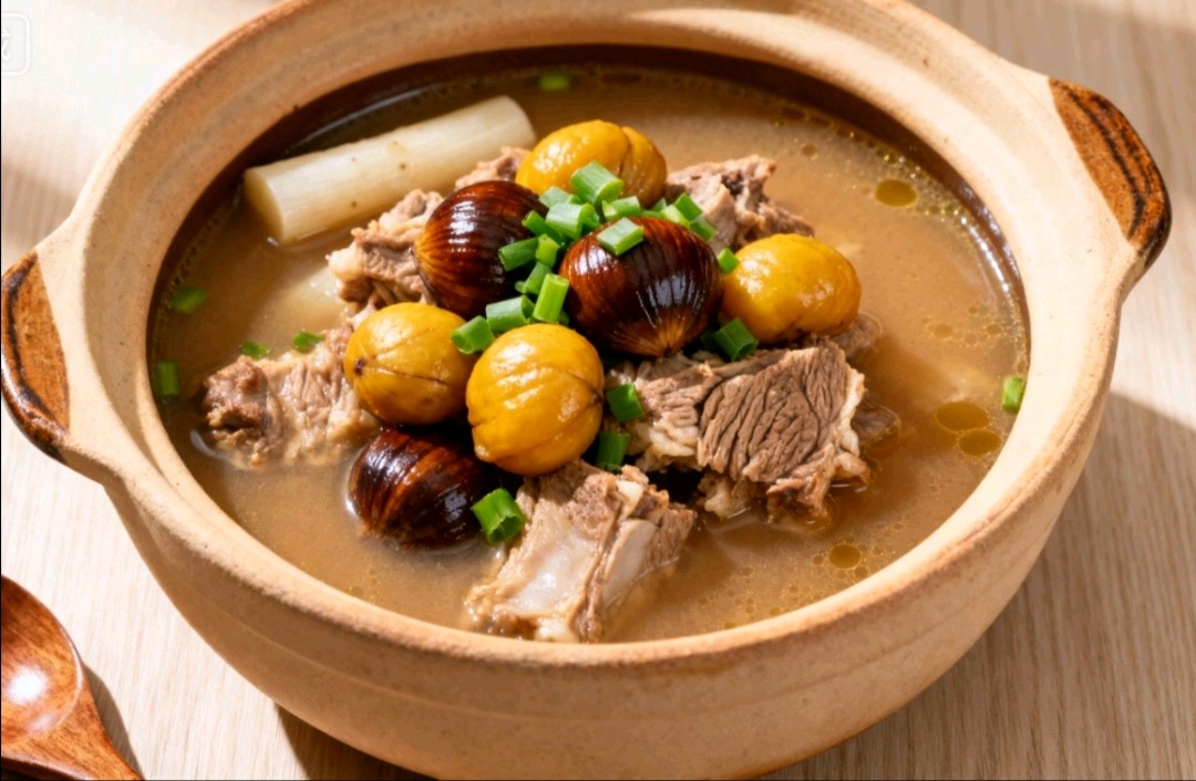 3. 沙参板栗排骨汤:板栗去壳,排骨焯水后与沙参、玉竹同煲1.5小时,益气健脾、固肾气。